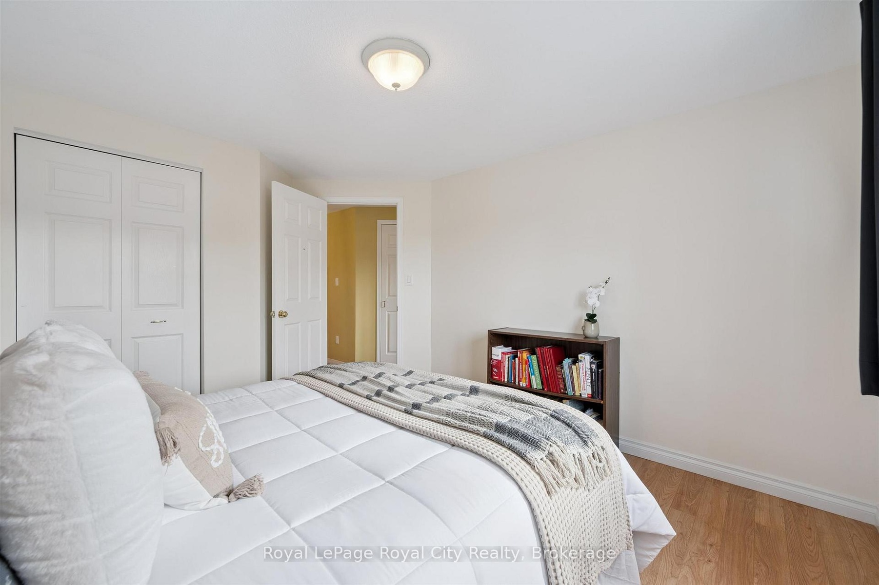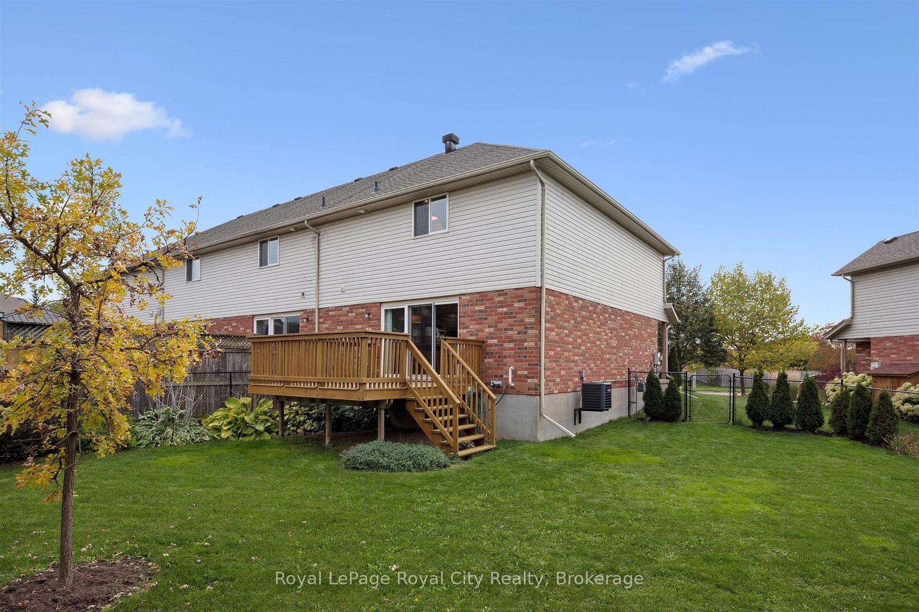 If you've been dreaming of home ownership but feel priced out of today's market, this is the opportunity you have been waiting for. This beautiful freehold link end unit offers the comfort, space, and features of a detached property without the overwhelming price tag. Step inside and feel an immediate sense of welcome. The large foyer sets the tone for the open and airy layout that follows featuring pot lights throughout. The main level is perfect for everyday living and entertaining, with a generous living/dining area that flows easily into a bright kitchen featuring white cabinetry, a glass tile backsplash, and a breakfast bar for morning coffee or casual meals. Upstairs, you'll love the sense of space, especially in the oversized primary bedroom with two walk-in closets that provide all the room you need for your furniture and wardrobe. Two additional bedrooms and a full bathroom complete this comfortable upper level. What truly sets this home apart is the outdoor space. The massive pie-shaped fenced lot offers endless possibilities. Picture summer evenings on your spacious deck surrounded by lush perennial gardens, hosting barbecues and get-togethers while children or pets play freely in the large backyard. It is your own private retreat within the city. The single car garage and tandem driveway parking for two more vehicles make this home even more appealing, especially for households with multiple drivers. When you want a quiet moment, the charming front porch is the perfect spot to relax, watch the neighbourhood come alive, or wait for the kids to arrive home from the nearby school. Located close to parks, trails, the library, and convenient commuter routes, this home offers a lifestyle that beautifully blends comfort, connection, and practicality. Whether you are just starting out or ready to create your own personal haven, this home is full of promise and ready for you to make it your own. Come see it for yourself and imagine the life you could build here.