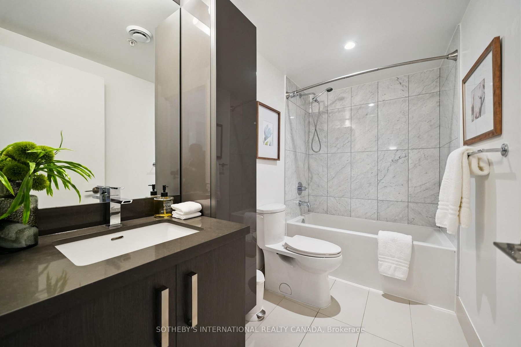 Welcome to the award-winning Canary District Condos! This stylish 2+1-bedroom split-plan unit is a rare offering, boasting an exceptional floor plan. This bright, contemporary, and adaptable 858 sq. ft. residence exemplifies superior condominium living, featuring floor-to-ceiling windows and hardwood flooring throughout. The sleek, modern kitchen is equipped with high-end appliances, and the open concept living area provides access to a spacious balcony, ideal for relaxation or entertaining and the versatile +1 area can be readily customized to suit individual needs. The primary bedroom offers a tranquil sanctuary with ample closet space and an en-suite bathroom. The second bedroom serves effectively as a guest bedroom or a combined bedroom/office. With an additional four-piece bathroom and in-suite washer/dryer, this home is ideally suited for those who appreciate functional and flexible living without compromising on quality, efficiency, or comfort. This unit includes a conveniently located parking spot, bicycle rack, and two lockers for supplementary storage. This location is truly exceptional, providing diverse offerings for all. Highlights include the Diamond Jubilee Promenade with a splash pad, Underpass Park featuring a playground, basketball court, and skateboard park, and Corktown Common, an 18-acre park with a marsh, expansive lawns, urban prairies, playground areas, a splash pad, and inviting features such as a fireplace, permanent barbeque, and large communal picnic table. Canary District Condos are within walking distance of George Brown College, the state-of-the-art YMCA, The Distillery District, Leslieville, and St. Lawrence Market. With a Walk Score of 93, residents are also in proximity to trendy restaurants, cafes, and boutique shops. Commuting is effortless via the 504A King Streetcar that stops at King Subway Station, buses, and Union Station, with easy and quick access to the DVP & Gardiner Expressway.