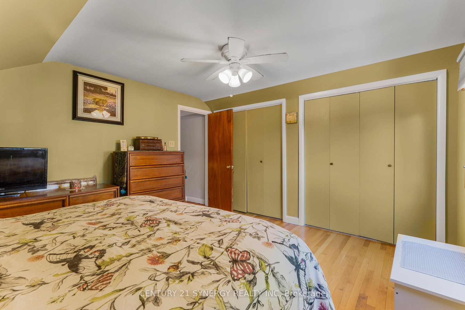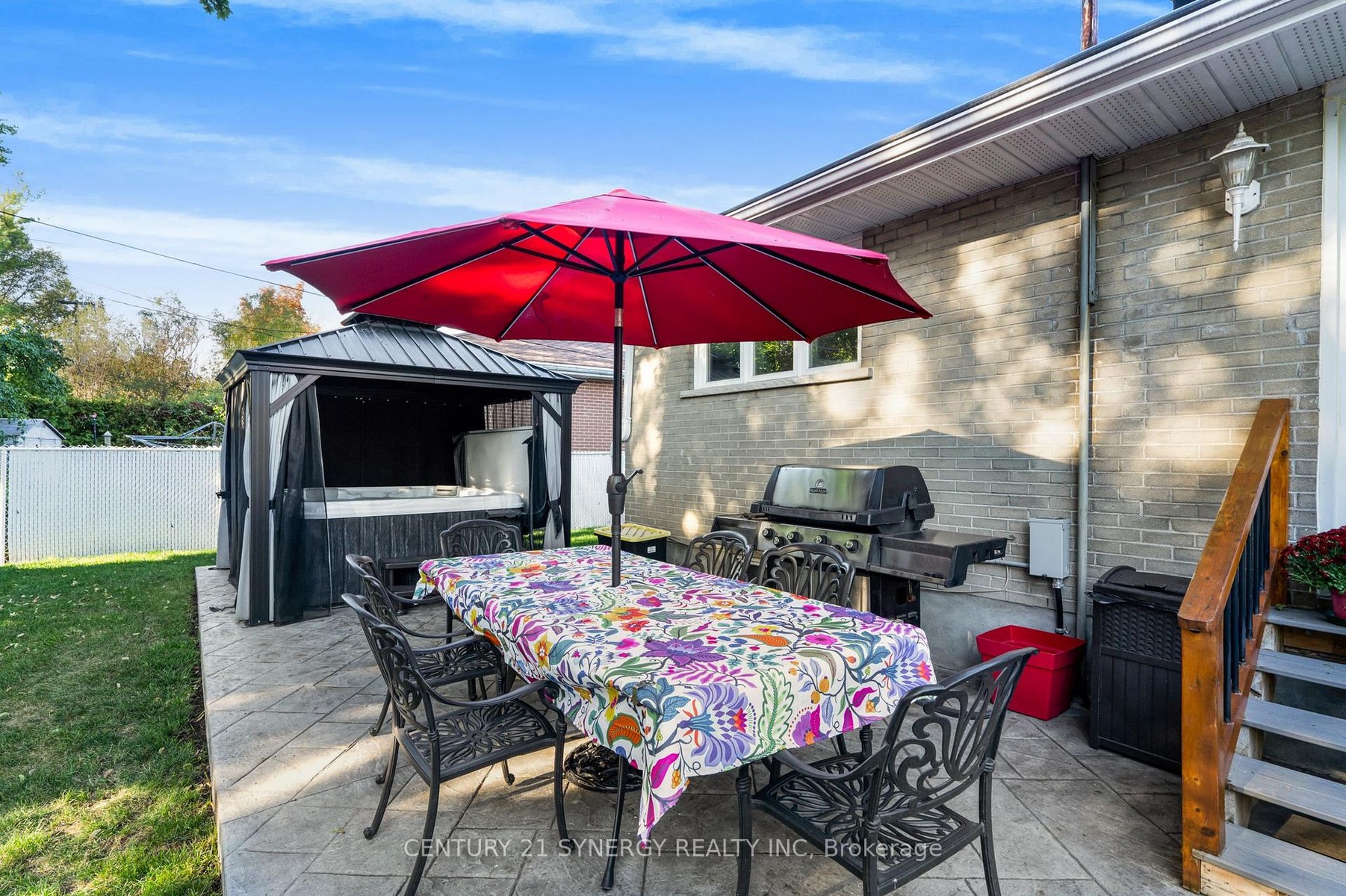 Open House Sunday October 19, 2025 from 2:00 - 4:00 p.m. Centrally located in the well-established, family-friendly neighbourhood of Copeland Park, this home is nestled among the quiet, tree-lined streets. From the manicured lawn to the custom interlocking brick work, every detail of the exterior invites you in. Inside, rich hardwood flooring sets a warm and elegant tone throughout the main level. The spacious living room features a cozy wood-burning fireplace, a large picture window, and patio doors with access to a potential future deck or patio. The eat-in kitchen is bright and functional, with ceramic tile flooring, generous cupboard and counter space, and included appliances ready for family meals. Originally built with two main floor bedrooms, one has been thoughtfully converted into a formal dining room with patio doors leading to a large patio and private backyard. A unique highlight of this home is the primary bedroom on the second level, offering privacy, space, and quiet comfort. The lower level accessible via the kitchen or convenient side entrance offers versatile bonus living space with newer, low-maintenance, laminate flooring. A large recreation room is kept warm and cozy from a corner gas fireplace. There is also a flex office/den (currently used as a bedroom), with a double closet. A spa-like 3-piece bathroom featuring a steam shower is definitely a bonus. A separate laundry room that included the appliances. Lastly, there is a well sized utility/storage room with built-in shelves and a workbench area. Step outside to enjoy your private fenced yard, complete with a stamped concrete patio, a screened-in hot tub, and a large custom shed all designed for comfort and convenience. There is also a good-sized side yard for an extra patio (mentioned earlier). Single car garage and driveway parking can accommodate another 5 cars! 24 hours irrevocable on all offers.