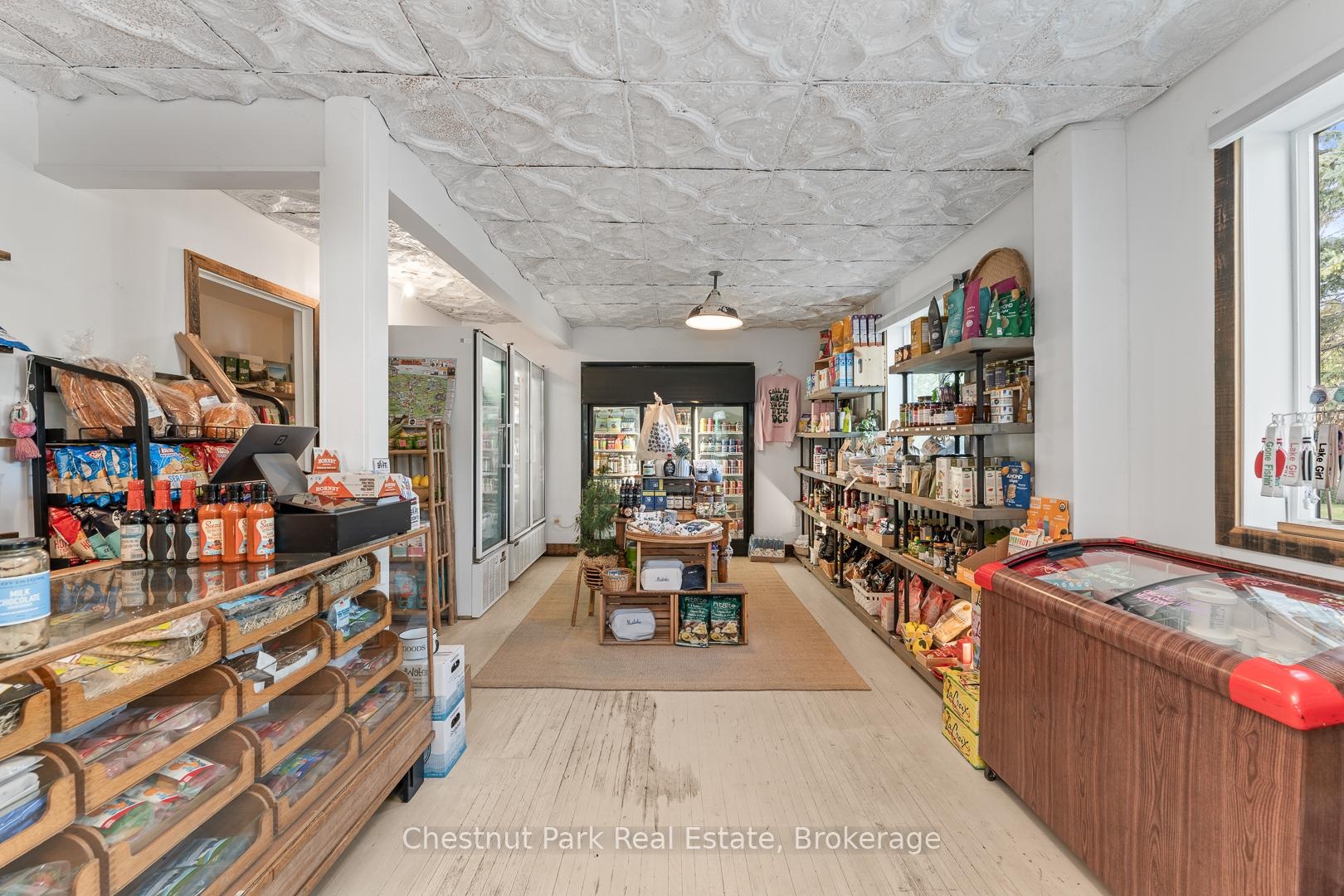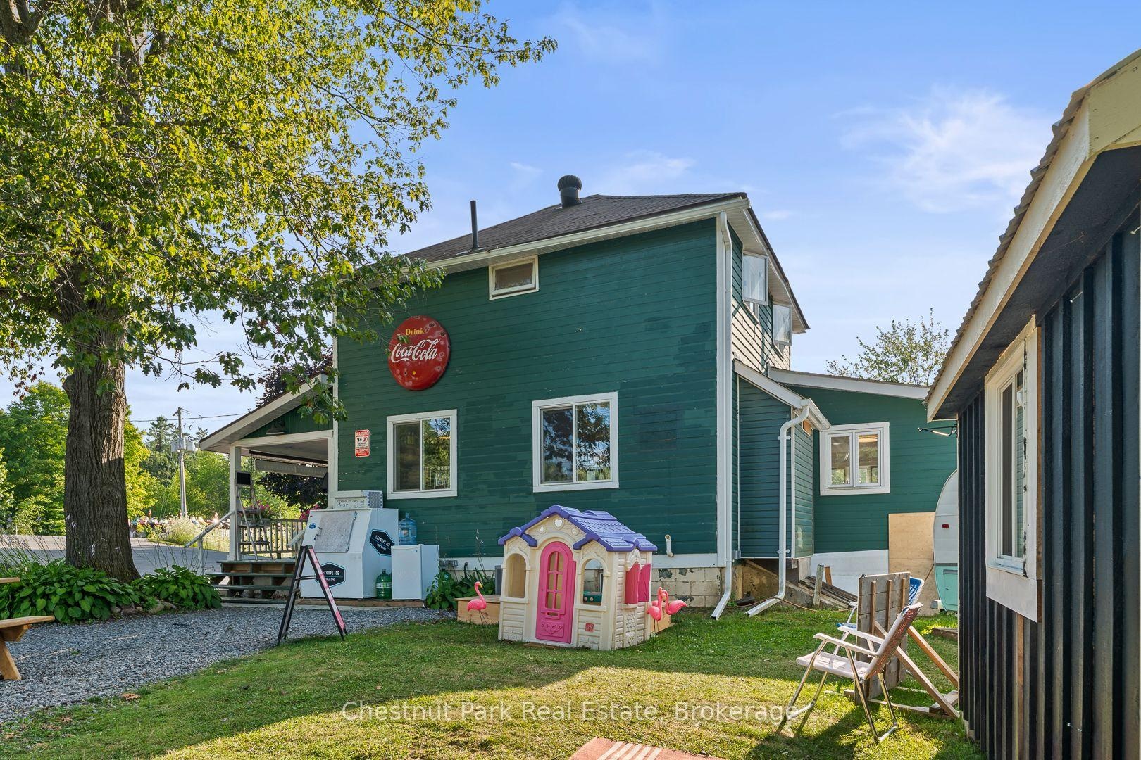 Step into a piece of Muskoka History with this rare opportunity to own the iconic Torrance General Store. Perfectly positioned on a high traffic corridor of Highway 169, directly across from Clear Lake Brewery and surrounded by camps and cottages, this versatile property is brimming with entrepreneurial potential. The main building features a charming, spacious store with a welcoming front porch-ideal for displaying local goods or enjoying your morning coffee. Inside you'll find ample space for groceries, provisions and an area for a boutique or specialty retail. A wide hallway leads to a full kitchen and opens to a back deck, perfect for summer evenings or staff breaks. Upstairs the living quarters offer three decent sized bedrooms and a fresh three piece washroom-ideal for live-work flexibility or housing seasonal staff. A renovated airstream trailer currently serves as a trendy coffee/drink station. The property is perfect for pop up ventures and a generous yard is bursting with potential for picnics, hosting outdoor markets and incorporating classic Muskoka Games into the experience. The current owner has spent over $125K in recent improvements including new roof, soffit, eavestroughs, exterior and interior paint and has paved driveway and parking spaces. Inside a new furnace and A/C unit were installed along with new water system, electrical panel and kitchen and bathrooms were fully renovated. The General Store is already a well known destination and place to stop on the way to the cottage. Move in ready this property is a dream come true for entrepreneurs looking to live and work in the heart of Muskoka cottage country. With excellent road exposure, well established clientele and close proximity to popular destinations this is the ultimate blend of lifestyle and business opportunity. Own a landmark. Create a Business. Build a Dream.