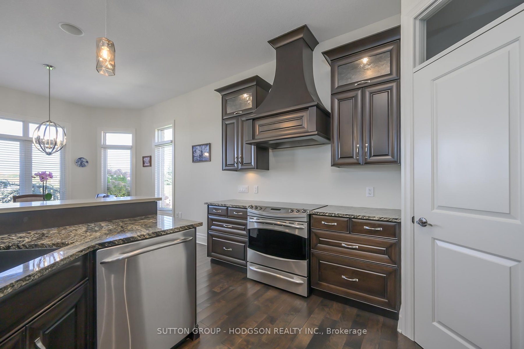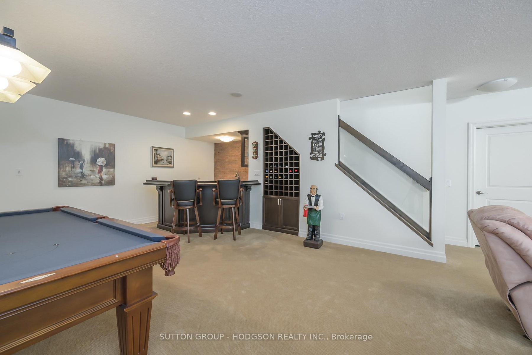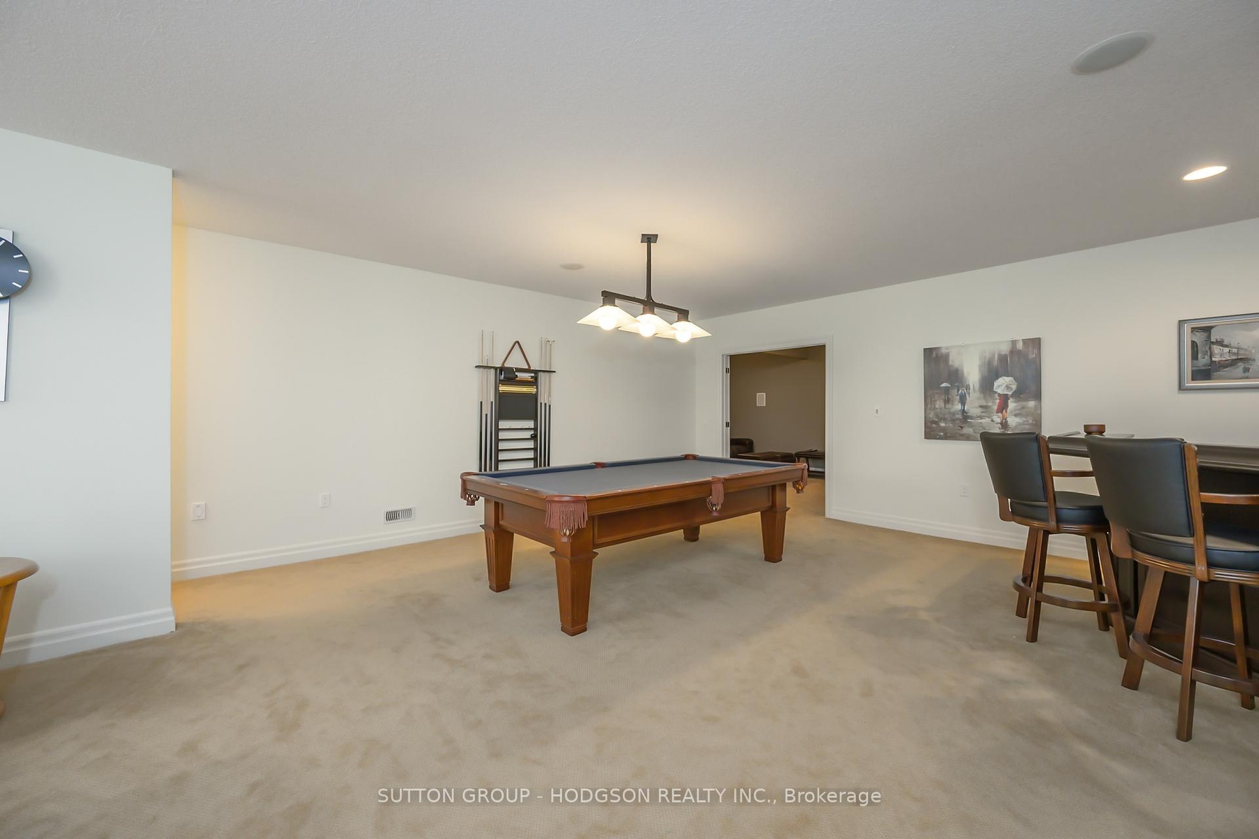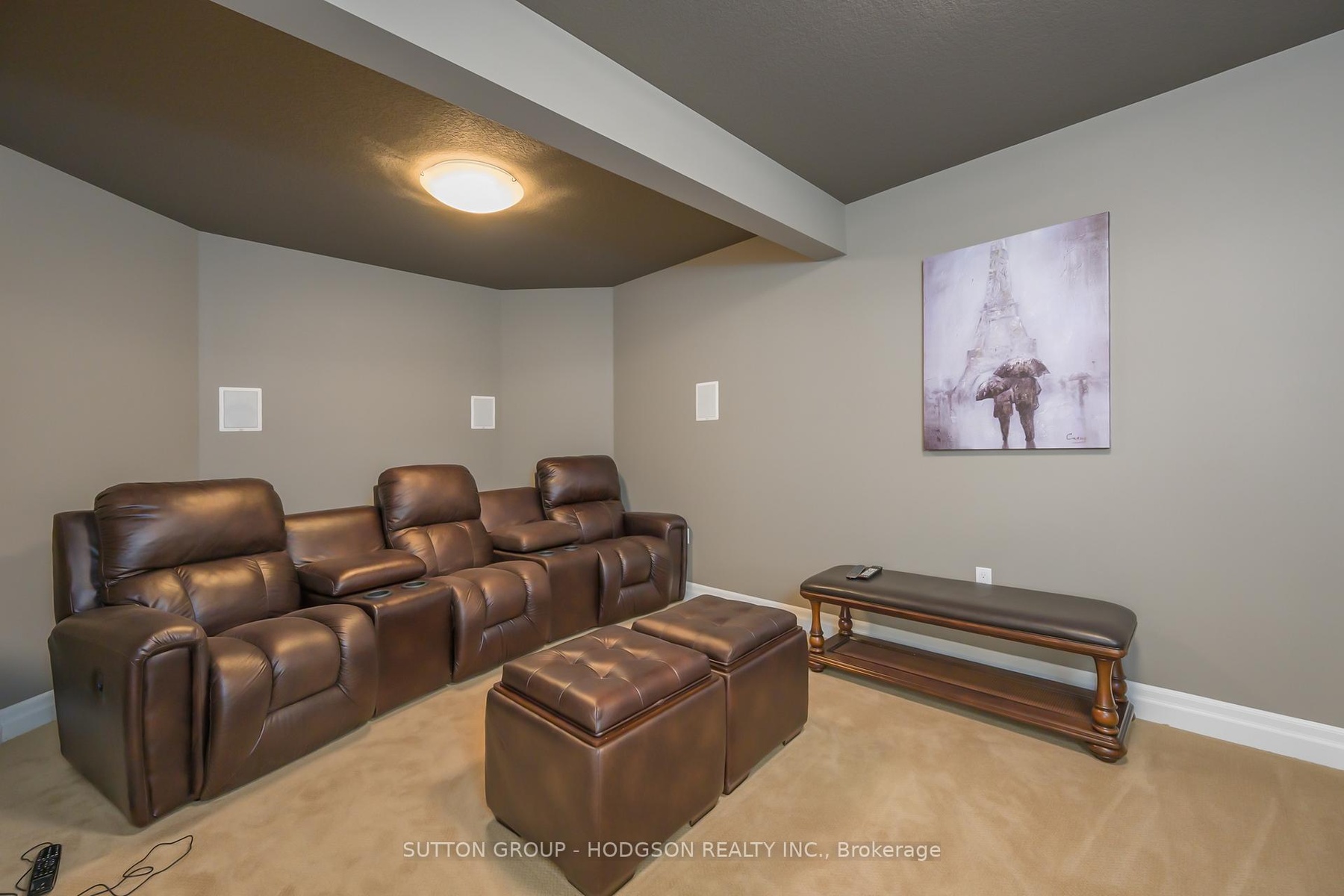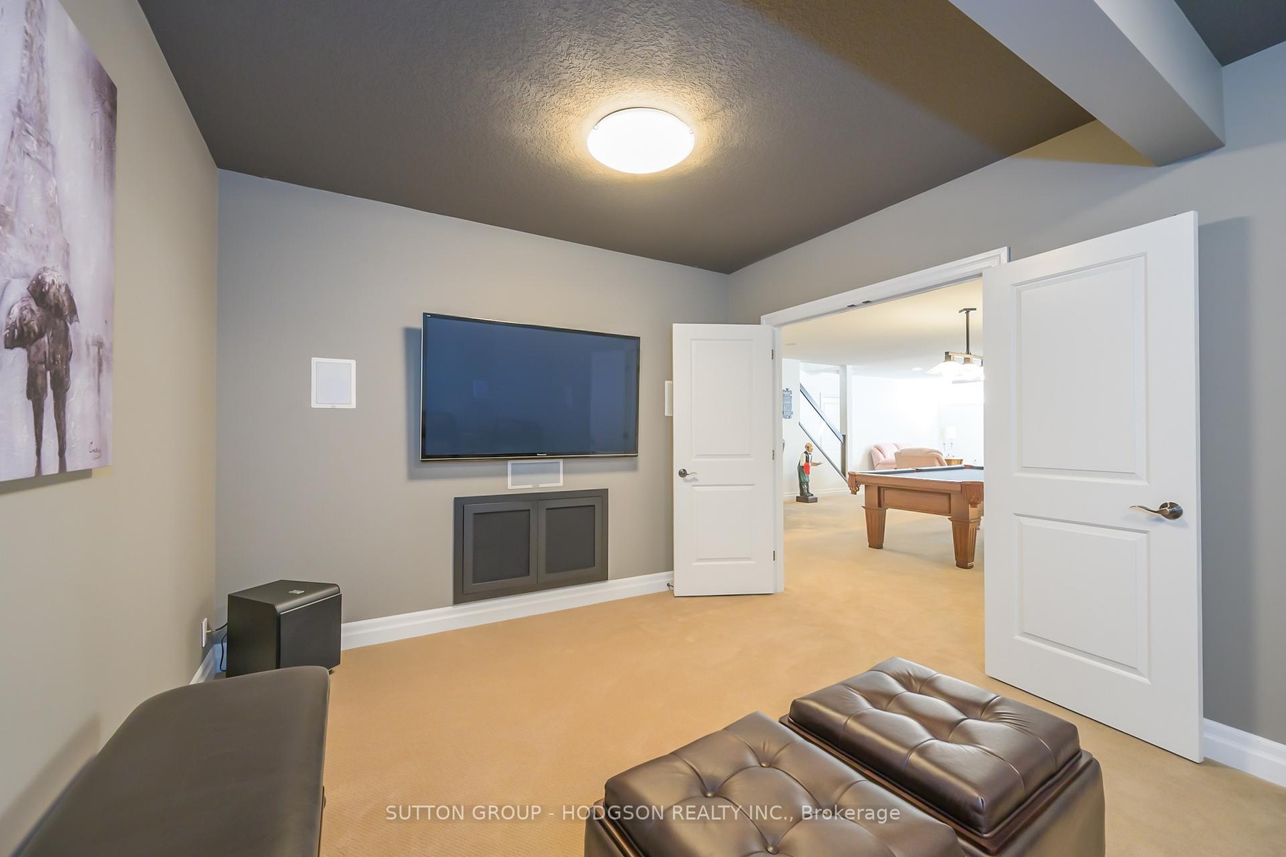 Welcome to this elegant residence in the prestigious Riverbend Golf Community, where upscale design meets a serene natural setting. Offering impressive curb appeal with stone pillars and manicured landscaping, this home combines warmth, sophistication, and functionality. Inside, you'll find high ceilings, an open-concept layout, and expansive hardwood flooring throughout the main level. The great room features a cozy fireplace and views of the golf course, while the formal dining room is perfect for hosting holidays and special occasions. The kitchen impresses with abundant crowned cabinetry, stone counters, stainless appliances, a pantry, and a sunlit eating area overlooking the fairway. The main floor office with custom built-ins provides a quiet, versatile space for work or reading. Two generous bedrooms each enjoy private ensuites, with the spacious primary offering three closets and an ensuite with a large shower. A stylish powder room, laundry area, and garage with golf cart parking complete the main level. The finished lower adds outstanding lifestyle space with a large family room, games area with wet bar, movie room, guest bedroom, full bath, and ample storage. Outdoor living is exceptional with a covered sitting area and an additional patio ideal for soaking up the sun or taking in the peaceful views. Riverbend isn't just a neighbourhood-it's a lifestyle. Designed for 50+ residents, this gated community offers 24-hour concierge service, beautifully maintained grounds, and a vibrant clubhouse with fine dining, lounges, indoor pool, gym, and social events. Residents enjoy a private Doug Carrick-designed golf course, scenic trails along the Thames River, and a true sense of community among like-minded neighbours. Monthly fees include lawn care, snow removal, and irrigation for worry-free living. Experience luxury, comfort, and connection in one of London's most exclusive and desirable settings. Land lease: $727.12/month. Maintenance: $633.61/month.