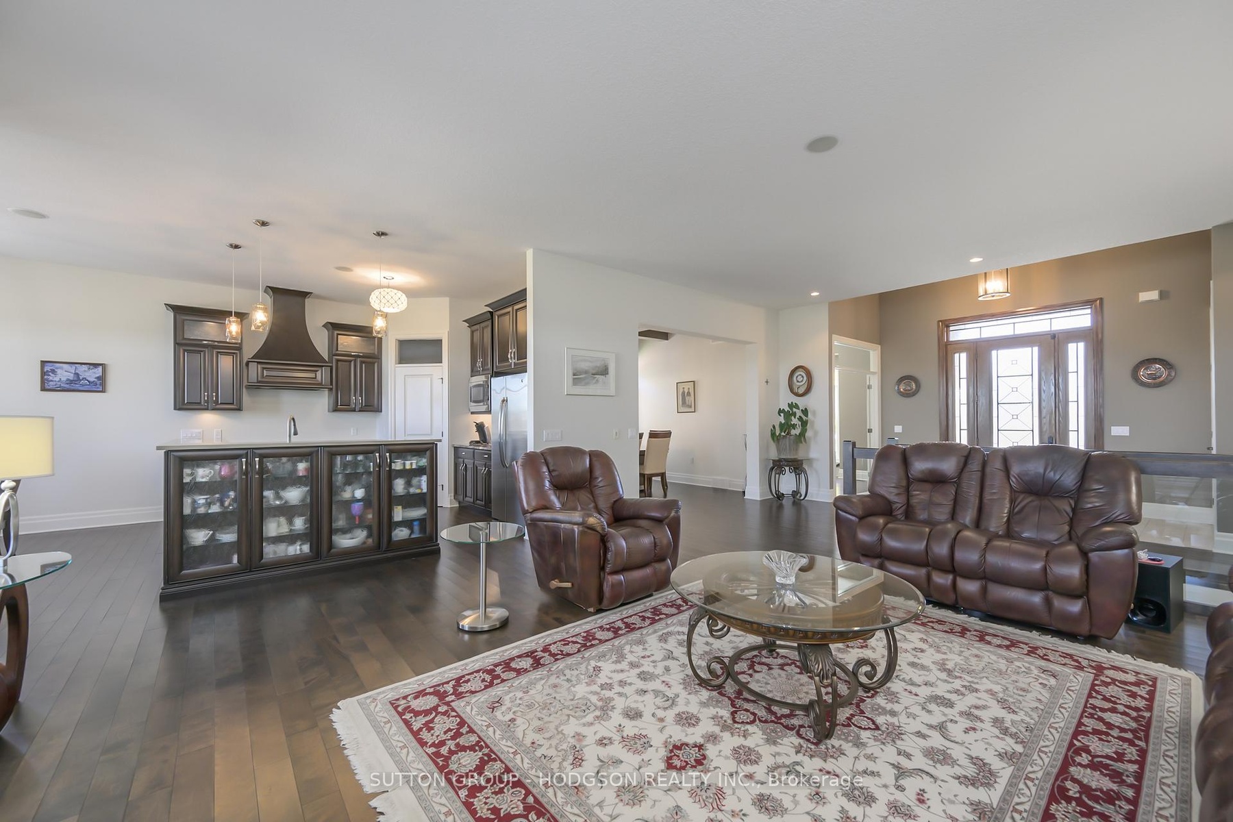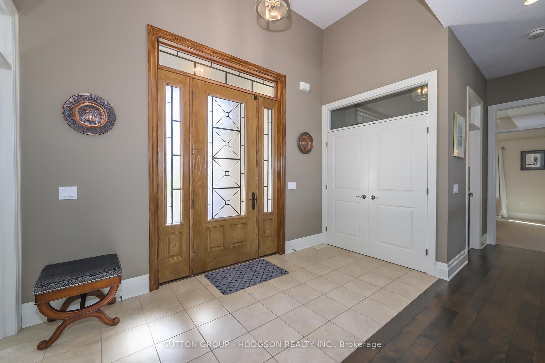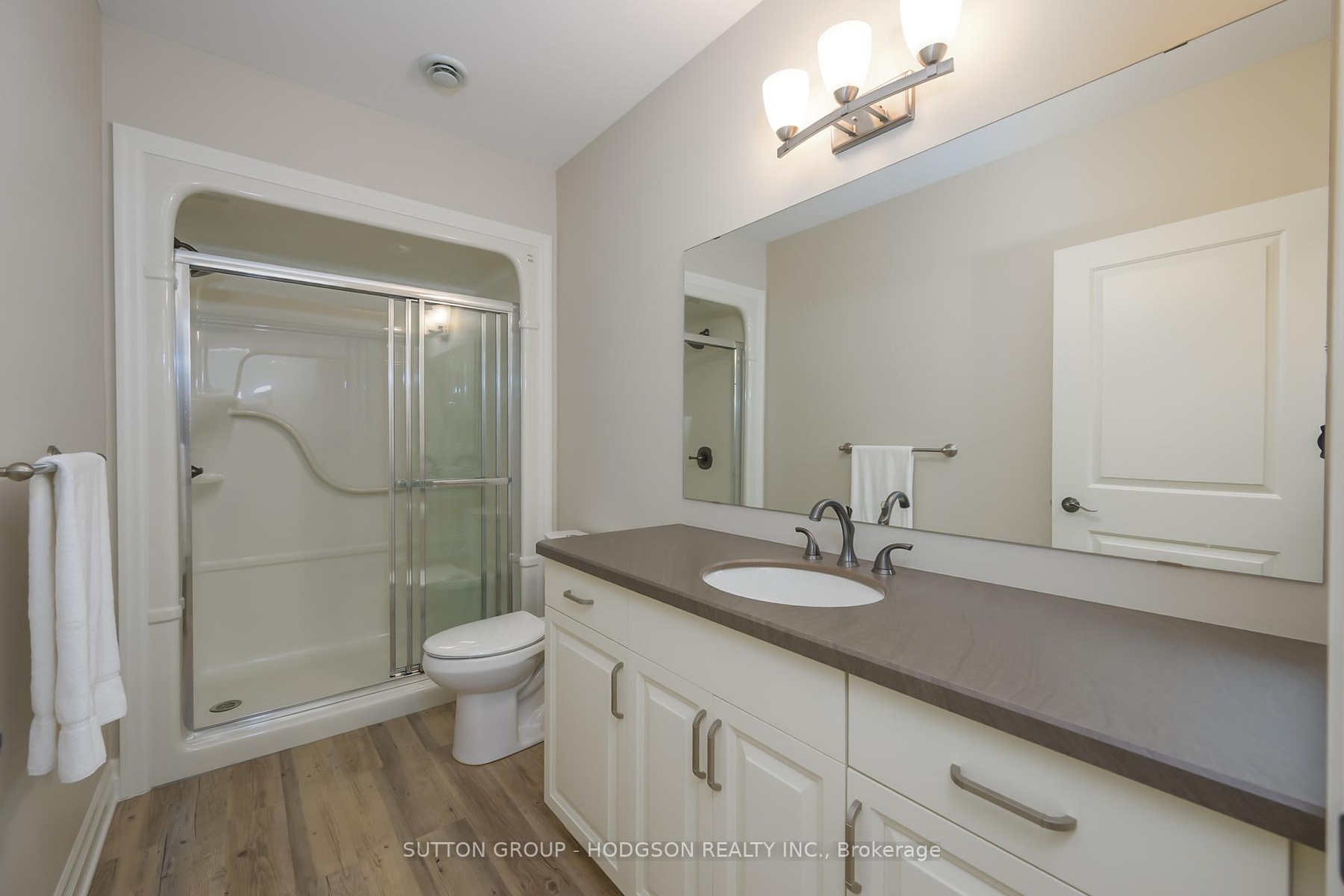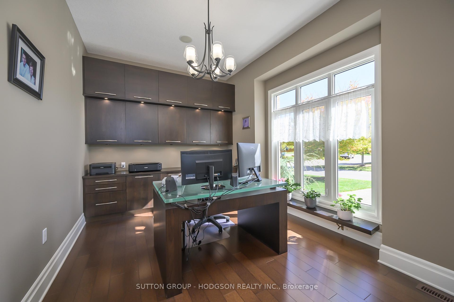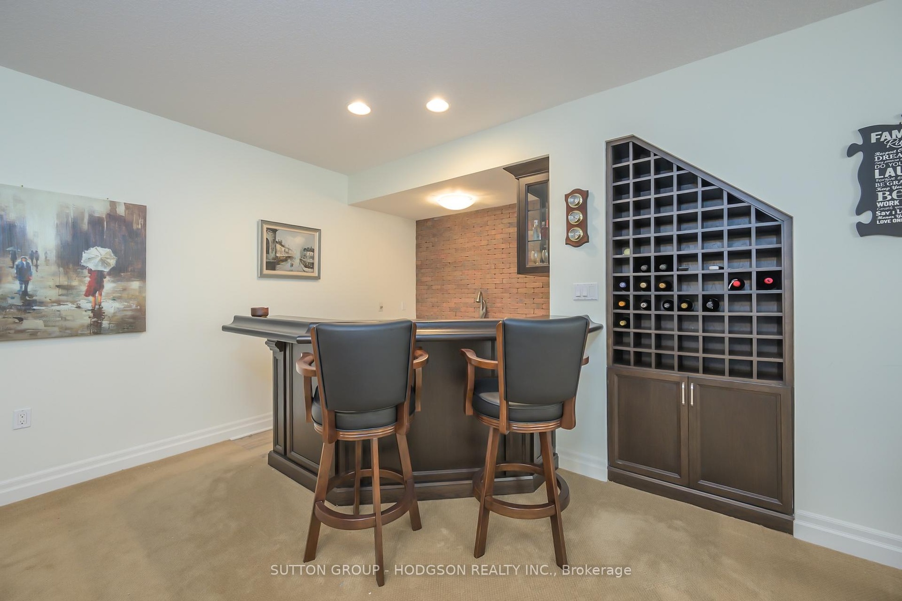 Welcome to this elegant residence in the prestigious Riverbend Golf Community, where upscale design meets a serene natural setting. Offering impressive curb appeal with stone pillars and manicured landscaping, this home combines warmth, sophistication, and functionality. Inside, you'll find high ceilings, an open-concept layout, and expansive hardwood flooring throughout the main level. The great room features a cozy fireplace and views of the golf course, while the formal dining room is perfect for hosting holidays and special occasions. The kitchen impresses with abundant crowned cabinetry, stone counters, stainless appliances, a pantry, and a sunlit eating area overlooking the fairway. The main floor office with custom built-ins provides a quiet, versatile space for work or reading. Two generous bedrooms each enjoy private ensuites, with the spacious primary offering three closets and an ensuite with a large shower. A stylish powder room, laundry area, and garage with golf cart parking complete the main level. The finished lower adds outstanding lifestyle space with a large family room, games area with wet bar, movie room, guest bedroom, full bath, and ample storage. Outdoor living is exceptional with a covered sitting area and an additional patio ideal for soaking up the sun or taking in the peaceful views. Riverbend isn't just a neighbourhood-it's a lifestyle. Designed for 50+ residents, this gated community offers 24-hour concierge service, beautifully maintained grounds, and a vibrant clubhouse with fine dining, lounges, indoor pool, gym, and social events. Residents enjoy a private Doug Carrick-designed golf course, scenic trails along the Thames River, and a true sense of community among like-minded neighbours. Monthly fees include lawn care, snow removal, and irrigation for worry-free living. Experience luxury, comfort, and connection in one of London's most exclusive and desirable settings. Land lease: $727.12/month. Maintenance: $633.61/month.