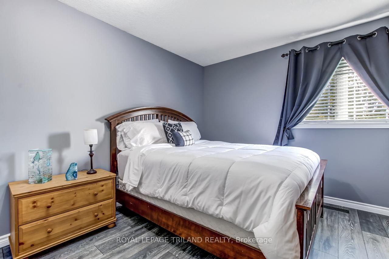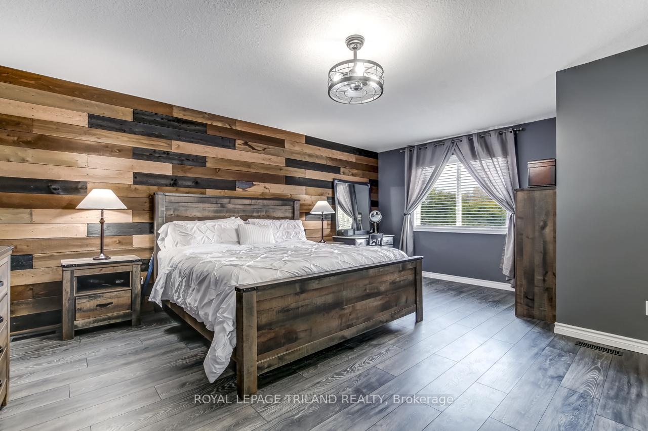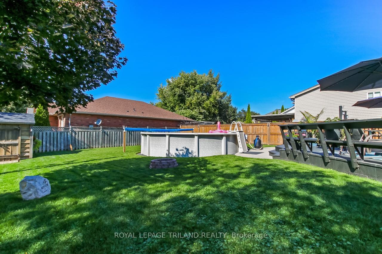 Welcome to Beattie Street in desirable community of Lambeth. Only steps away to a huge recreational park. Only minutes to all amenities and a short drive to access Hwy 401and 402. This 2 storey home features a lovely front and side covered porch and is situated on a large beautifully landscaped corner lot. The private fenced rear yard features and above ground pool and hot tub. The entertaining sized deck is perfect for those summer gatherings. The impressive two storey foyer and open concept design between the family room and kitchen makes this an ideal family home. The huge master bedroom will easily fit a king sized bed and more including a large walk-in closet and a 4 piece ensuite bath. The finished lower level includes a rec room and a play room. This property offers everything your family desires from being located in the friendly community of Lambeth and that it is close to all the amenities that meets all your family needs.