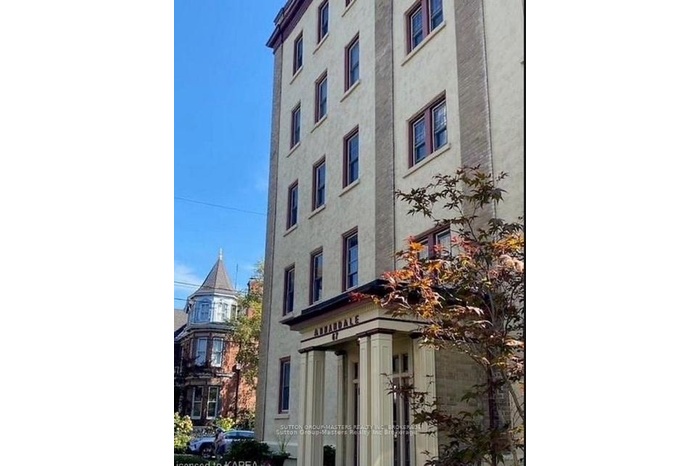 This stunning 2-bedroom executive condo is nestled in the historic Annandale building, surrounded by majestic churches, charming B&Bs, and breathtaking waterfront strolls. Prime Location: Situated in downtown Kingston, enjoy effortless access to Queens University, KGH, and Hotel Dieu Hospitals. Walk to restaurants, concerts, and the scenic waterfront for an evening of relaxation and entertainment. Spoil yourself with Luxury & Comfort: Spacious open-concept professionally designed. Gorgeous living room windows boasting picturesque views. Modern kitchen with stunning cabinetry & sleek quartz countertops. Quality bamboo flooring - a delight for your feet! Soaring tall ceilings enhance the elegance of the space. 2 bedrooms with ample closet space and bright windows. Beautifully renovated spa-like bathroom featuring a glass shower and tranquil finishes. In unit washer/dryer for ultimate convenience. Loose yourself in the Historic Charm & Amenities: Wide hallways adorned with luxurious carpets for a serene ambiance. Elevator, courtyard with BBQ, and bike storage and additional locker. Best parking spot in the building near the back door. Well-maintained lush gardens for a peaceful retreat Embrace the vibrant lifestyle Kingston offers, all while living in a mature, historic area filled with architectural beauty and green spaces. Move into one of Kingston's hidden gems today!