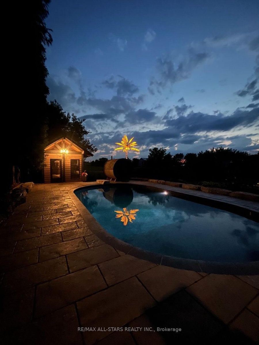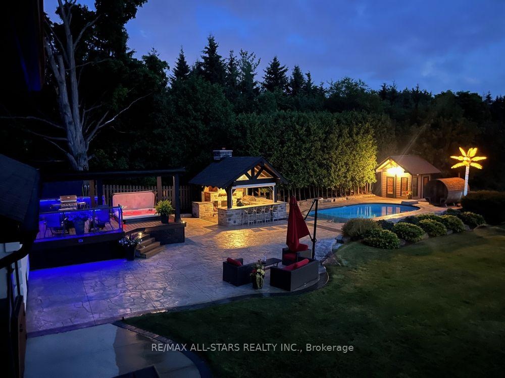 Why choose between home, cottage, or resort when you can have it all? This exceptional 4+1 bedroom executive home sits on a breathtaking 150' x 200' lot backing onto open fields with no neighbours behind, offering total privacy, sweeping sunset views, and a true entertainers dream. Inside, enjoy a light-filled open-concept layout with hardwood floors, crown moulding, a sunroom, and a stylish kitchen with granite countertops, heated floors, stainless steel appliances, centre island with bar fridge, and walkout to your backyard escape. The private primary suite feels like a luxury hotel with its gas fireplace, Juliette balcony, walk-in closet, soaker tub and spa-style ensuite featuring heated floors and glass shower. The finished basement includes a spacious rec room, bedroom, bath, and separate entrance ideal for in-laws or extended family. Outside is where this property truly shines: a resort-style backyard complete with a heated saltwater pool, hot tub, wood and electric sauna, outdoor shower, fire pit, and an absolutely show-stopping outdoor kitchen featuring a stone fireplace, built-in BBQ, keg fridge, bar fridge, smoker, ice maker, sink, ceiling fan, and automatic shutters. Whether you're hosting an intimate dinner or a lively summer party, this space delivers. Lush, low-maintenance landscaping is kept pristine with a Wi-Fi/timer-controlled inground sprinkler system and outdoor lighting for stunning evening ambiance. With a double garage offering front and back doors and basement access, a large shed, lean-to with hydro, and huge driveway, every detail is taken care of. All of this just minutes to Newmarket, Keswick, and Hwy 404, enjoy easy commuting with the feel of country living. This is more than a home; its a lifestyle.