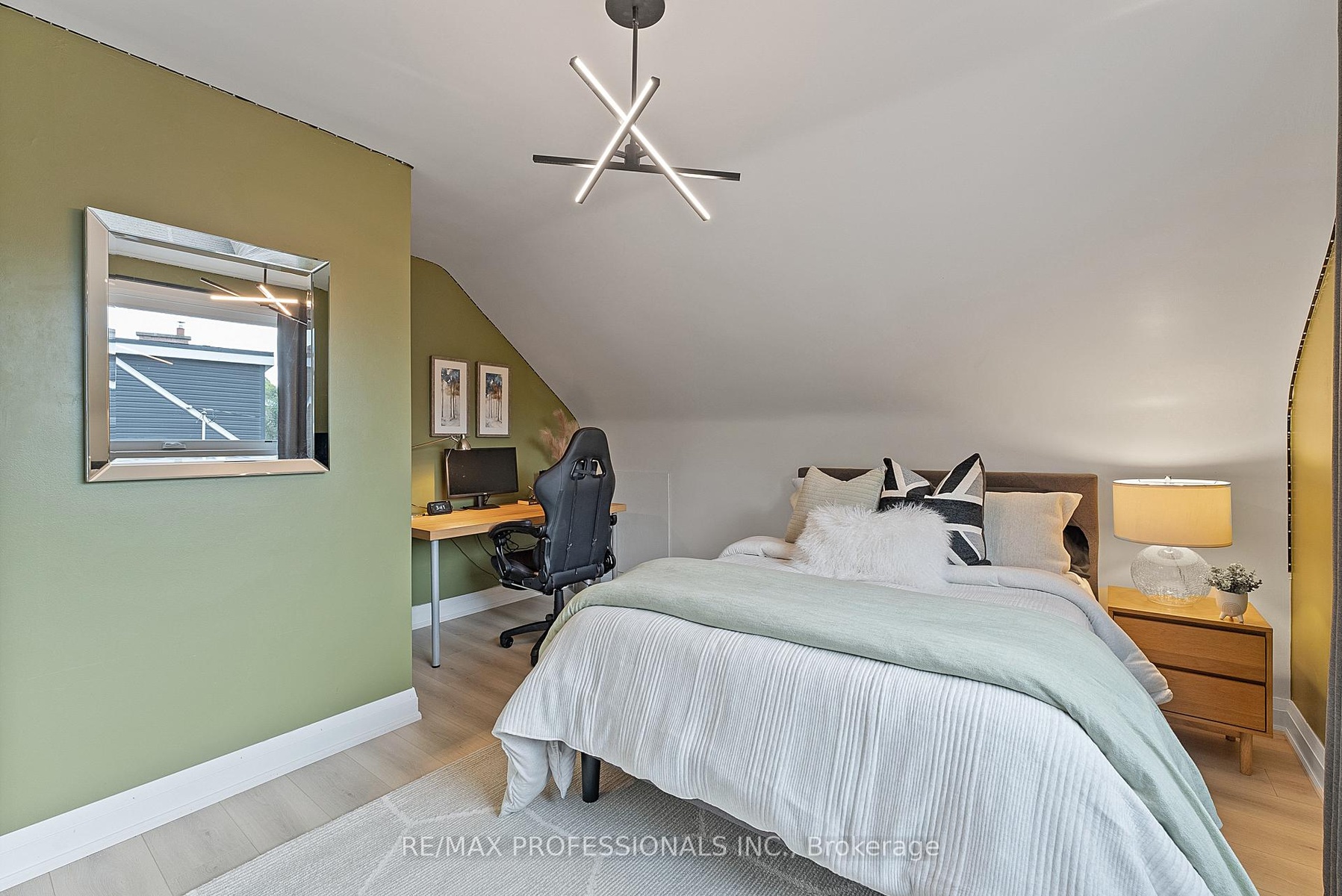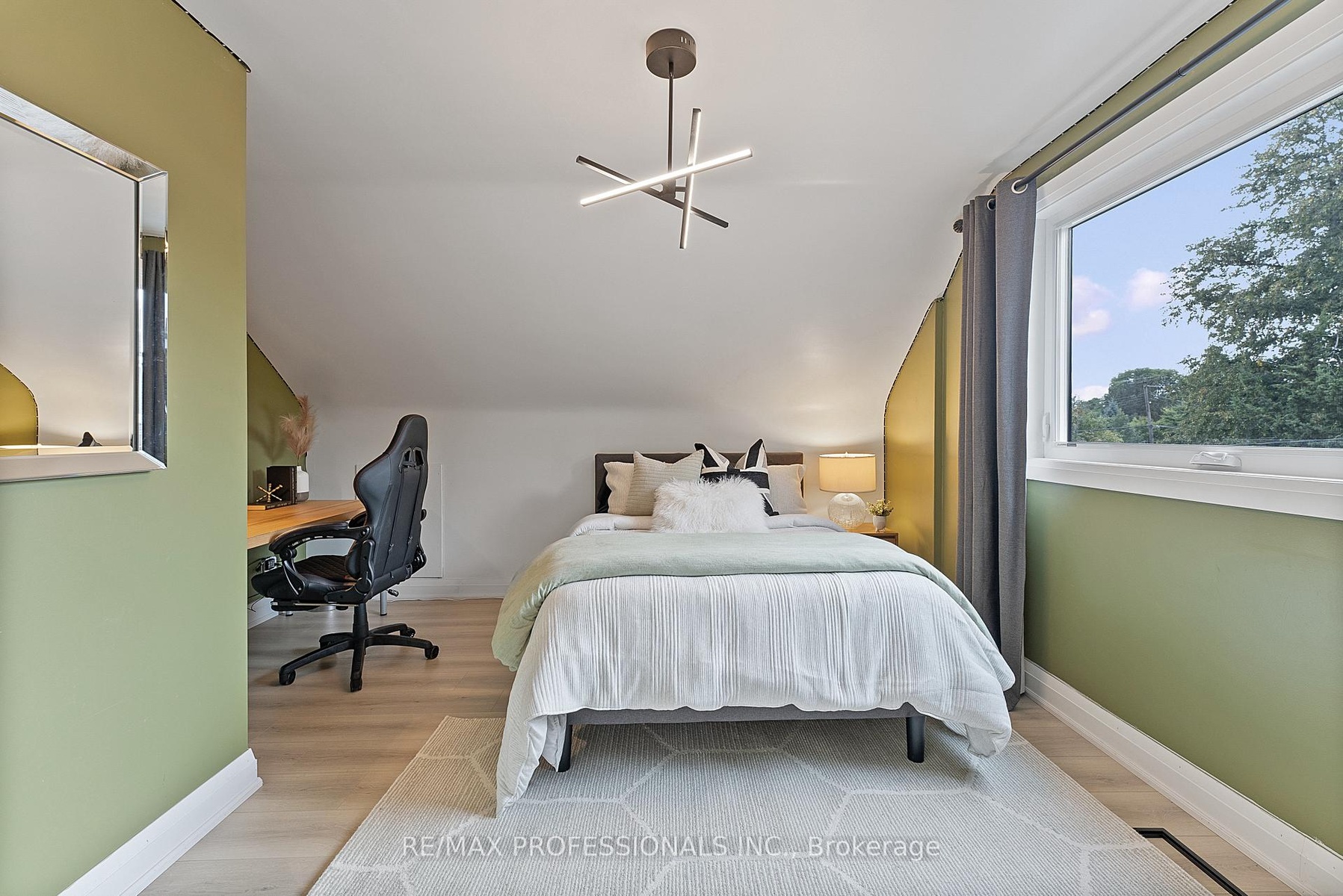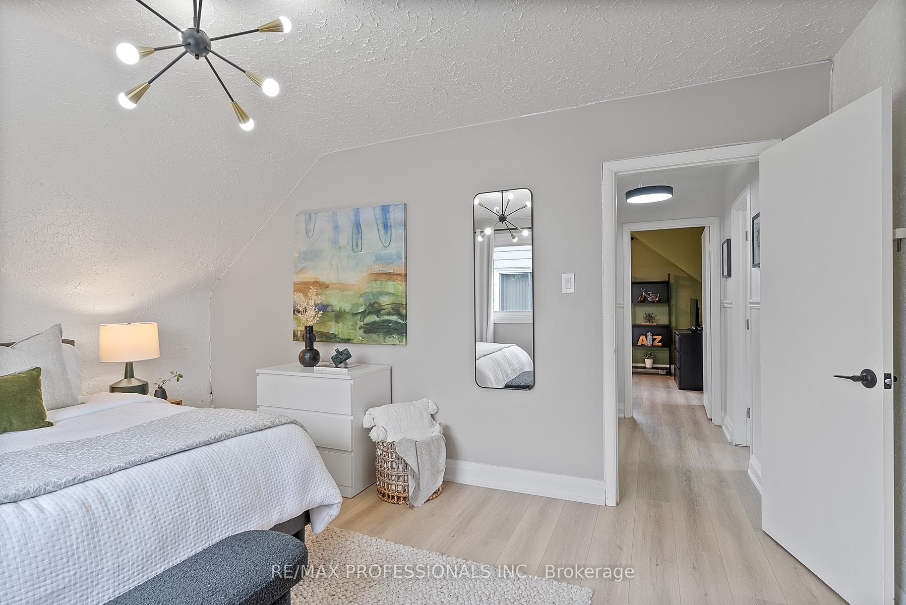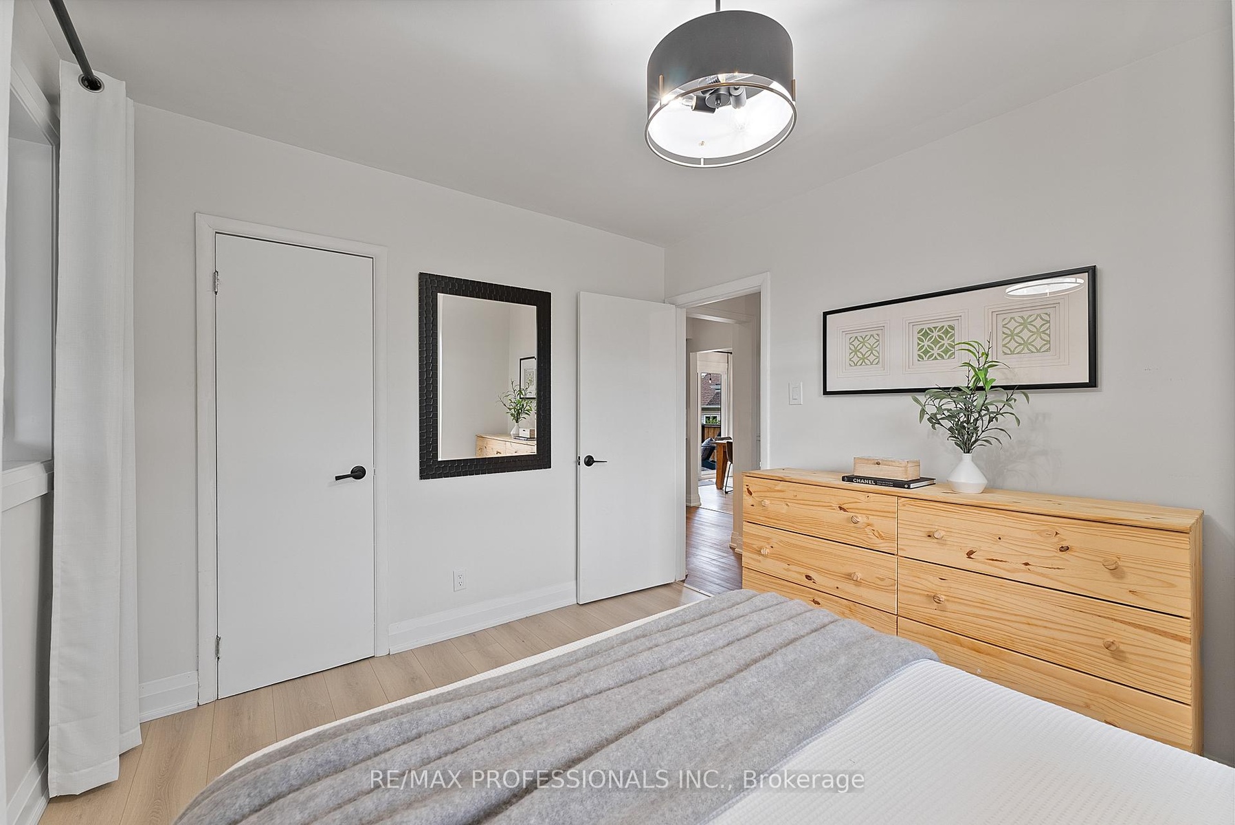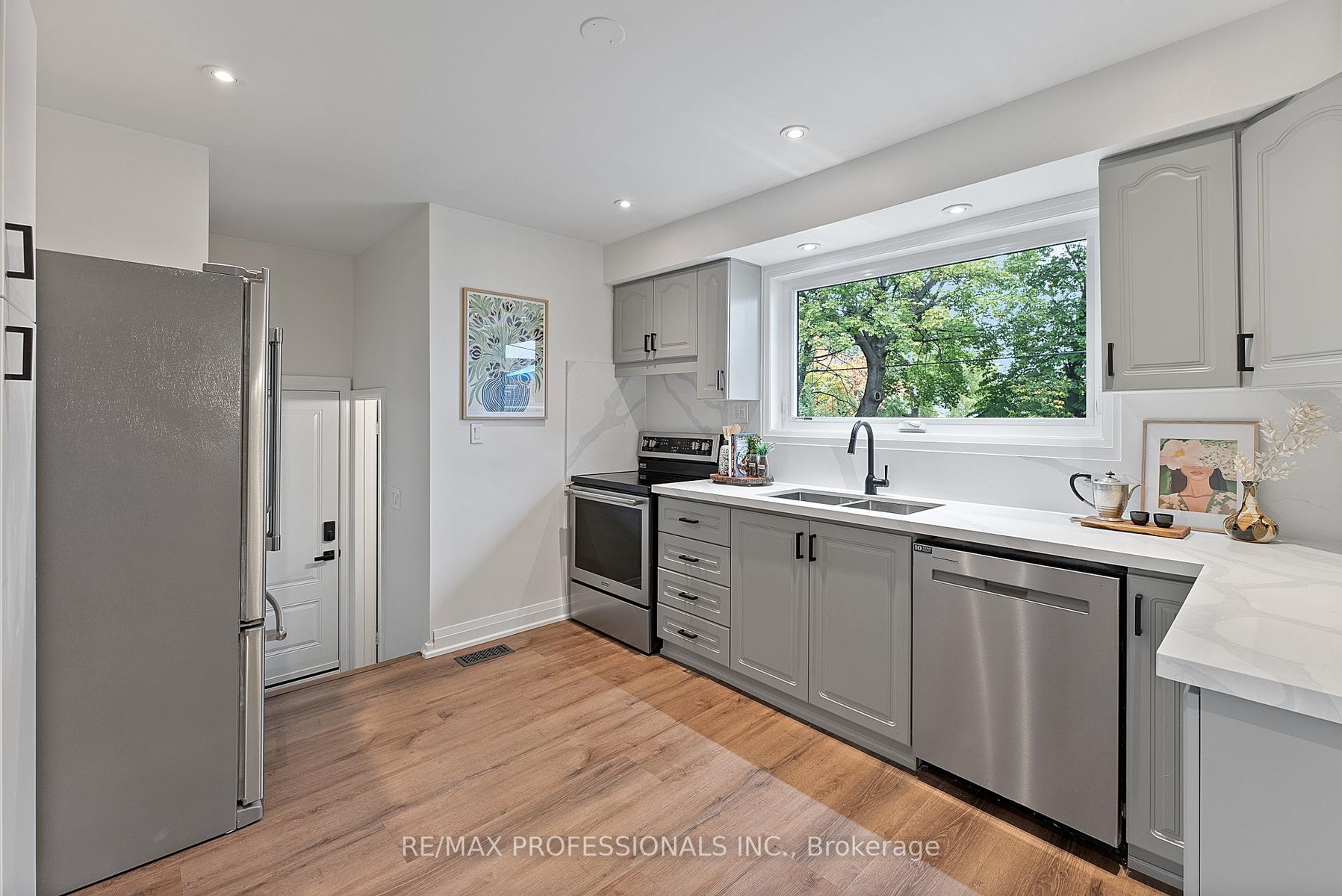 Welcome to 18 Lavington Drive, a fully renovated 1.5 storey detached brick home in Etobicoke's Martin Grove Gardens neighbourhood. Situated on a 52 x 108 lot with a charming front porch and excellent curb appeal, this turnkey home offers modern updates, a functional layout and an enviable setting directly across from Martingrove Gardens Park. The main level features a foyer with coat closet, a bright living room with wide-plank flooring, pot lights and a large window overlooking the park, a dining room with a walkout to the backyard, a renovated kitchen with quartz counters and backsplash, stainless steel appliances, pot lights, a double sink & a picture window overlooking the backyard, a convenient updated powder room, as well as a versatile bedroom. On the second level there a two spacious bedrooms with walk-in closets, office nooks and large windows as well as a 3-piece bath with glass shower and modern finishes. The lower level boasts a massive recreation room with panelling, broadloom and track lights, as well as a combined laundry/storage area. The backyard is perfect for family living and entertaining with an oversized deck, mature trees, large lawn, concrete patio, new fence (2023), shed and gas BBQ hookup. A carport and newly repaved private driveway provide parking for three cars. Updates include new windows/doors (2025), modern flooring with Aria vents, new baseboards, updated plumbing/electrical, a smart thermostat & much more! Ideally located directly across from newly upgraded Martingrove Gardens Park with a playground, splash pad, tennis, pickleball and baseball diamonds. Near local shops like Montesanto Bakery and Martin Grove Fish & Chips, Westway Centre, Costco, West Deane Park, Weston Golf Club and local schools. Easy access to TTC, Hwys 401& 427 and Pearson Airport! With contemporary touches and a desirable park-side location, 18 Lavington Dr is a move-in ready home offering outstanding value in a mature, family-friendly Etobicoke neighbourhood!