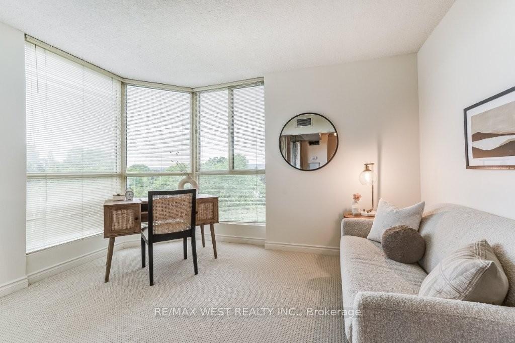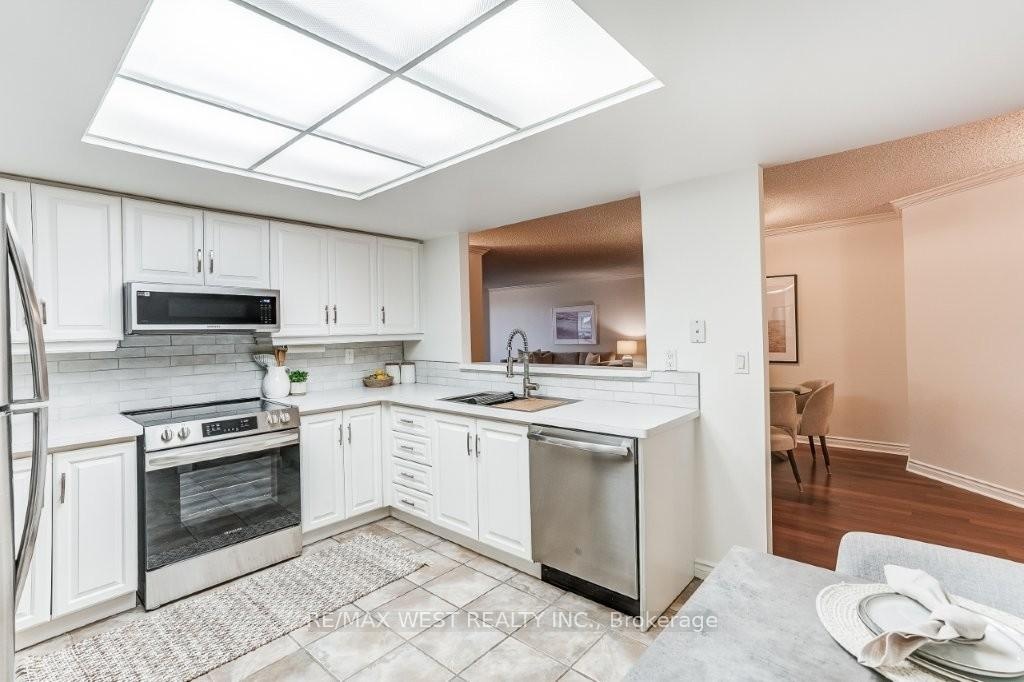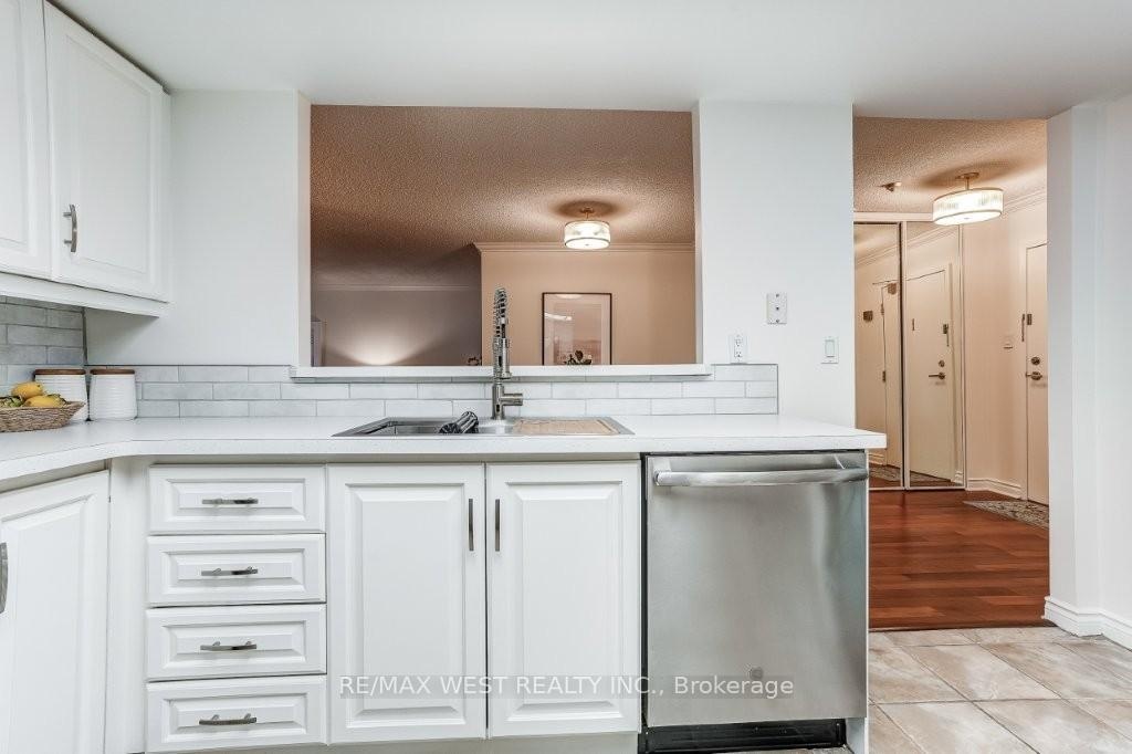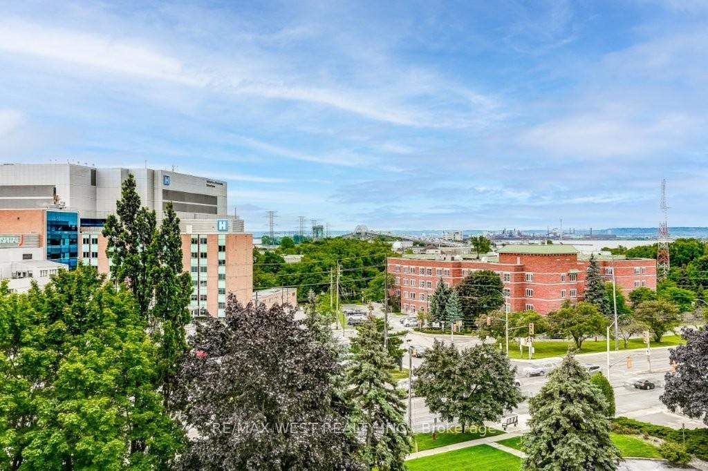 Welcome to Harbour Lights... a coveted south Burlington address! This stunning 1+1 bedroom suite boasts a sun-filled living space with approximately 1,170 square feet of luxury living. Updated eat-in kitchen offers white cabinets, stainless steel appliances and custom back splash. Primary bedroom retreat has a 4-piece ensuite and double closet. Other notable features include 2 spa-inspired bathrooms, spacious den, gleaming wood floors, new berber carpet, crown moulding and ensuite laundry. Walk-out to private balcony that overlooks the outdoor pool, treetop vistas and Lake Ontario. Building amenities offer outdoor swimming pool, sauna, billiard room, fitness centre, party room and barbecue area. The maintenance fees include heat, water, cable, internet, building insurance, underground parking and a locker. Stroll to Spencer Smith Park, the waterfront and downtown Burlington. Conveniently located minutes away from transit, hospital, great dining and shopping. Your new home awaits...