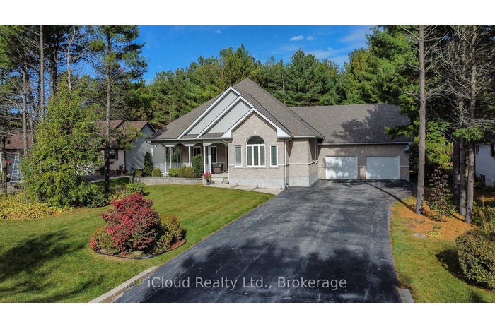 Welcome to this beautiful and spacious bungalow located in the highly sought-after Wasaga Sands community. Offering 3 bedrooms and 3 bathrooms, this home boasts over 2,100 sq. ft. of main floor living space designed for comfort and functionality.Set on a generous half-acre lot, the property features a serene backdrop of lush, mature trees - perfect for enjoying privacy and nature. Relax or entertain on the large backyard patio, or start your mornings on the charming covered front porch with your coffee in hand.Inside, you'll find a bright, open layout with plenty of windows that bathe the space in natural light. An all-season sunroom offers a cozy retreat year-round, ideal for relaxing or hosting guests.The double car garage and extra-wide driveway provide ample parking for family and visitors. The partially finished basement adds another 1,3300 sq. ft. of versatile space, including a sitting area, pool table room, workout room, and a full bathroom-making it perfect for entertaining or extended family living.This home is the perfect blend of elegance, space, and comfort in a peaceful, prestigious neighbourhood.