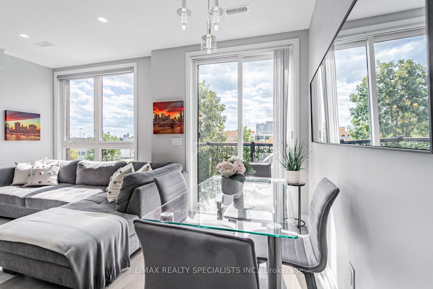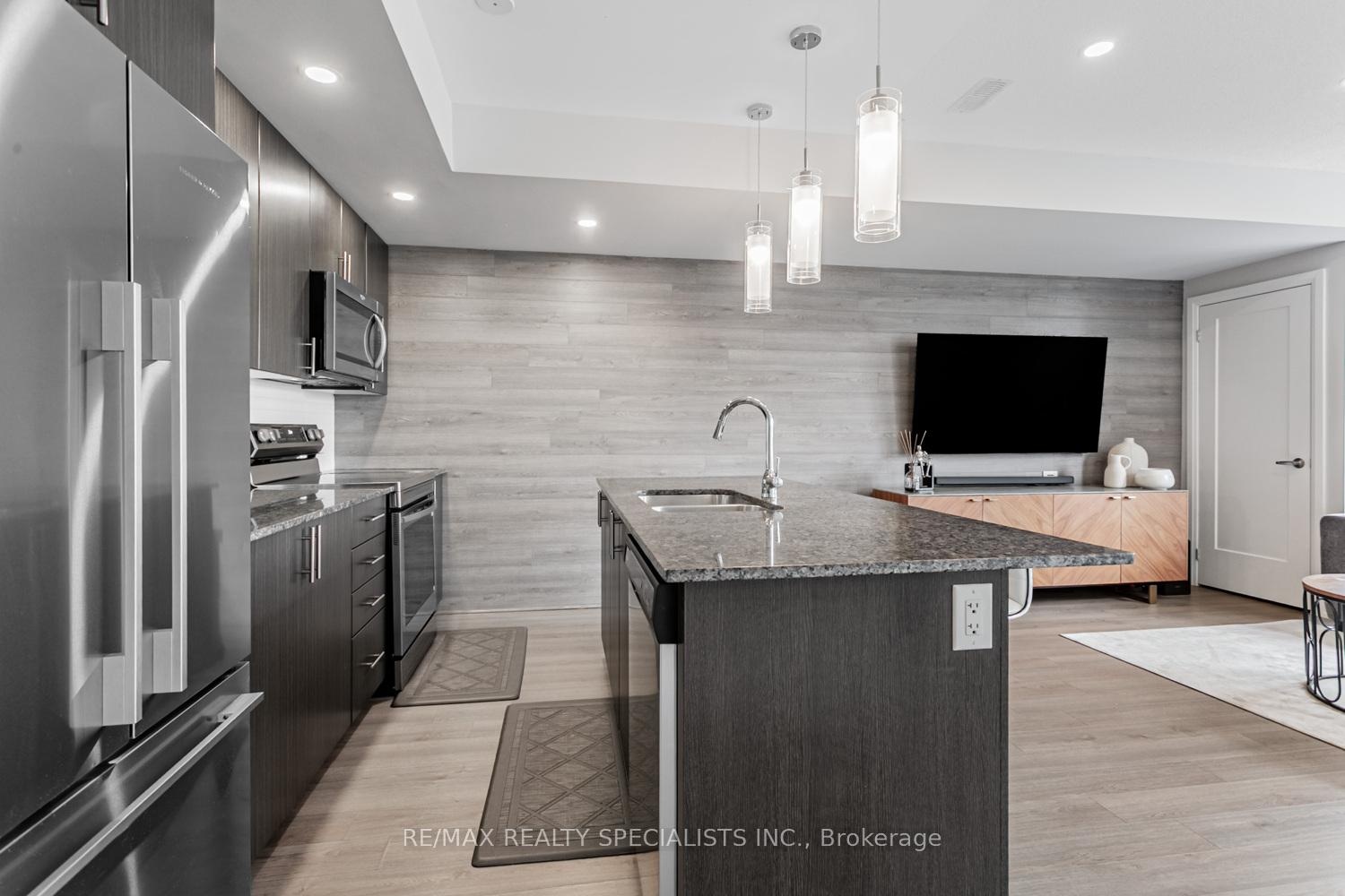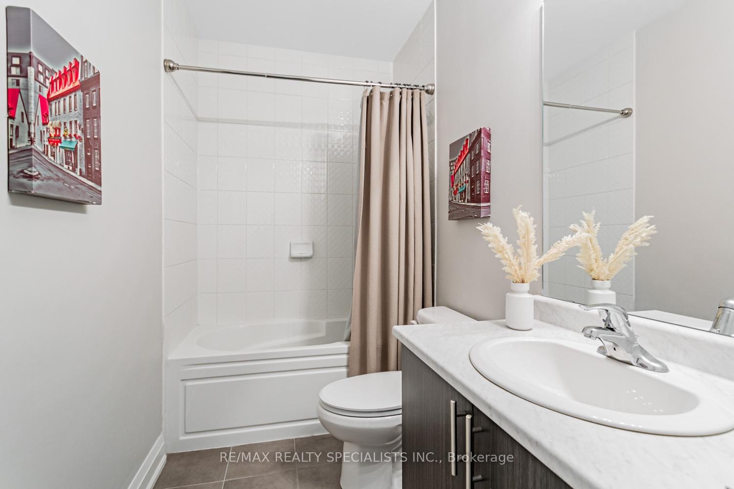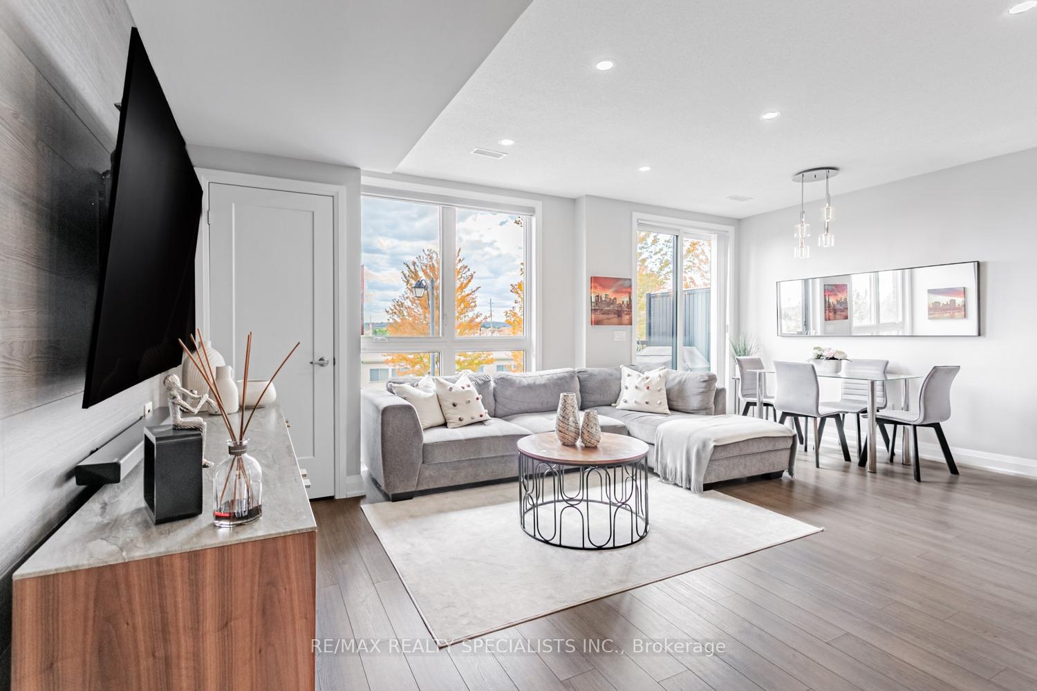 Immaculate 2-Bedroom, 3-Bathroom Stacked Townhome In The Heart Of Milton's Highly Desirable Dempsey Community - Featuring A Rare Layout With Two Full Baths Upstairs! This Upper-Level Townhome Impresses With 2 Parking Spaces (Side-By-Side) And An Oversized Locker, Delivering A Level Of Convenience That's Hard To Find Elsewhere. Step Inside To A Cozy Foyer Leading Up To A Bright, Airy Main Level Enhanced With Pot Lights Throughout And A Seamless Open-Concept Layout That Feels Instantly Welcoming. The Modern Kitchen Is Beautifully Appointed With Granite Countertops, Stainless Steel Appliances, Subway Tile Backsplash, And A Spacious Centre Island - Perfect For Morning Coffee Or Hosting Friends. The Sun-Filled Living Room, Accented By A Custom Feature Wall, Opens Onto A Private West-Facing Balcony Overlooking The Escarpment, Allowing You To Bask In Natural Light And Enjoy Stunning Evening Sunsets. A Well-Appointed Powder Room And Coat Closet Complete The Main Floor. Upstairs, The Primary Suite Offers A Peaceful Retreat With A Walk-In Custom Closet And A Private 3-Piece Ensuite. A Generous Second Bedroom, Stylish Common Bath, And In-Suite Laundry Add Everyday Comfort And Functionality. Perfect For Those Seeking A Low-Maintenance Lifestyle Without The High-Rise Feel, This Home Offers Maintenance-Free Living - With Grass Cutting And Snow Removal Taken Care Of. Situated Just Off Harris Boulevard, You'll Appreciate The Ease Of Access Without Having To Drive Deep Into The Complex. Close To Milton GO, HWY 401, Top-Rated Schools, Parks, Trails, Shopping, And Dining, This Home Seamlessly Combines Modern Living, Timeless Design, And Everyday Practicality.