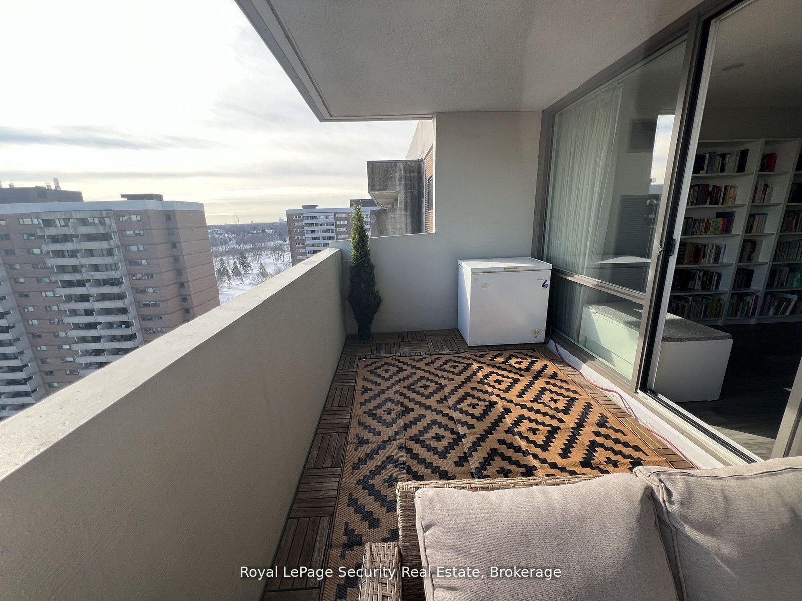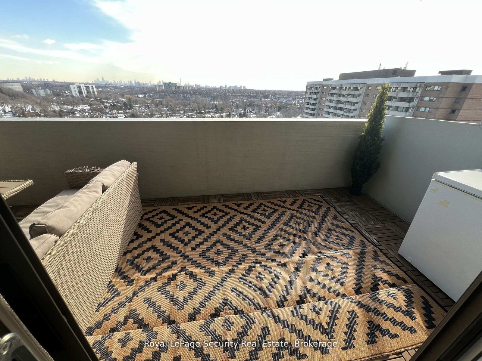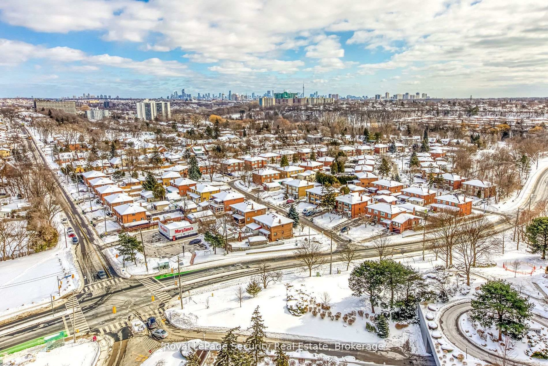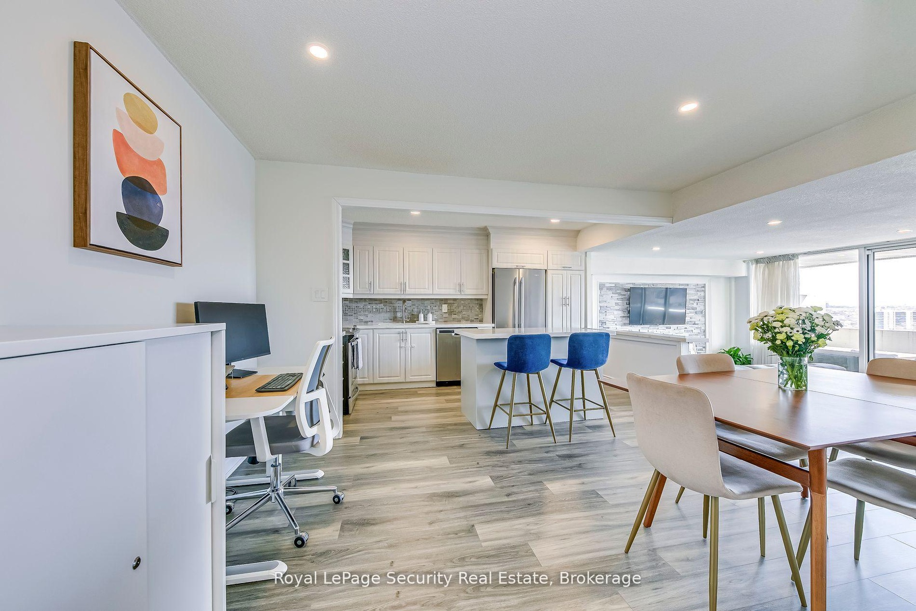 Welcome to the highly sought-after Lambton Square community! This stunning, updated top-floor unit offers a spacious and bright open-concept layout with high-end finishes throughout. 1030sqft living space + 130sqft balcony, total 1160sqft. The modern gourmet kitchen is a chefs dream, featuring ample cupboard space, undermount lighting, a central island with breakfast bar, quartz countertops, stylish backsplash, and stainless steel appliances including a fridge, stove, dishwasher, microwave rangehood. The spacious sunken living room, combined with the dining area, leads to a large balcony (5.55 x 2.23 meters) with panoramic south east city views and the CN Tower. Enjoy outdoor entertaining with an electric barbeque allowed. This lovely home boasts 2 generously sized bedrooms and 2 updated bathrooms, including a primary bedroom with a large mirrored closet and a 4-piece ensuite. The unit also features a laundry room with a new washer, new dryer, and shelving for added convenience. New flooring, baseboard and fresh professional paint were completed in November 2024. Included with the property is 1 parking space & 1 locker. The building has been elegantly renovated, with updated hallways and lobby. Residents enjoy access to excellent amenities such as an outdoor pool, party room, gym, sauna, car wash, bike storage, and nearby walking trails. Steps to TTC, the future LRT, and just a short walk to James Gardens and the trail system. Close to Lambton Golf & Country Club and Scarlett Woods Golf Course. Don't miss your chance to own this gorgeous home in a prime location!