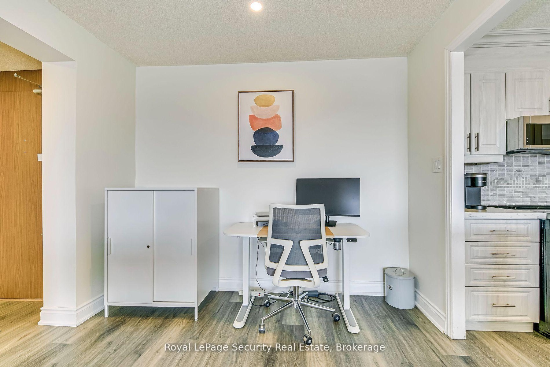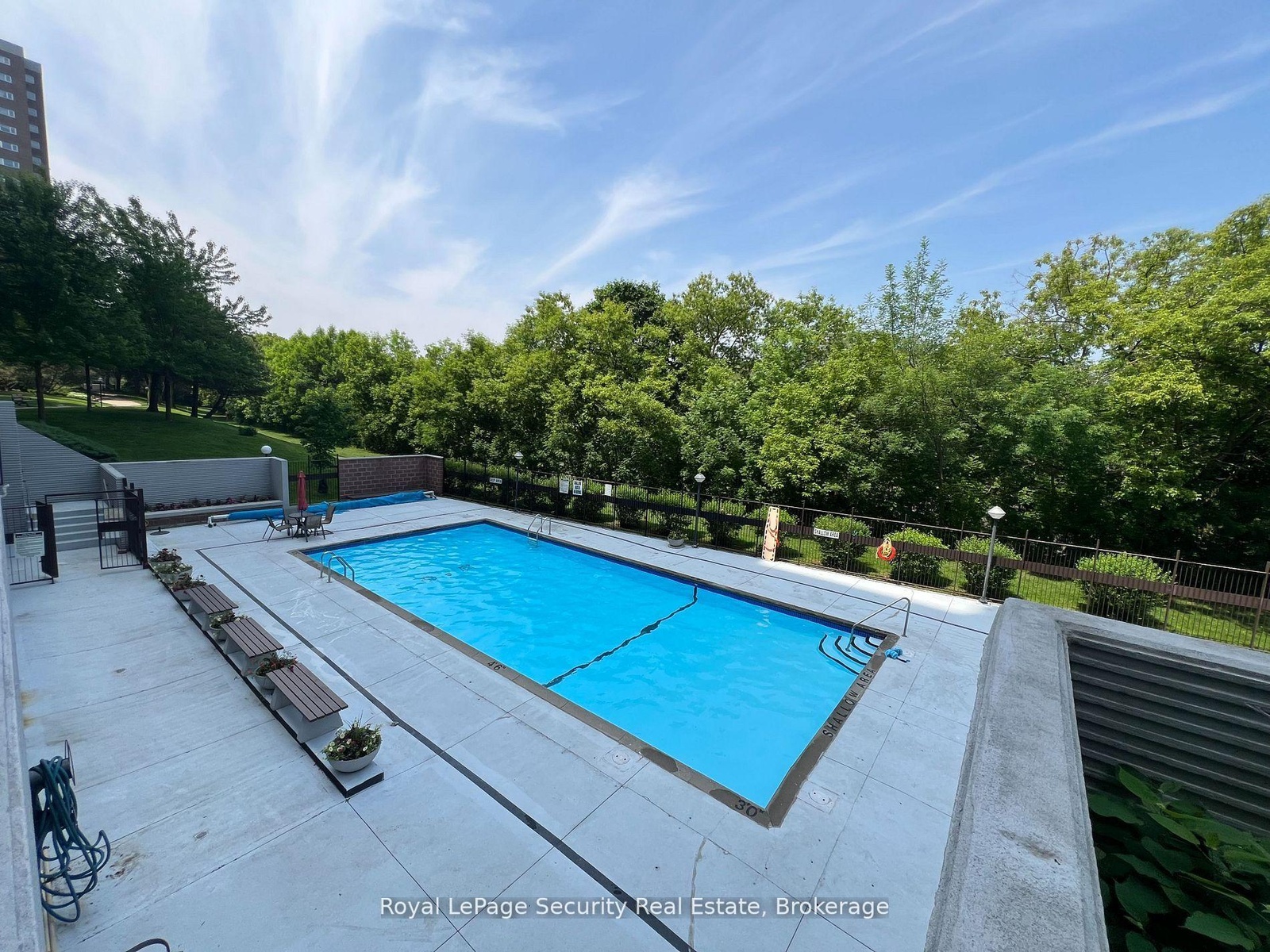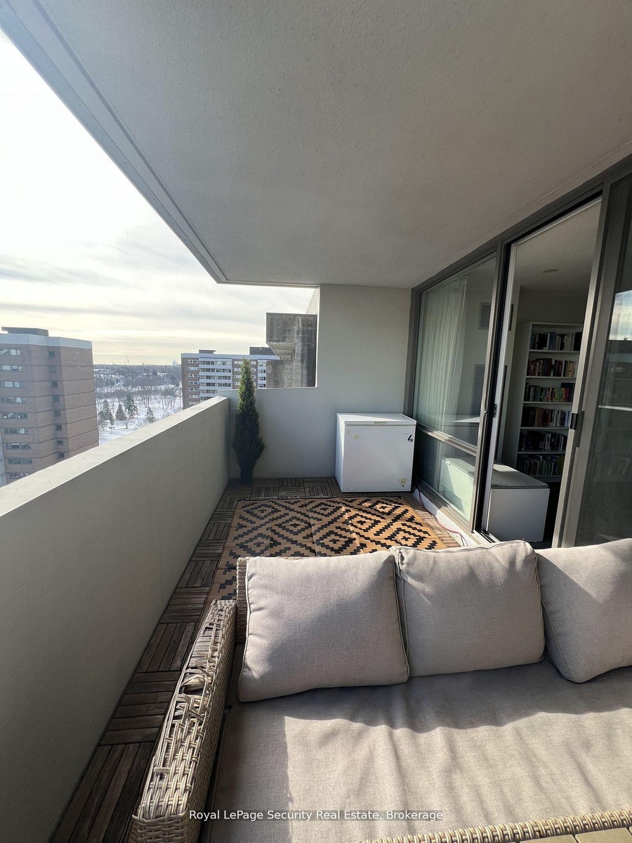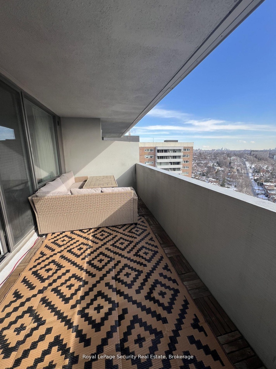 Welcome to the highly sought-after Lambton Square community! This stunning, updated top-floor unit offers a spacious and bright open-concept layout with high-end finishes throughout. 1030sqft living space + 130sqft balcony, total 1160sqft. The modern gourmet kitchen is a chefs dream, featuring ample cupboard space, undermount lighting, a central island with breakfast bar, quartz countertops, stylish backsplash, and stainless steel appliances including a fridge, stove, dishwasher, microwave rangehood. The spacious sunken living room, combined with the dining area, leads to a large balcony (5.55 x 2.23 meters) with panoramic south east city views and the CN Tower. Enjoy outdoor entertaining with an electric barbeque allowed. This lovely home boasts 2 generously sized bedrooms and 2 updated bathrooms, including a primary bedroom with a large mirrored closet and a 4-piece ensuite. The unit also features a laundry room with a new washer, new dryer, and shelving for added convenience. New flooring, baseboard and fresh professional paint were completed in November 2024. Included with the property is 1 parking space & 1 locker. The building has been elegantly renovated, with updated hallways and lobby. Residents enjoy access to excellent amenities such as an outdoor pool, party room, gym, sauna, car wash, bike storage, and nearby walking trails. Steps to TTC, the future LRT, and just a short walk to James Gardens and the trail system. Close to Lambton Golf & Country Club and Scarlett Woods Golf Course. Don't miss your chance to own this gorgeous home in a prime location!