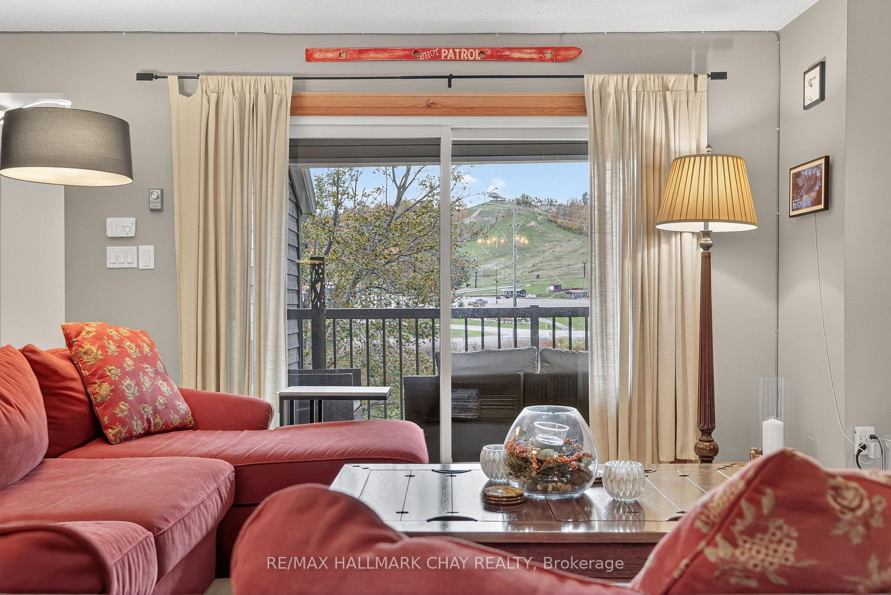 Welcome to 1102 Horseshoe Valley Rd W, Unit 312. Enjoy four-season living in this prime Horseshoe Valley location - directly across from Horseshoe Resort and within walking distance to The Heights Ski Club. This immaculate third-floor, end-unit condo is one of the largest in the building, offering two bedrooms, two bathrooms, and two front balconies, both showcasing beautiful views of Horseshoe Valley Resort and the ski hill. The open-concept layout features a spacious living room and dedicated dining area, perfect for relaxing or entertaining after a day on the slopes or trails. The updated kitchen includes stainless steel appliances and a modern design, while both bathrooms feature tasteful upgrades. The large primary bedroom offers plenty of space to unwind and includes its own private ensuite bathroom for added comfort and convenience. The second bedroom features a sliding divider, making it a versatile space that can easily transition between a guest room, home office, or extension of the main living area - ideal for maximizing your lifestyle needs. This unit also offers forced air heating, a rare and desirable feature in this building that adds extra comfort and value. Enjoy direct access to Copeland Forest's hiking and biking trails right from your doorstep. The building is pet-friendly (with some restrictions) and offers plenty of parking for both owners and guests. With in-suite laundry and an owned hot water tank, this home is move-in ready and perfect for those seeking quiet rural living close to amazing outdoor activities. Just down the road, you'll find the new Horseshoe Heights Elementary School and the upcoming community recreation centre - plus easy access to Vettä Nordic Spa and several golf courses. Located in Block 12, this suite combines comfort, convenience, and stunning views of Horseshoe Valley Resort - a truly exceptional place to call home or escape to for weekends away.