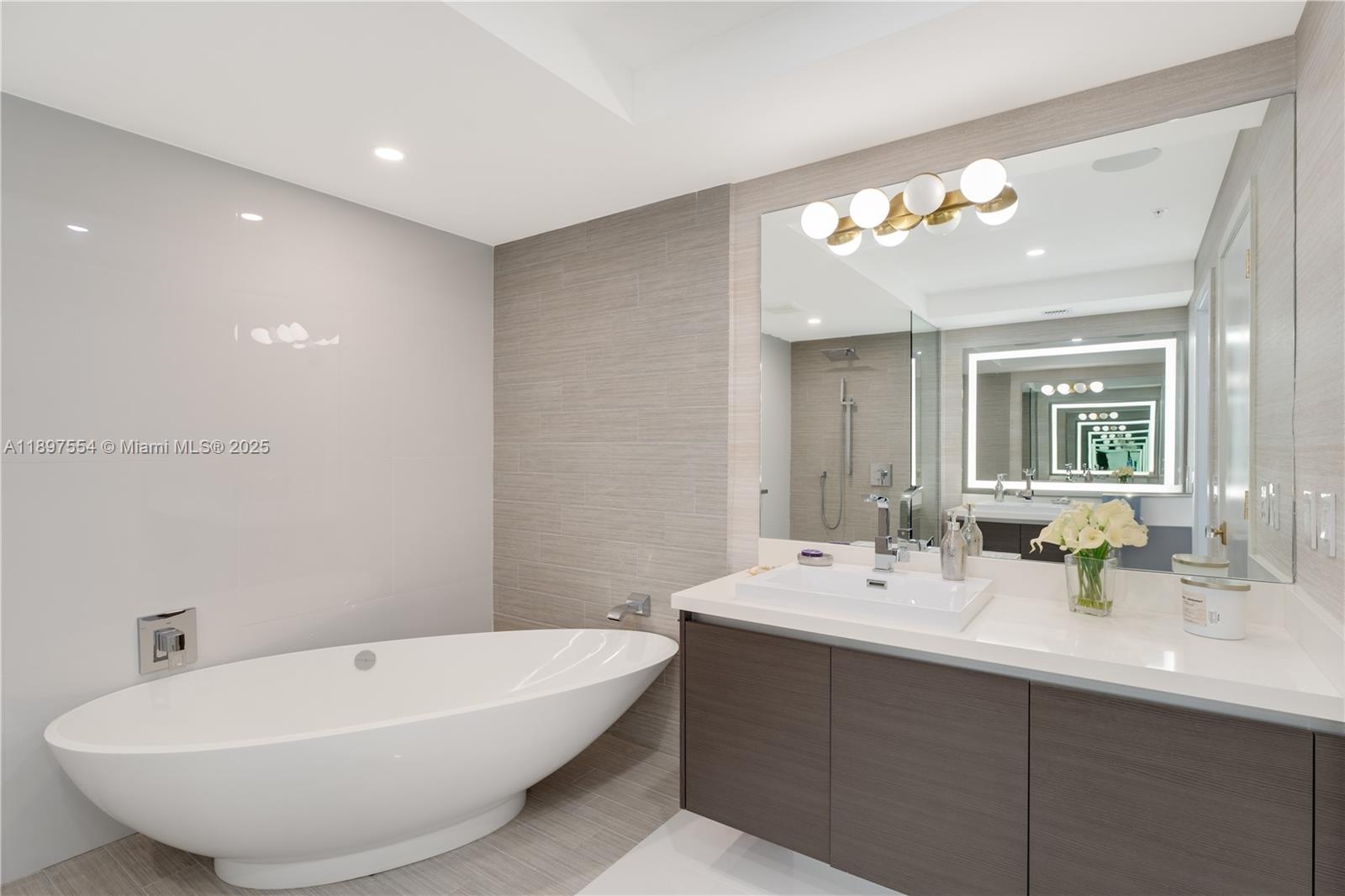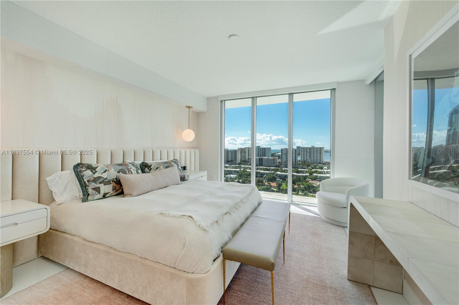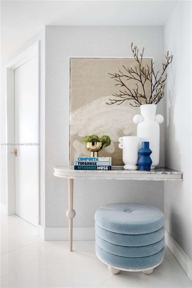 The most unique and beautifully designed unit at Parque Towers also offers stunning views. This Corner 3-Bedroom/3.5-Bath residence is located in the most coveted line in Parque Towers, one of Sunny Isles’ most luxurious buildings with resort-style amenities including multiple pools, impressive gym, and beach club with service. With nearly 1,900 Sq.Ft. of interior living area, 5-1902 offers spectacular unobstructed sunrise & sunset views of the bay, intracoastal & Downtown Miami skyline, welcoming you as you enter this modern & bespoke unit designed by Moniomi. Highlights include custom silestone-finished kitchen, elegant 36x36 marble floors, alcove recessed lighting, Bosch appliances, Lutron lighting system, electric blinds, custom closets & doors, wine fridge, large balcony, stunning primary bath w/ floating tub & dual sinks. 2 parking spaces & storage are included. Tasteful touches include gorgeous wallpaper, sculpted & rounded walls, adding to the elegance of this unique property. No expense was spared in designing this unit to the highest of standards – “It’s elevated without being obvious,” as quoted by Moniomi designers in a Luxe Interiors & Design magazine feature. Come experience tropical Miami elegance in this beautiful, one-of-a-kind and turnkey home.