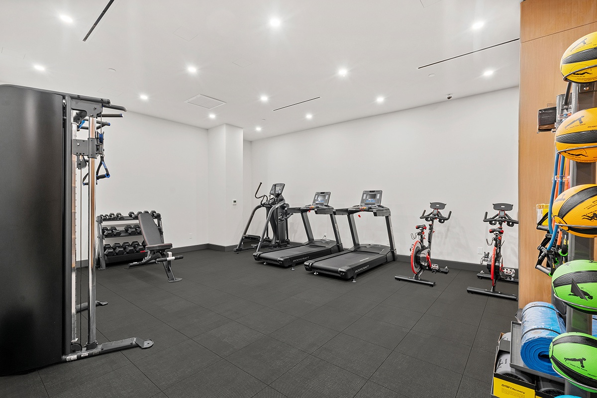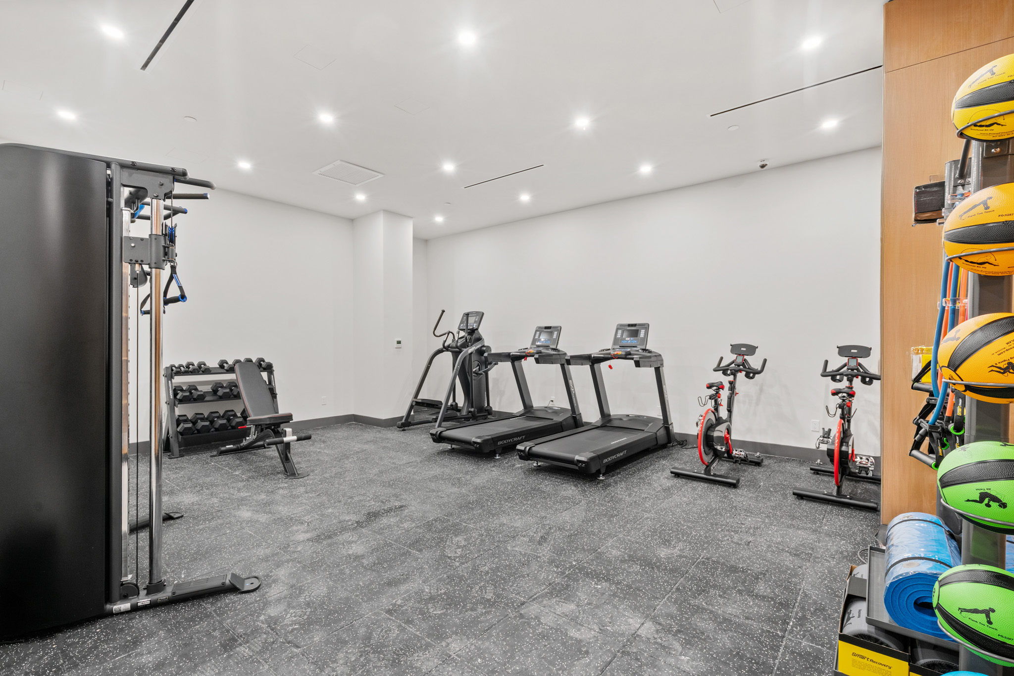 Studio38 provides an exceptional collection of amenities tailored for contemporary urban living. Residents can enjoy a state-of-the-art fitness center, a stylish lounge, bike storage, and an expansive two-floor sun deck. A stunning rooftop terrace offers breathtaking views of the Manhattan skyline, while the ButterflyMX virtual doorman system ensures seamless, secure access for residents and guests.