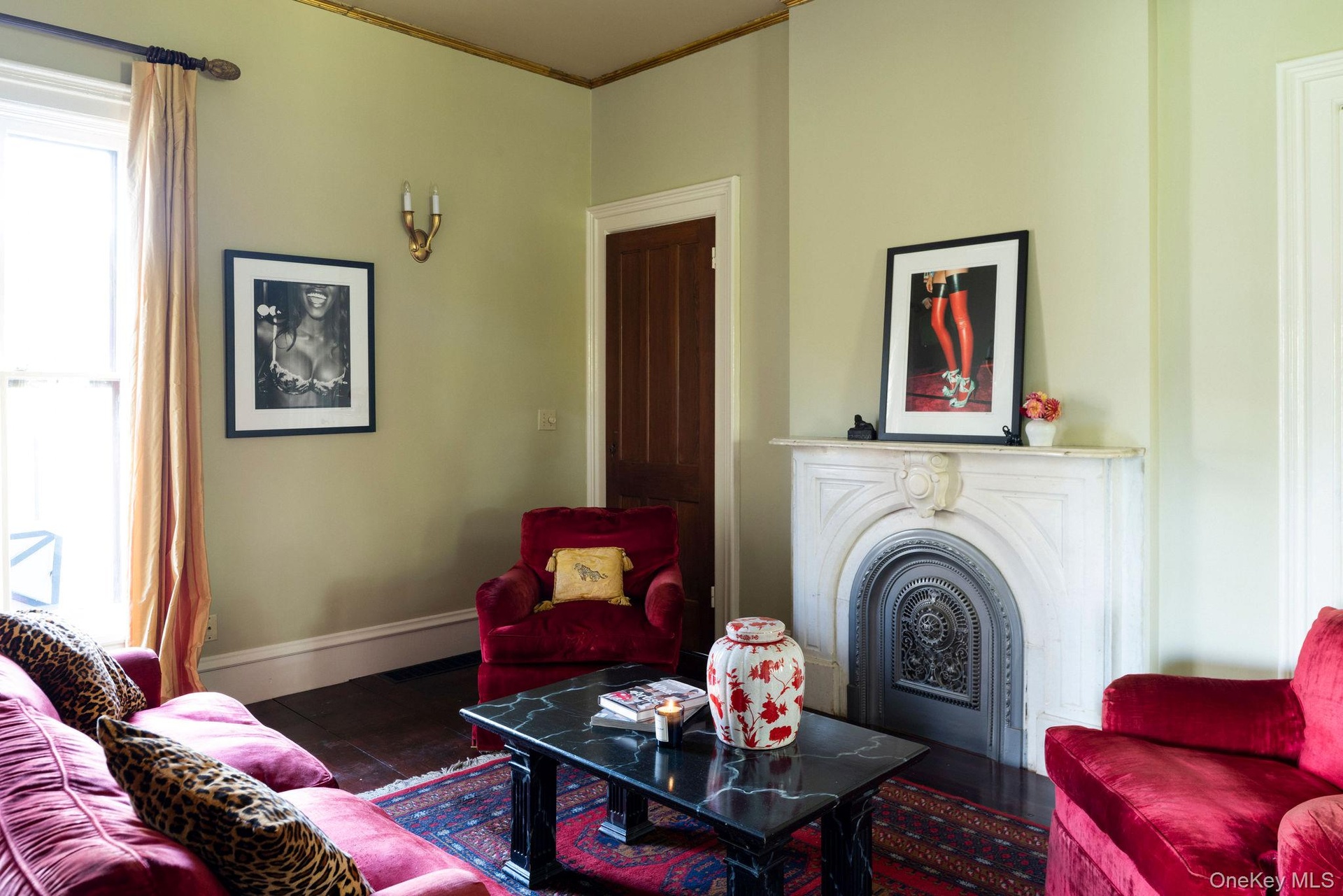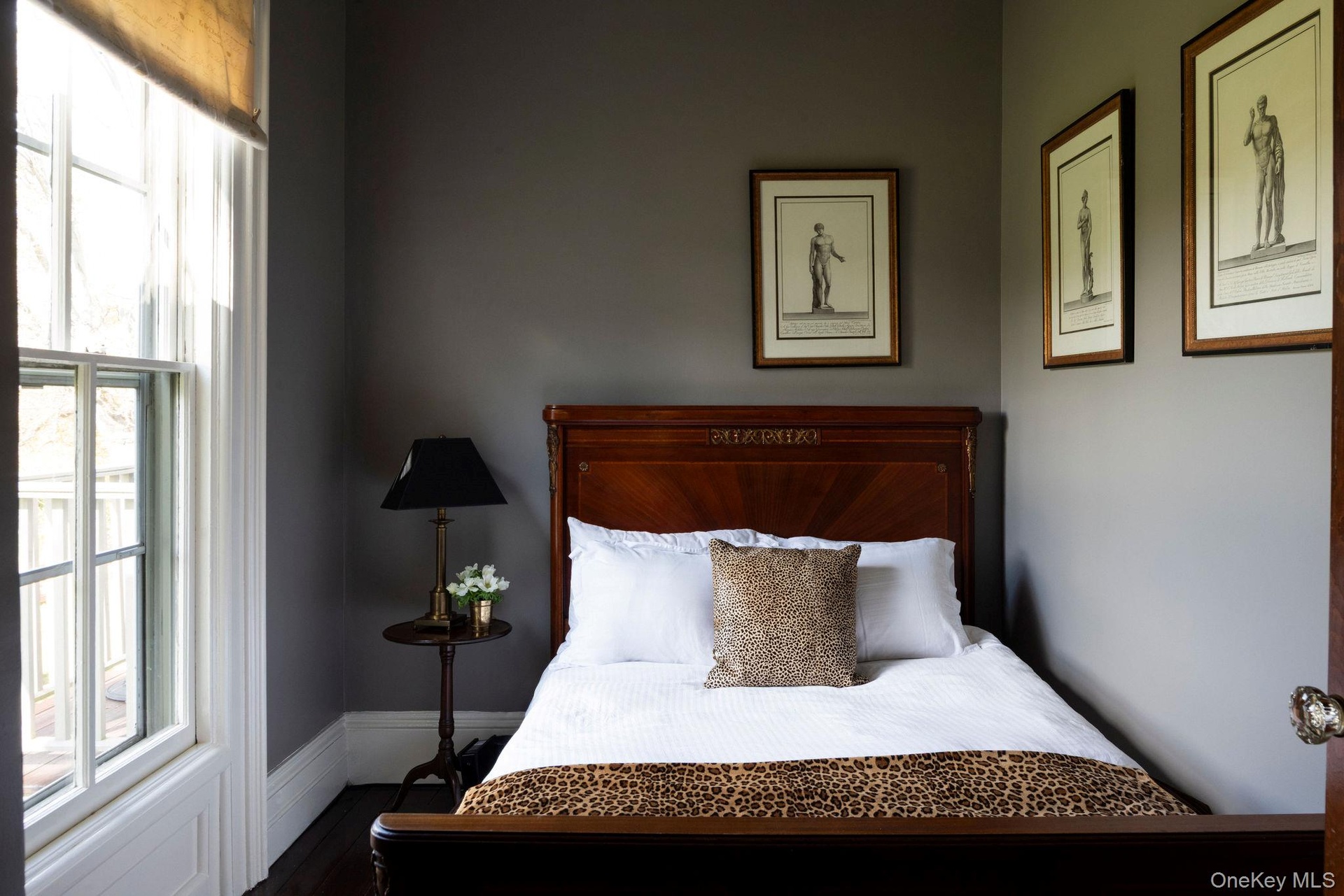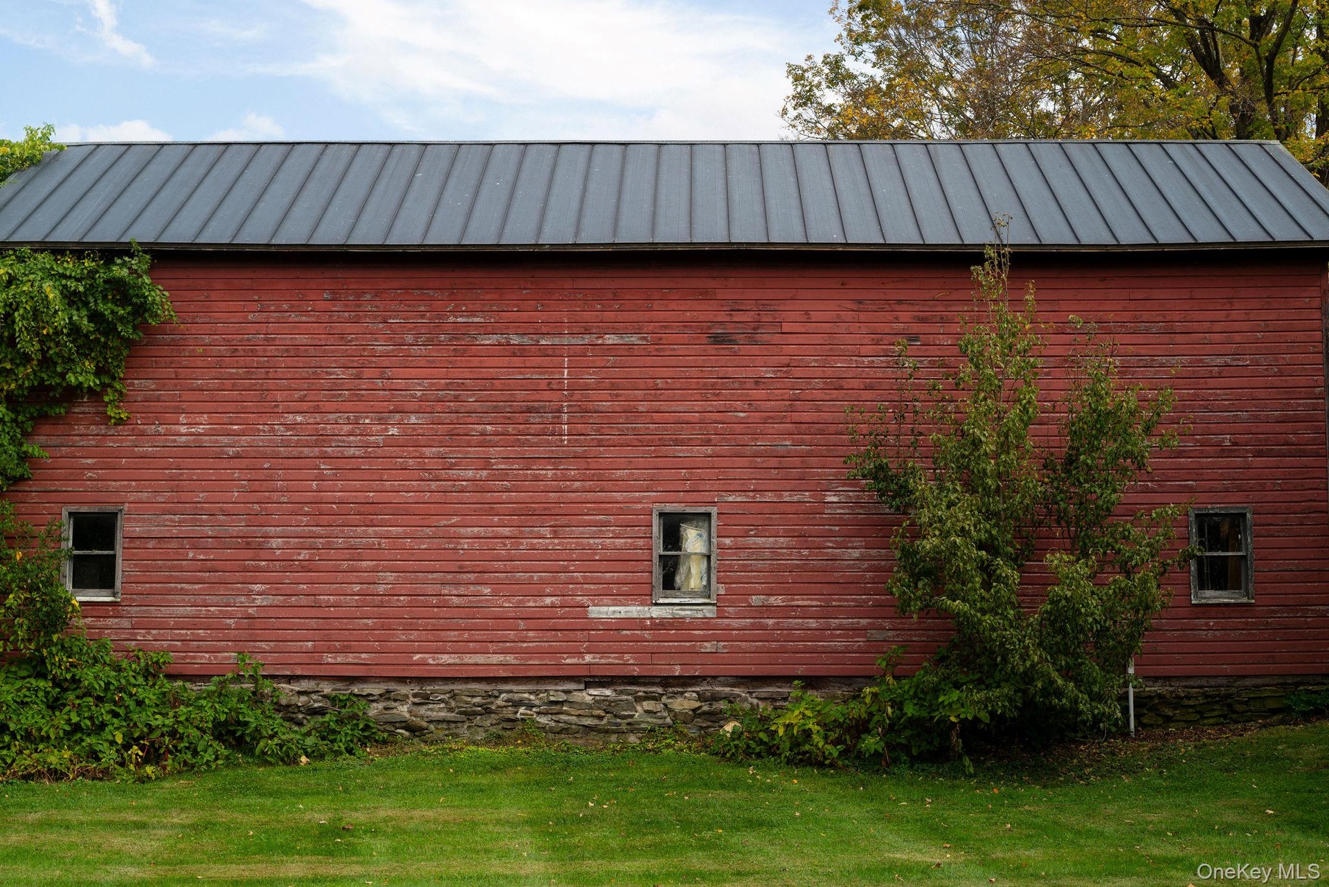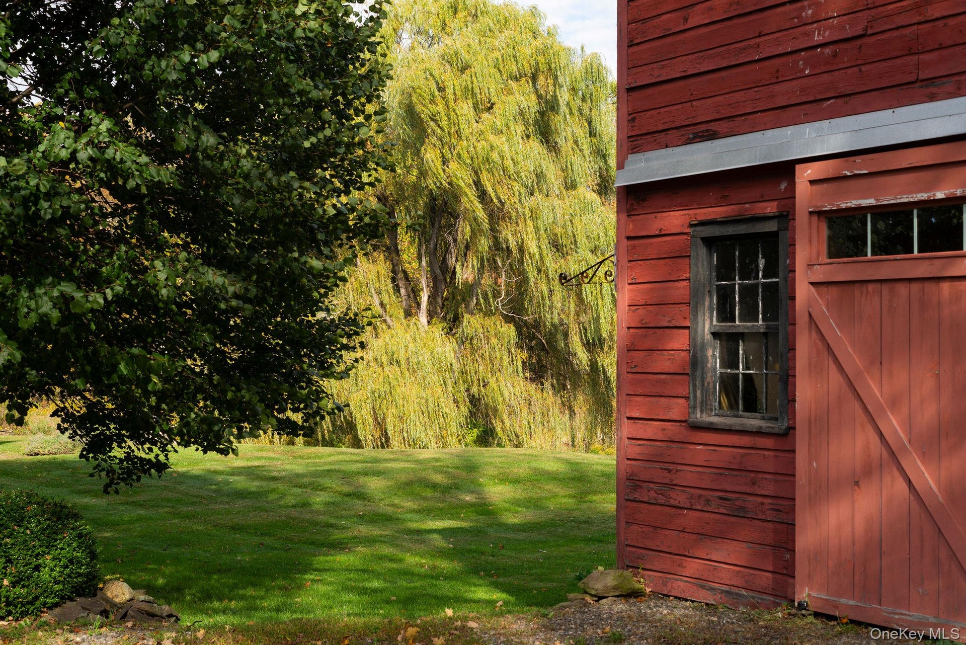 Introducing Knickerbocker Farm, an elegant circa 1790 farmhouse overlooking rolling meadows, a tranquil pond, and two antique barns, on over 12 acres, just three miles from the heart of Rhinebeck. Enter through the classic front hall with its graceful staircase and sense of history. The living, dining, and sitting rooms are graciously proportioned, each featuring 10-foot ceilings, decorative crown and base moldings, marble fireplaces, and beautifully preserved wide-board floors that flow throughout the home. Pocket doors connect the living room and sitting rooms, adding both charm and flexibility. Sunlight pours into the corner sunroom from the east and south, while the eat-in kitchen, anchored by a striking stone fireplace, offers a warm gathering space for casual dining. French doors open to a mahogany back deck, perfect for enjoying the sweeping pastoral views. A first-floor bedroom and full bath allow for guest accommodations or one-level living. Upstairs, four sunlit bedrooms include two spacious rooms, a cozy smaller bedroom, and one tucked away in its own wing, as well as two full baths. A full walk-up attic provides generous storage. The stately front porch spans the home’s facade, inviting quiet moments of relaxation and connection to the landscape. Knickerbocker Farm is both enchanting and timeless - elegantly designed yet comfortably to live in, with thoughtful details and sweet nooks throughout. A true Hudson Valley treasure.