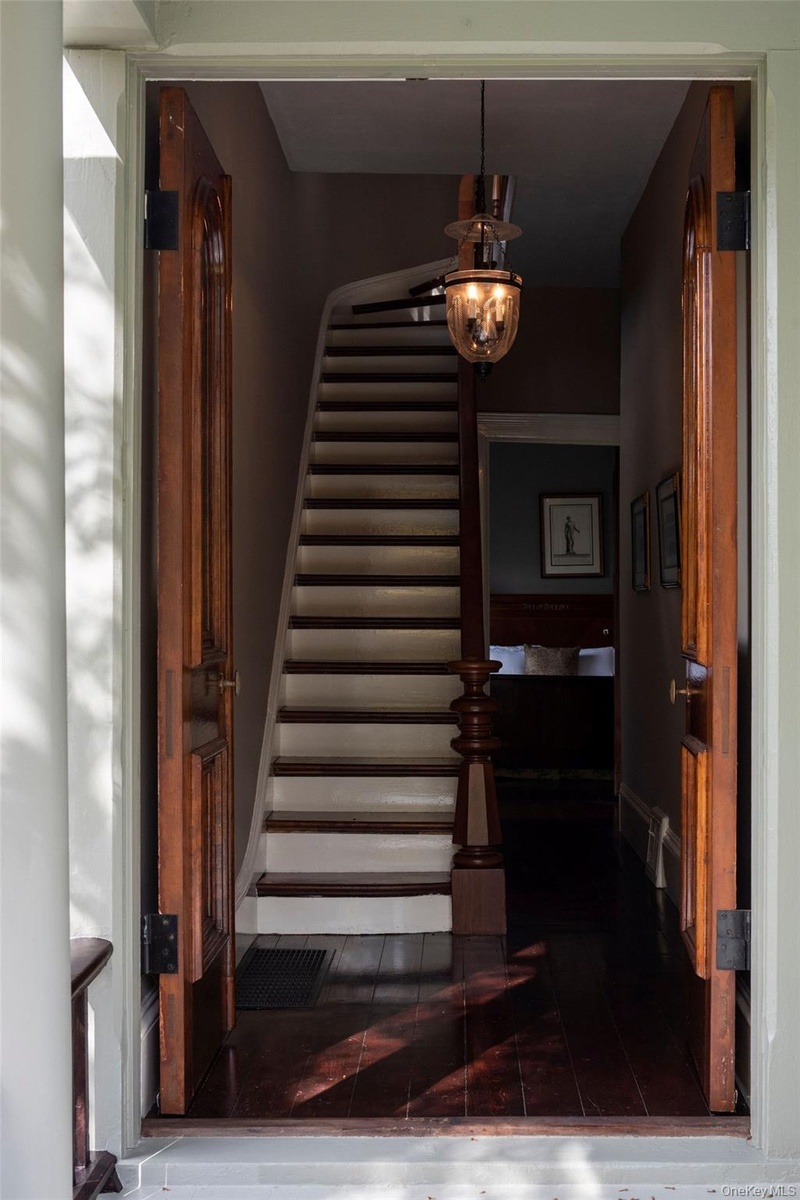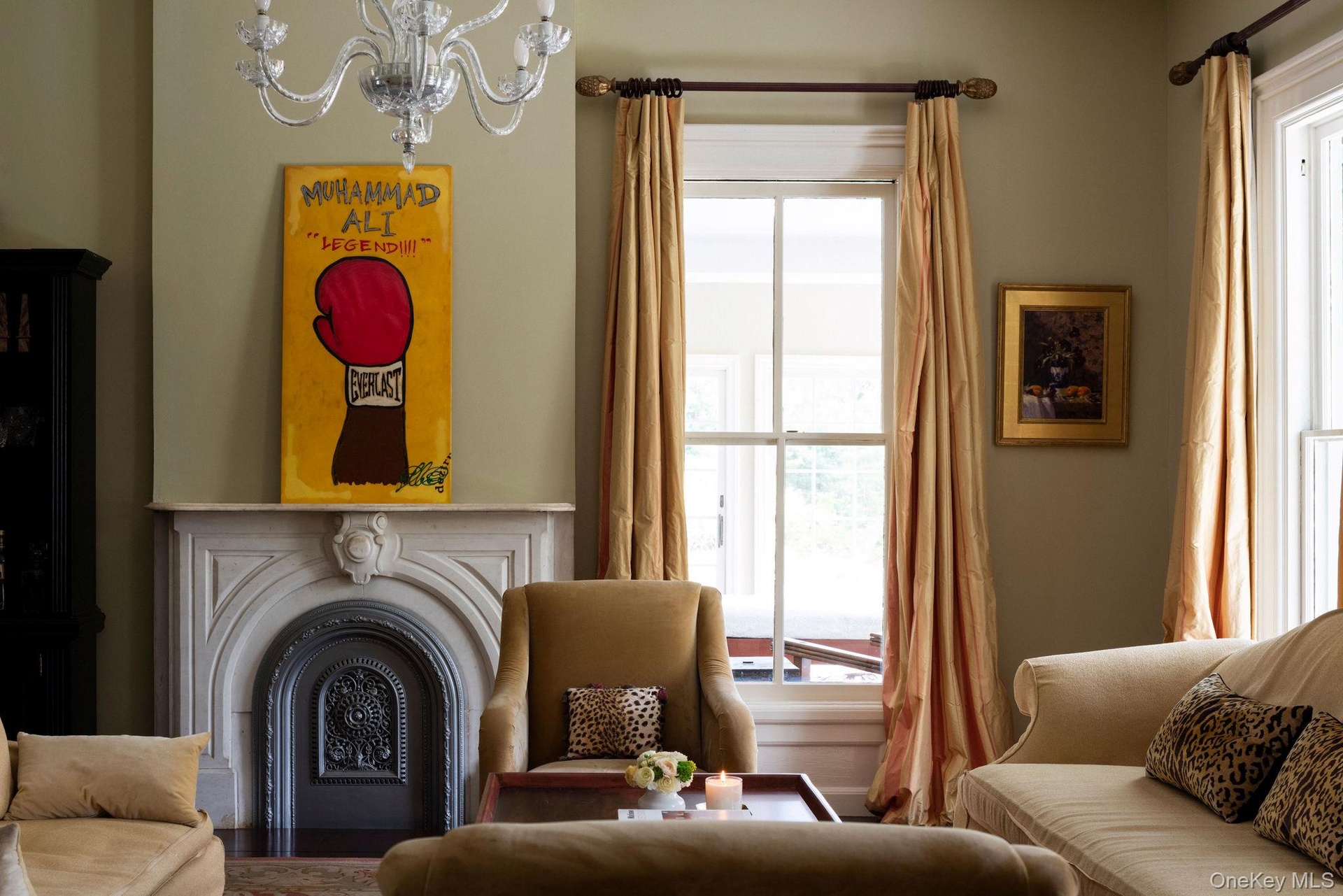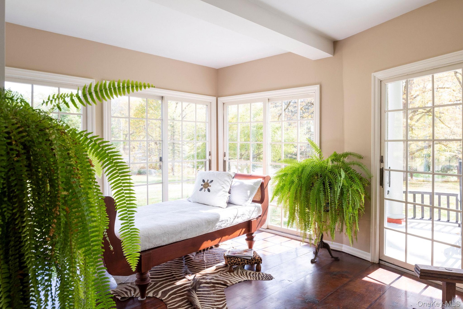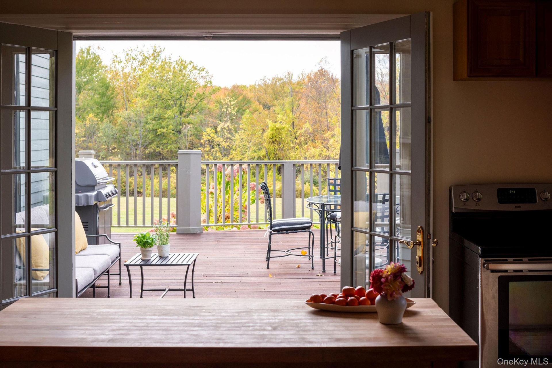 Introducing Knickerbocker Farm, an elegant circa 1790 farmhouse overlooking rolling meadows, a tranquil pond, and two antique barns, on over 12 acres, just three miles from the heart of Rhinebeck. Enter through the classic front hall with its graceful staircase and sense of history. The living, dining, and sitting rooms are graciously proportioned, each featuring 10-foot ceilings, decorative crown and base moldings, marble fireplaces, and beautifully preserved wide-board floors that flow throughout the home. Pocket doors connect the living room and sitting rooms, adding both charm and flexibility. Sunlight pours into the corner sunroom from the east and south, while the eat-in kitchen, anchored by a striking stone fireplace, offers a warm gathering space for casual dining. French doors open to a mahogany back deck, perfect for enjoying the sweeping pastoral views. A first-floor bedroom and full bath allow for guest accommodations or one-level living. Upstairs, four sunlit bedrooms include two spacious rooms, a cozy smaller bedroom, and one tucked away in its own wing, as well as two full baths. A full walk-up attic provides generous storage. The stately front porch spans the home’s facade, inviting quiet moments of relaxation and connection to the landscape. Knickerbocker Farm is both enchanting and timeless - elegantly designed yet comfortably to live in, with thoughtful details and sweet nooks throughout. A true Hudson Valley treasure.