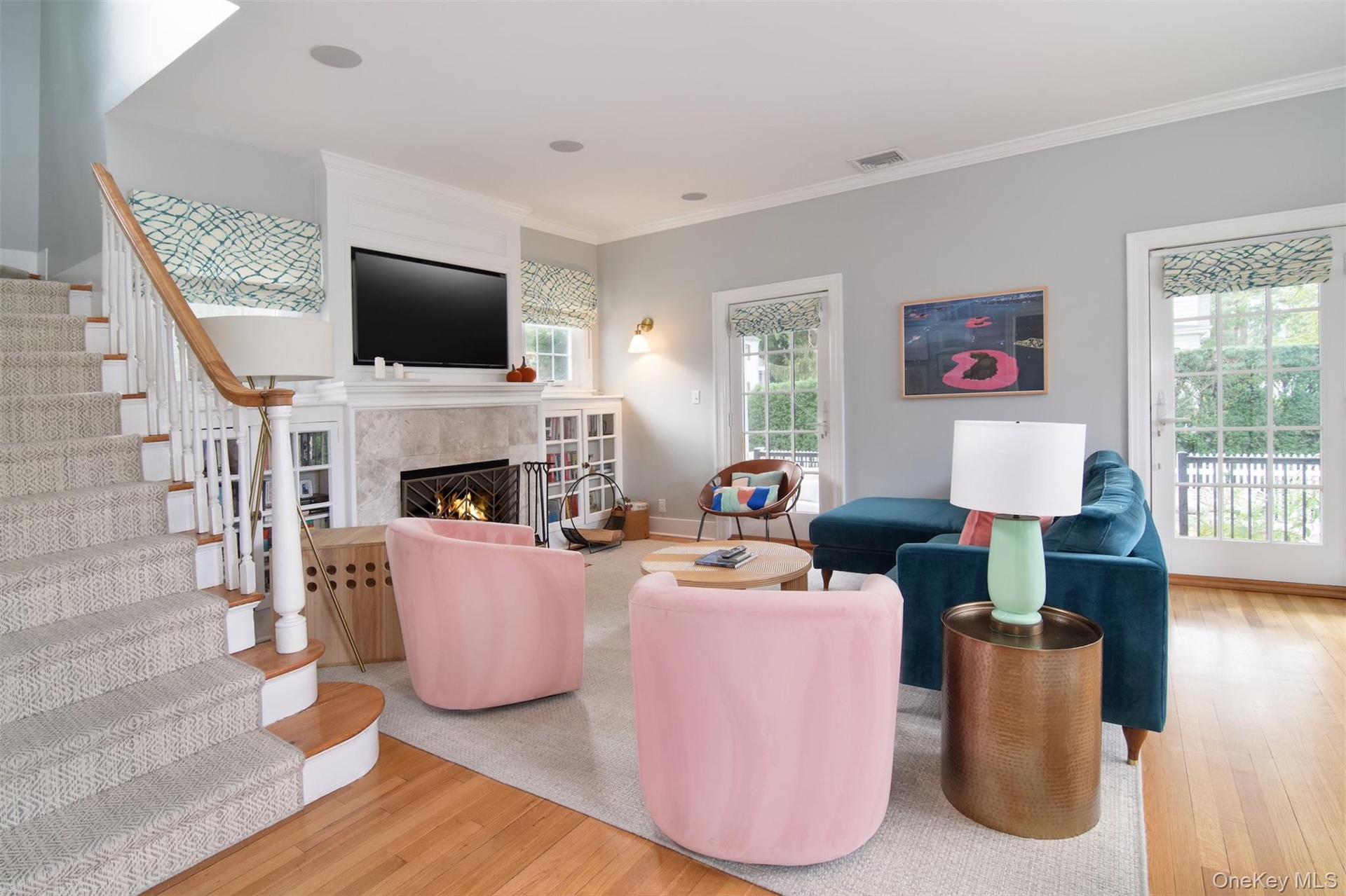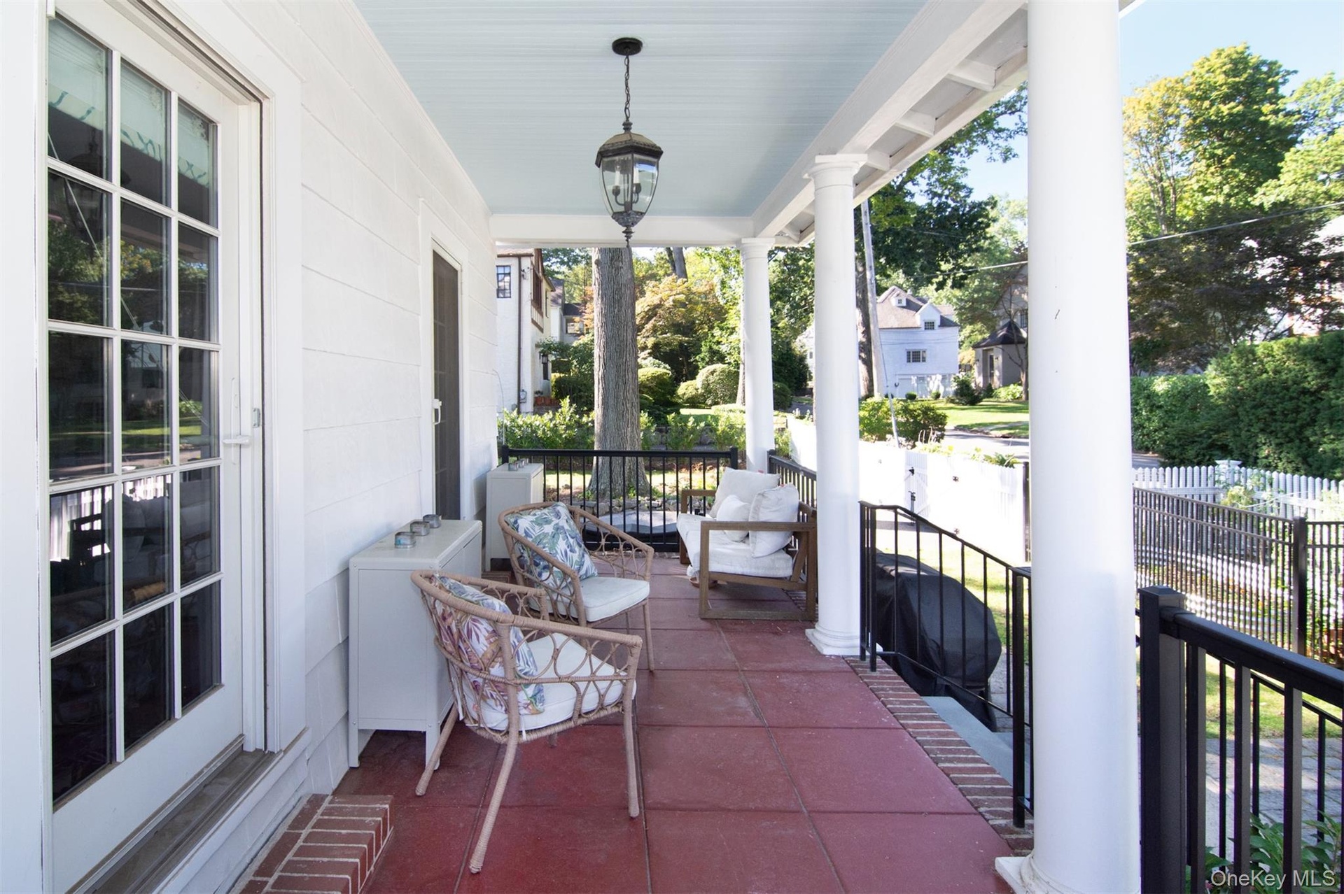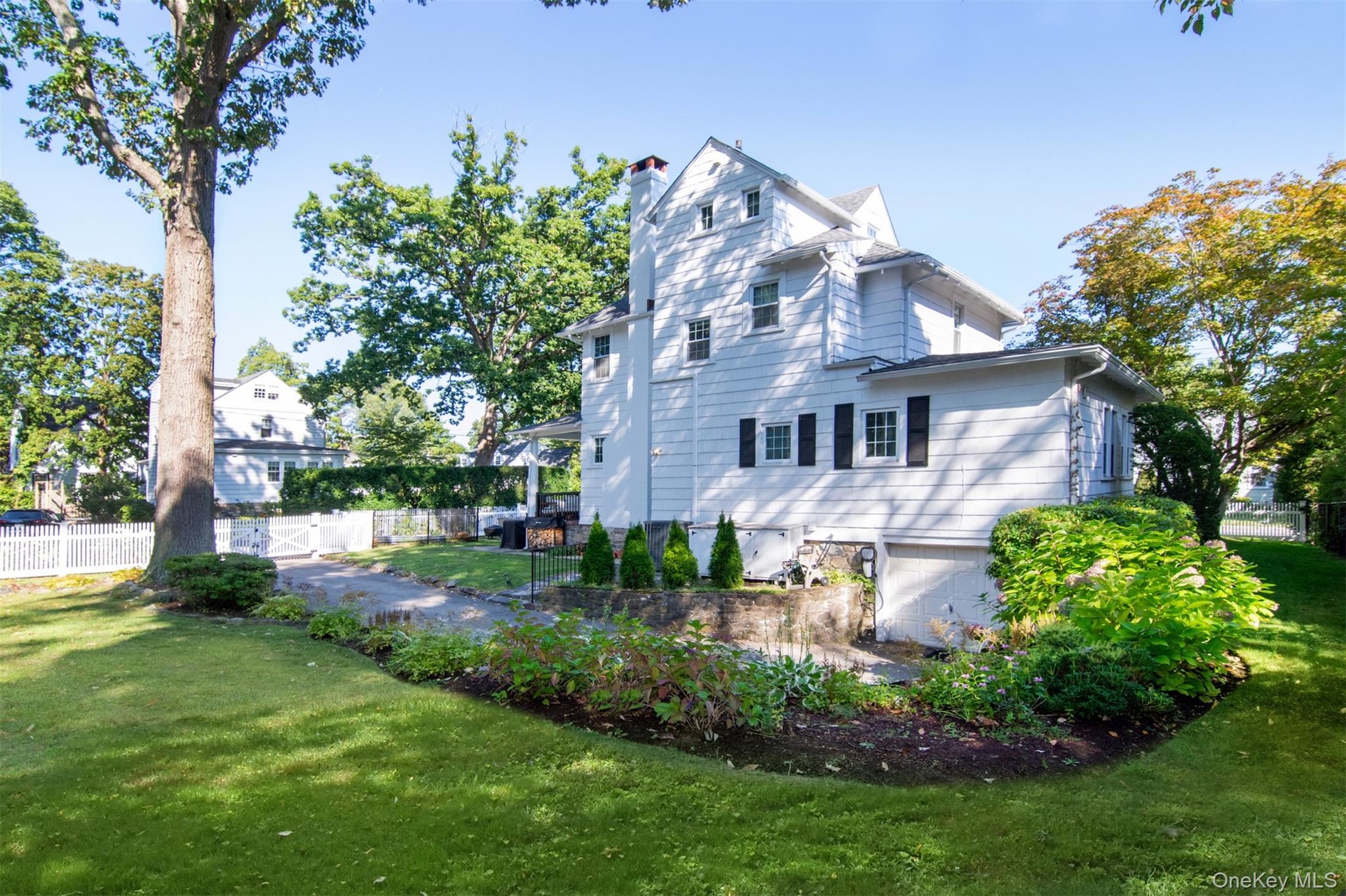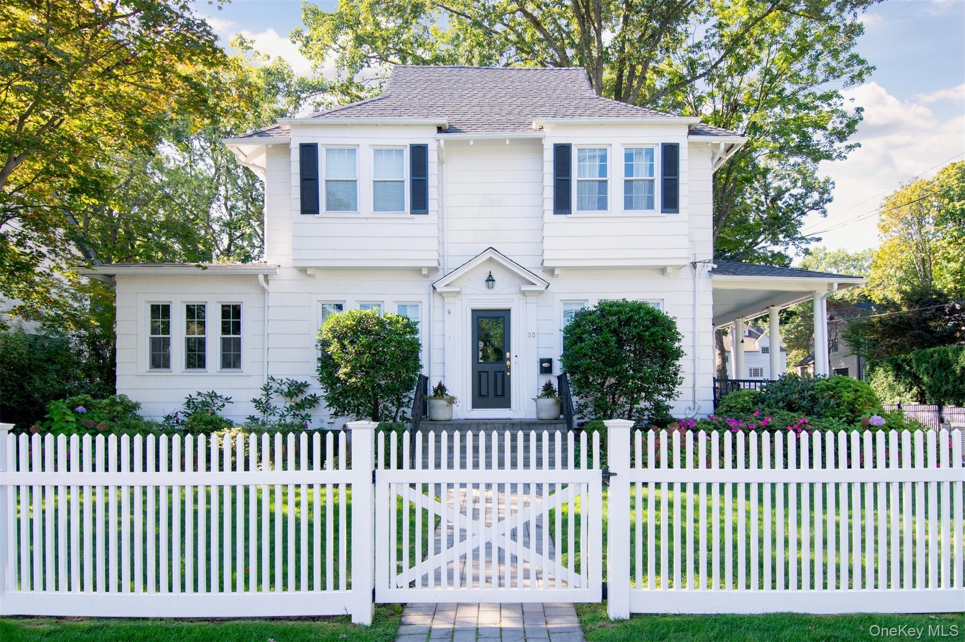 A movie set setting! This stunning white Colonial sits on beautiful corner lot fenced in with white picket fencing and new landscaping. The charming stone patio makes for a tranquil oasis for all to enjoy. This immaculate home features three bedrooms, two full baths and two half baths. The well appointed chef's kitchen boasts a Viking range, gorgeous Minuet Quartzite countertops & elegant backsplash. It also includes island seating, beverage refrigerator, ice maker and white cabinetry-perfect for entertaining. The adjoining family room is bright and airy, seamlessly connected to the kitchen for easy everyday living. The home's living room has new custom cabinetry and a work from home alcove. Two French doors lead to the covered patio-ideal for inside/outside living at its finest! The formal dining room is the perfect space for gatherings for a crowd. Upstairs, the second floor offers a spacious primary bedroom with custom cabinetry along with two additional bedrooms. Each features with custom fitted closets. The third floor provides versatile bonus space and includes a beautifully appointed bathroom with a steam shower. The lower level is a great space for an exercise gym or a playroom! Located within walking distance of all that Bronxville Village has to offer and just 0.9 mile for the Bronxville Metro-North station, this home is the perfect blend of elegance, comfort and convenience.