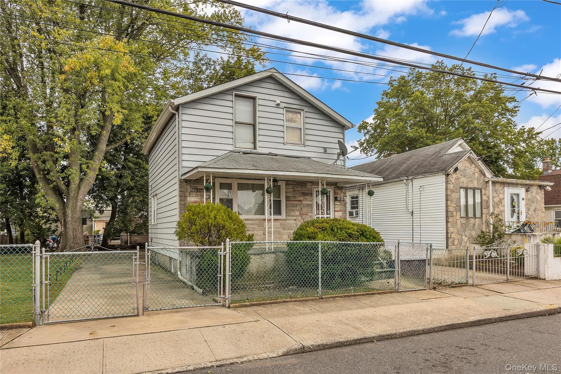 This 3-bed, 2-bath Colonial has great curb appeal but will require some TLC.1st Floor full bath, Formal dining room, Kitchen with potential for a large pantry (former laundry location), Inviting front porch, level lot with ample off-street parking, side entrance from driveway and spacious, well-maintained basement storage with interior and exterior access. Fenced yard. Furnace (2014), Roof (2008). Convenient proximity to the Cross Island Parkway, Hempstead Turnpike, UBS Arena Elmont and a short distance to Belmont Park Village.