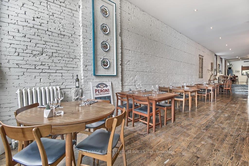 Attention Investors & Business Owners! Rare standalone 2-storey building in trendy, high-traffic Junction area. Currently, restaurant main floor pays $9,000 per month + T.M.I. Upper 2-bedroom pays $2,700. Large 24.25 x 120 ft lot! Approx. 5,250 sqft of finished area - 1,250 sqft res., 4,000 sqft com. (2,000 main flr + 2,000 bsmt). Stunning 3-panel window façade, 12 ft ceilings, and exposed brick & hardwood floors on huge O/C main floor! Fancy, upscale loft feel! Large 2-bdrm 2nd-flr apartment w/O/C living, dining & kitchen. 10 ft skylight in living room. Restaurant w/two 4-pc spa-like bathrooms & tons of storage space! Electrical, plumbing & windows 2013! Combo ductless heat & cool units w/exposed ducts for A/C & heat, and supplementary radiant heating! Business not for sale. Do not go direct. Call L/A before showing.