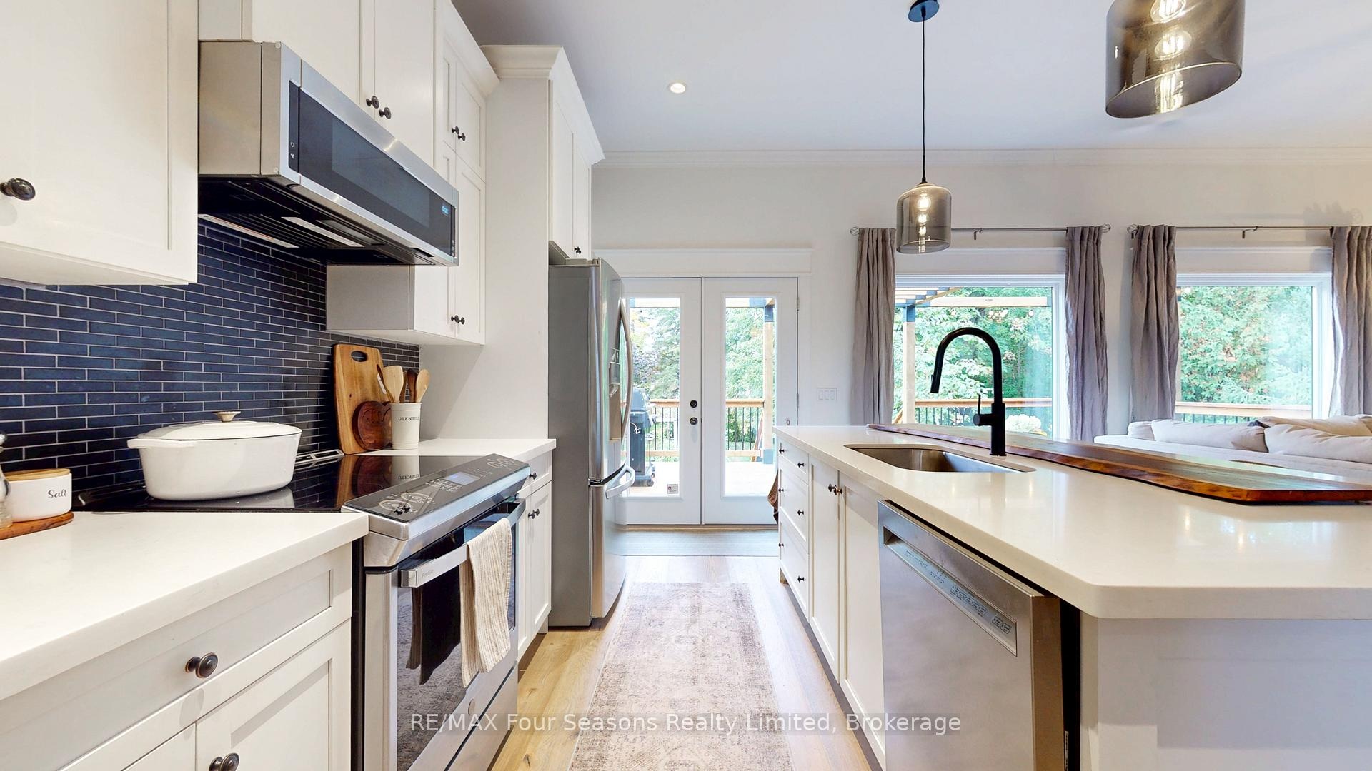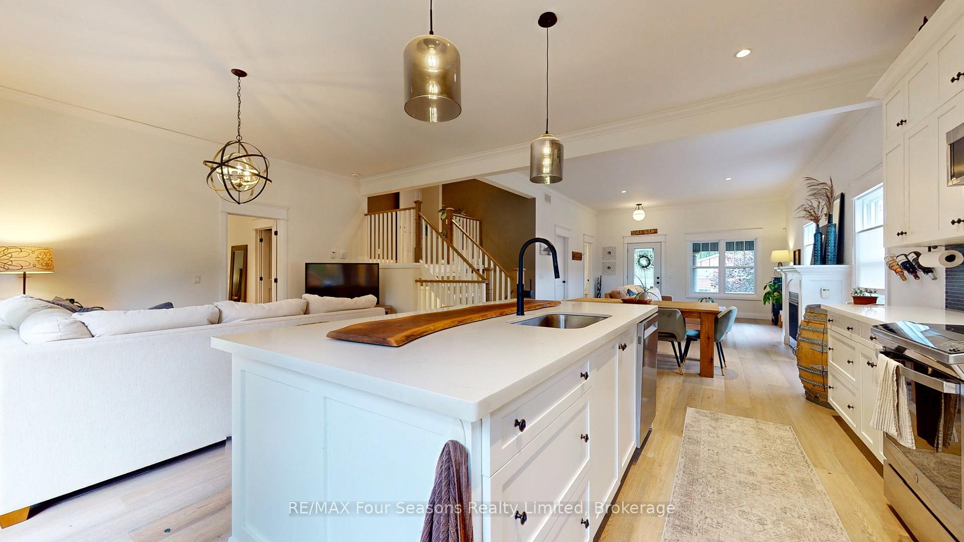 Welcome to 328 Walnut Street, a beautifully built 4-bedroom, 4-bath home constructed in 2018 by a trusted local builder. Perfectly situated on a mature, tree-lined street just steps from downtown Collingwood, this property offers the ideal blend of comfort, style, and location. Step inside to discover a bright and airy open-concept main floor featuring 10-foot vaulted ceilings, engineered hardwood flooring, and a cozy gas fireplace. The modern kitchen showcases quartz countertops, quality cabinetry, and an ideal layout for entertaining. The main floor primary suite offers comfort and convenience, complete with a stylish ensuite bath. Upstairs, a versatile loft bedroom with a 3-piece bath makes the perfect guest suite, office, or games room. The fully finished lower level adds even more living space, featuring a family room with walk-out to the private backyard, two additional bedrooms, a full bath, and ample storage. Enjoy warm summer evenings on the spacious deck overlooking a peaceful, treed yard-a rare find so close to town. Located within walking distance to boutiques, restaurants, schools, and parks, and just minutes to ski hills, golf courses, trails, and Georgian Bay, this home offers the best of Collingwood living-comfort, quality, and convenience. Experience modern living in a mature, sought-after neighbourhood. 328 Walnut Street is ready to welcome you home.