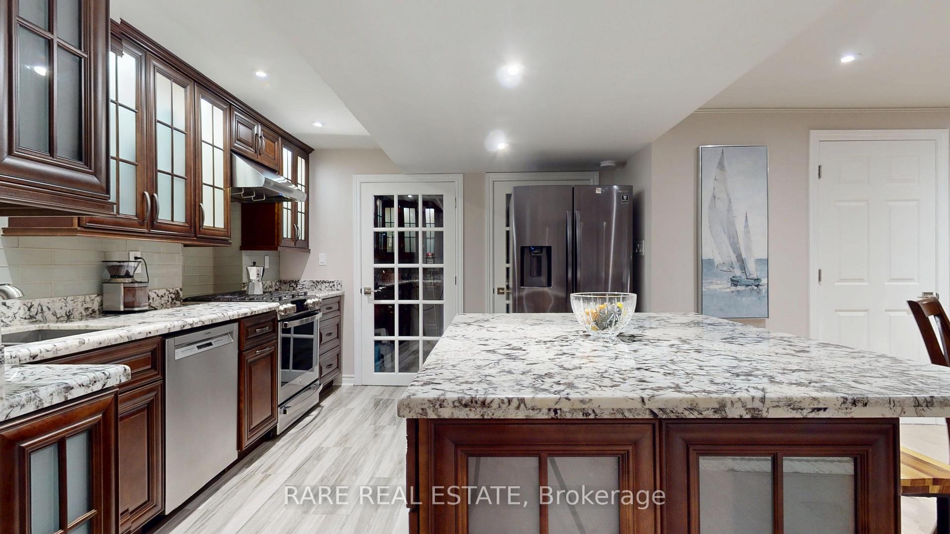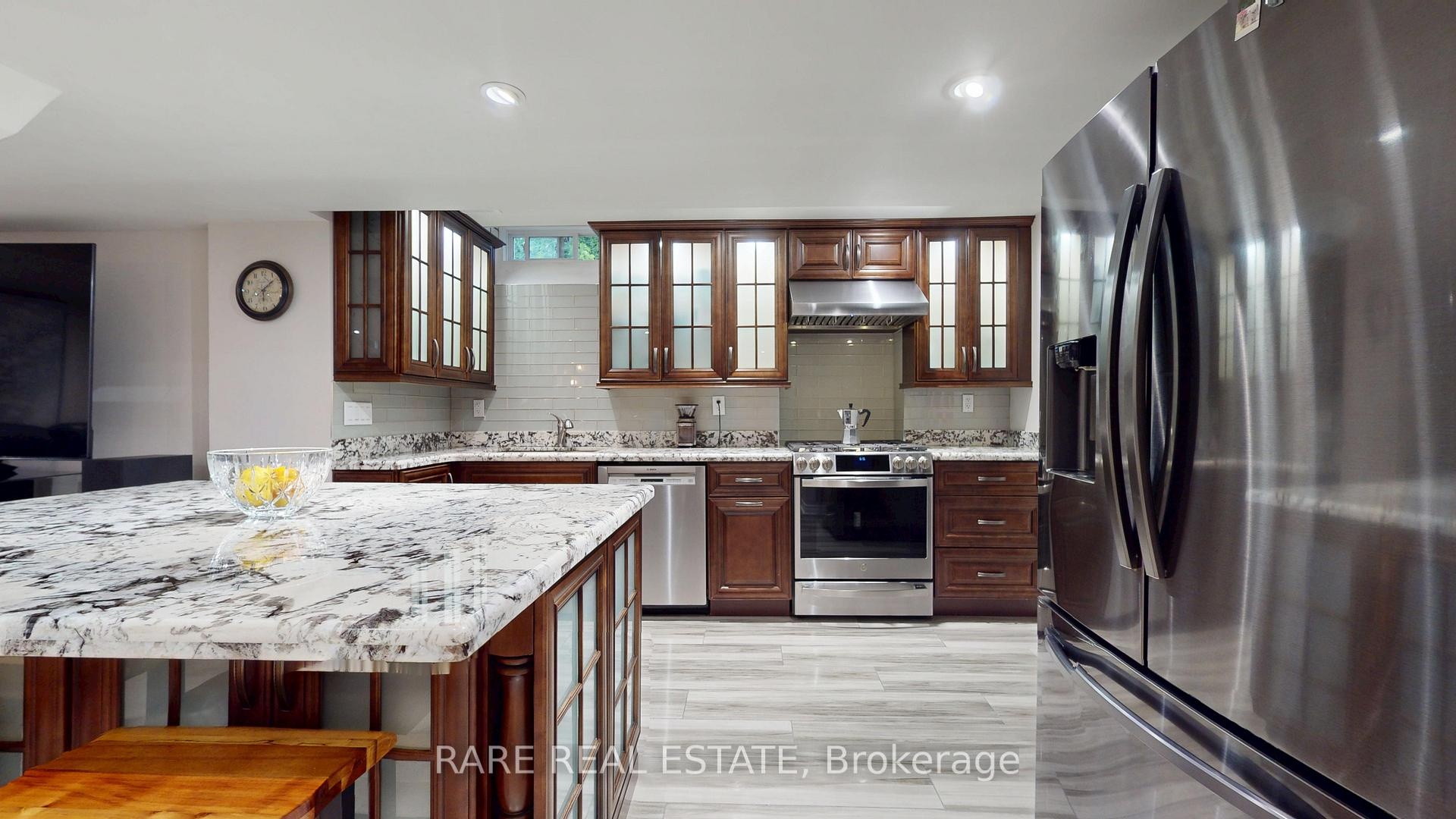 Welcome to 68 Kirkbride in Vaughan, a beautiful and spacious home offering both style and functionality. The heart of the home is the newly renovated ground-level kitchen, crafted with solid wood cabinetry and Macaubus Fantasy Quartzite countertops, offering extensive storage and a stunning modern aesthetic. Upstairs, generous living spaces are filled with natural light, with both washrooms featuring the same luxurious quartzite counters. The home also boasts a fully finished basement apartment with a separate entrance, complete with its own solid wood kitchen and gas stove-perfect for extended family, a nanny suite, or rental income. Outdoors, the property shines with mature evergreens, extensive landscaping, and natural stone steps leading to the entrance, as well as a stone patio at the back for relaxing or entertaining. Enhanced privacy is assured, with no home facing the backyard. The house sits on a very quiet crescent, with a huge driveway (ample space for multiple vehicles) and two elementary schools conveniently located at the corner of the street. Practical updates include majority of windows (2025), and a brand-new HVAC and furnace (Jan 2025), ensuring peace of mind for years to come. Other upgrades include CCTV, Tesla charger & a sprinkler system. This prime Vaughan location offers proximity to Cortellucci Vaughan Hospital, Vaughan Mills Mall, Canada's Wonderland, shopping plazas, restaurants, high schools, and quick access to Highway 400, all just minutes away. With its thoughtful updates, premium finishes, and versatile layout, 68 Kirkbride is a rare opportunity to own a move-in ready home that balances elegance, comfort, and convenience.