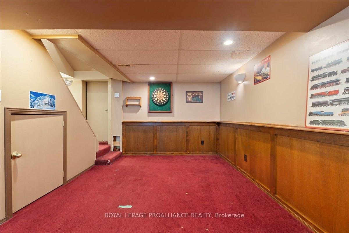 Prime bright cheery 2 storey family home with lovely front veranda that enters to centre hall plan, plus 2nd front entrance steps into oversize mudroom with mega closets and door to garage or to back yard. Leading off kitchen, is the long large combo dining and living area with closed fireplace that would fit gas insert nicely. Main floor 2 pc bath plus family room/den. Upstairs offer 4 bedrooms and 4pc bath. Lower level has large family room, laundry and utility room plus cold storage. Nice private back yard and fully fenced with 2 gates, large stamped concrete patio for enjoying some family time. 2 car garage, gas furnace. Great quiet location close to schools and all amenities. Needs a few updates