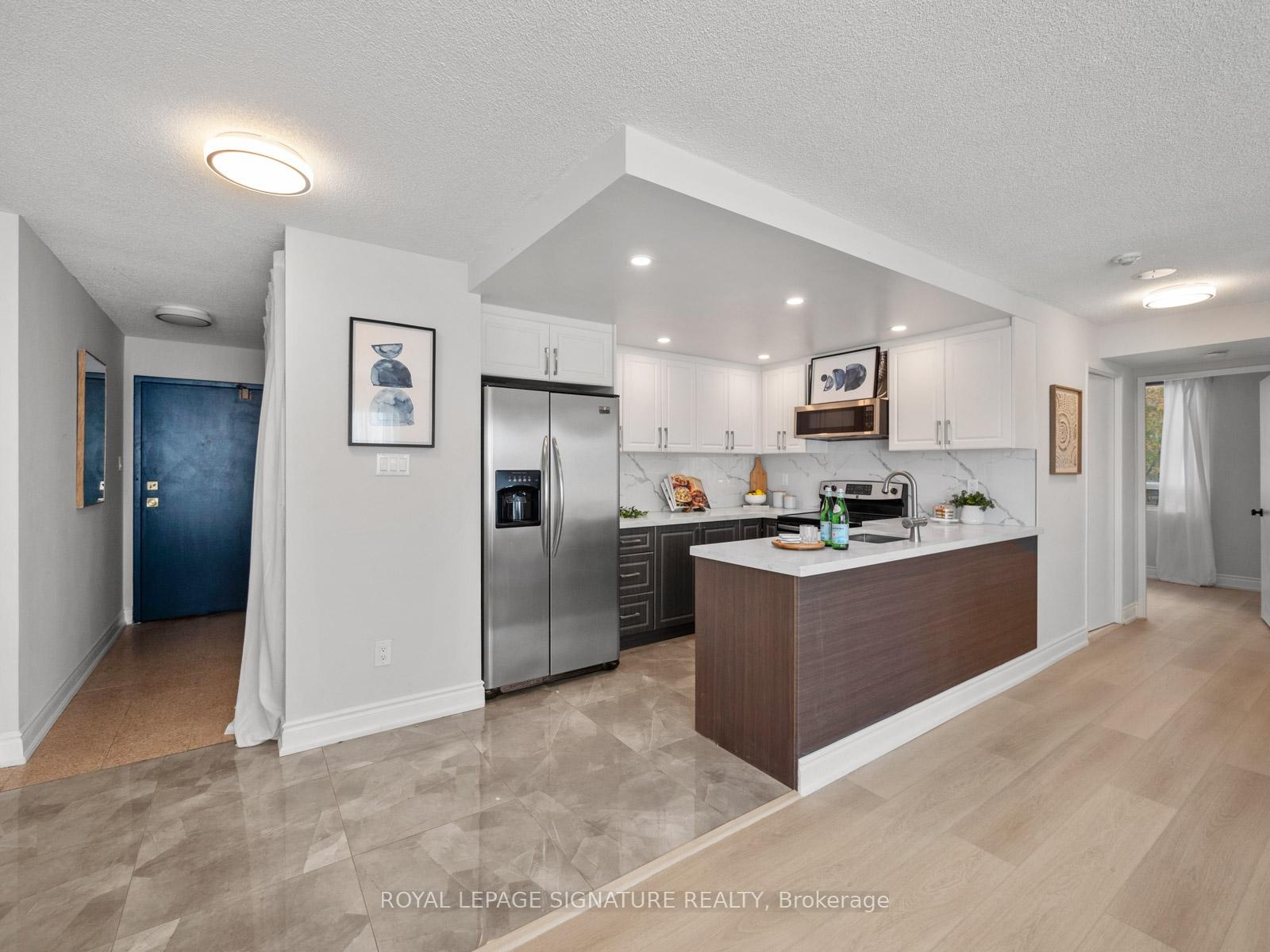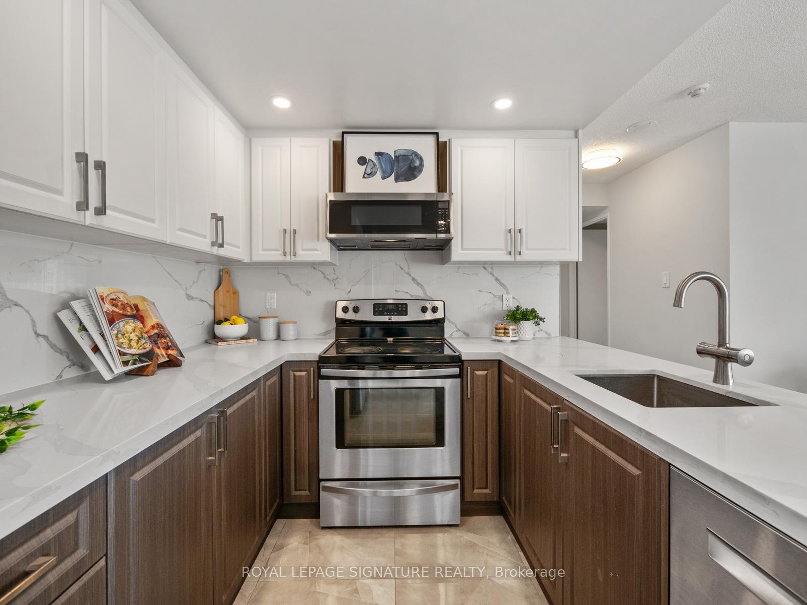 **Open House Sunday, Dec 14th, 12 pm-3 pm - Each open house guest will be entered into a draw to win a $250 gift card of their choice (restrictions apply) - See you Sunday!** Location is everything at Mapledale! Welcome to this spacious, sun-filled 3-bedroom, 2-bath condo perfectly situated across from U of T Scarborough and Centennial College. Enjoy a renovated kitchen with quartz counters and stainless steel appliances, an open-concept living space, fresh paint, brand-new luxury vinyl flooring throughout, modern lighting, and an en-suite laundry. Just steps to Pan Am Sports Centre, Food Basics, Dollarama, Tim Hortons, and Morningside Park trails, no car needed - but we have a spot in case you need one:) Also includes 2 Lockers!! Mapledale offers 24-hour concierge/Security, underground parking, free visitor parking, indoor pool, sauna, tennis court, and games room. Move-in ready and ideal for students, first-time buyers, or downsizers, don't miss this opportunity!