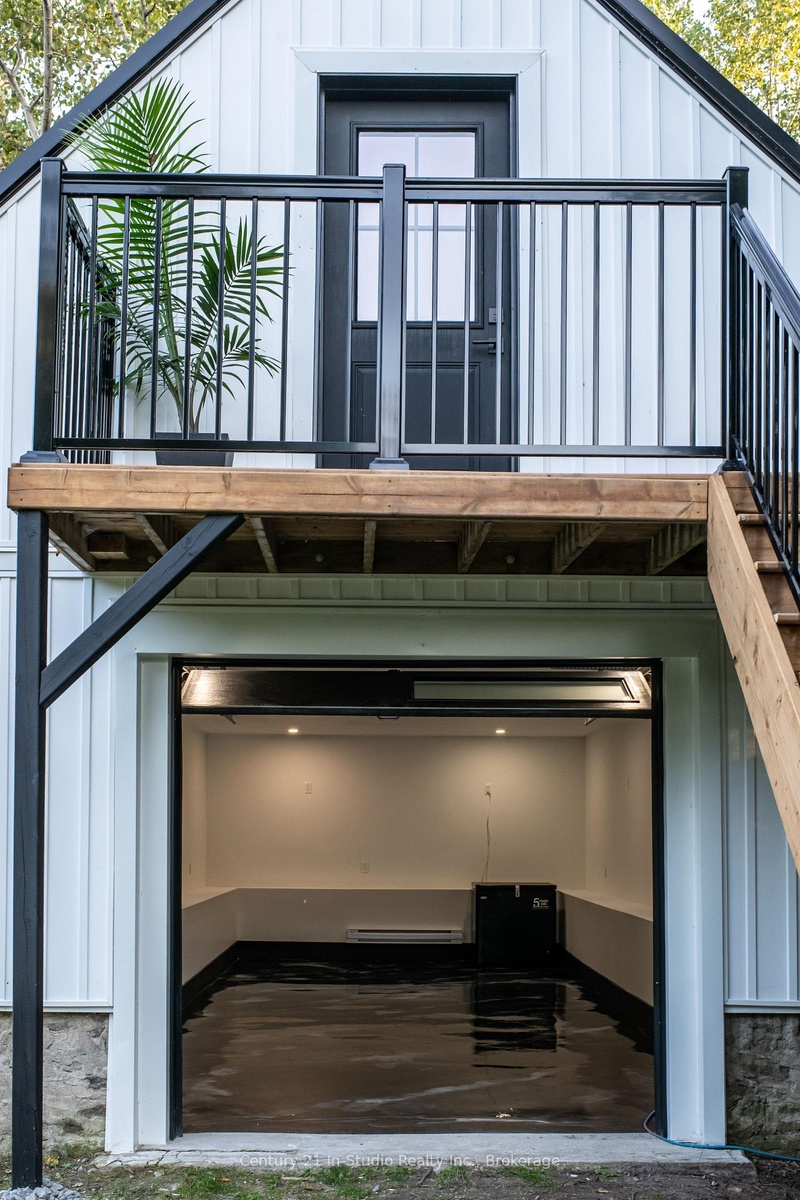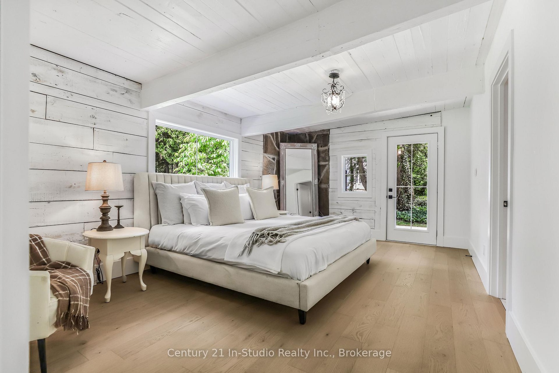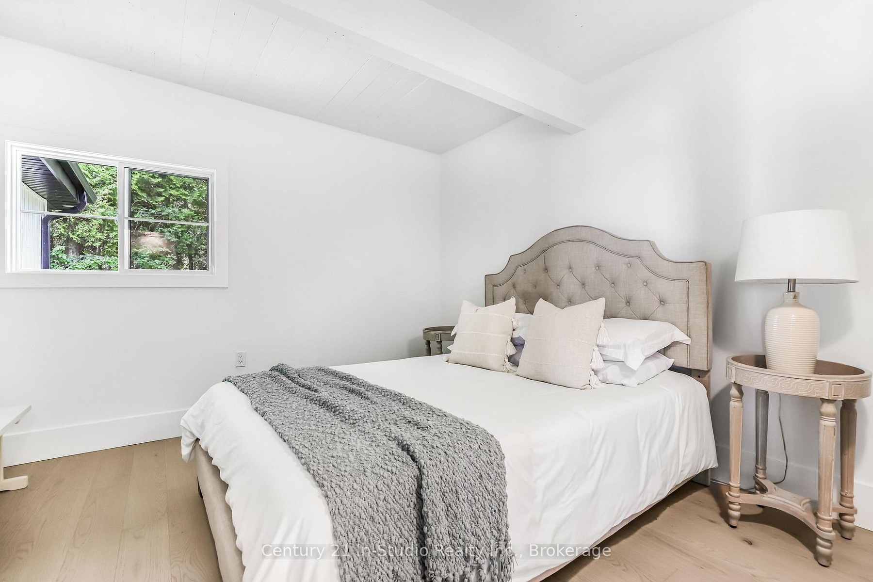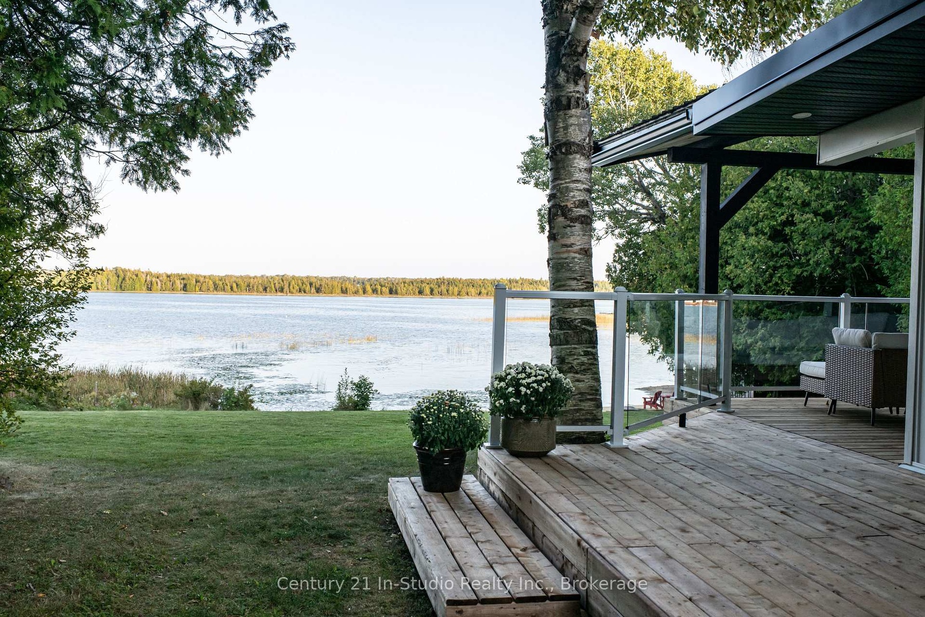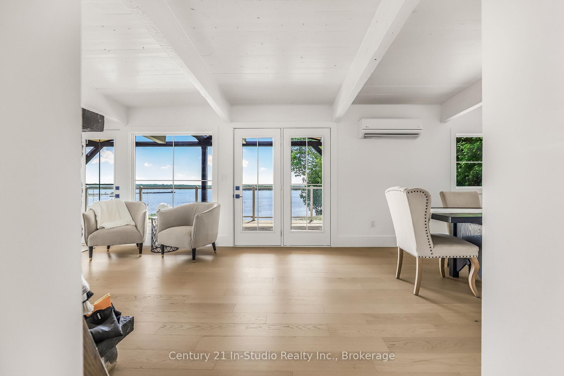 Fully updated and furnished luxury retreat on the shores of Stokes Bay. Set on 1.3 acres with 200 feet of private, deeded waterfront, this property offers two docks, two insulated and heated garages with lofts, and the option to sever into two 100 ft shoreline lots. All studies and assessments for severance are complete. The property was extensively renovated in 2024, including new insulation, electrical, plumbing, roof, windows, and doors. The interior features white oak hardwood flooring, an open-concept kitchen and living area with panoramic lake views, and walkout access to a covered deck ideal for entertaining.The primary suite includes deck access, a double steam shower ensuite, and a custom walk-in closet with Carrara marble finishes. Additional bedrooms and bathroom are well designed for family and guests, all updated with modern fixtures and finishes. Thoughtfully preserved original details stone accents and whitewashed wood beams add stunning charm. Two detached heated garages (24' x 14' and 27' x 13') feature epoxy marble floors and lofts for extra living or storage space - ideal for guest accommodation, office use, or hobby areas. Outdoors, enjoy an expansive private yard, new hot tub, and beautiful Lake Huron views. The double-lot configuration offers future investment potential for development, resale, or a multi-family retreat. This property combines modern construction, privacy, and waterfront lifestyle - ready for year-round living or as a high-end seasonal escape!