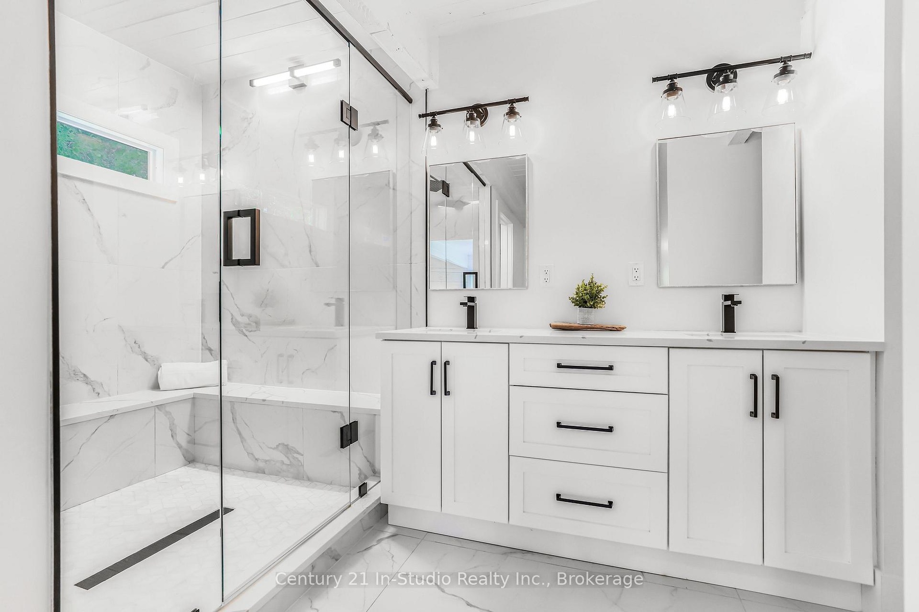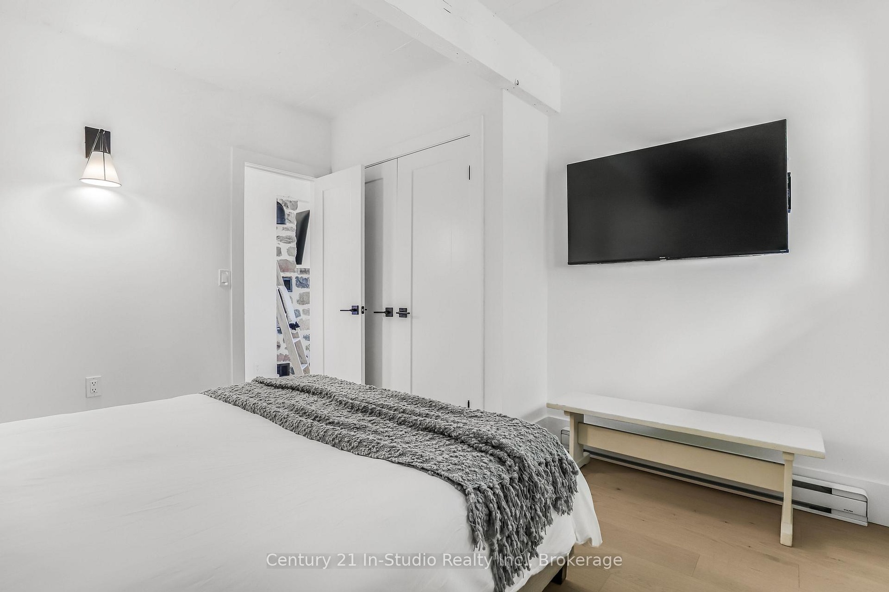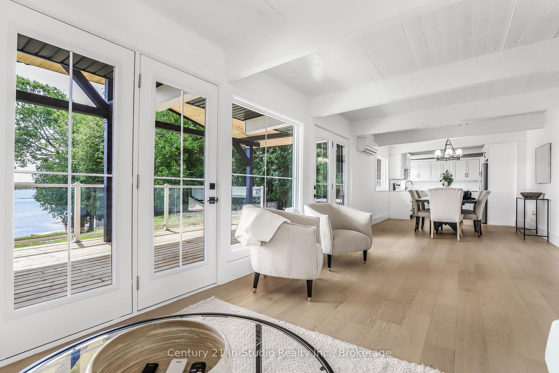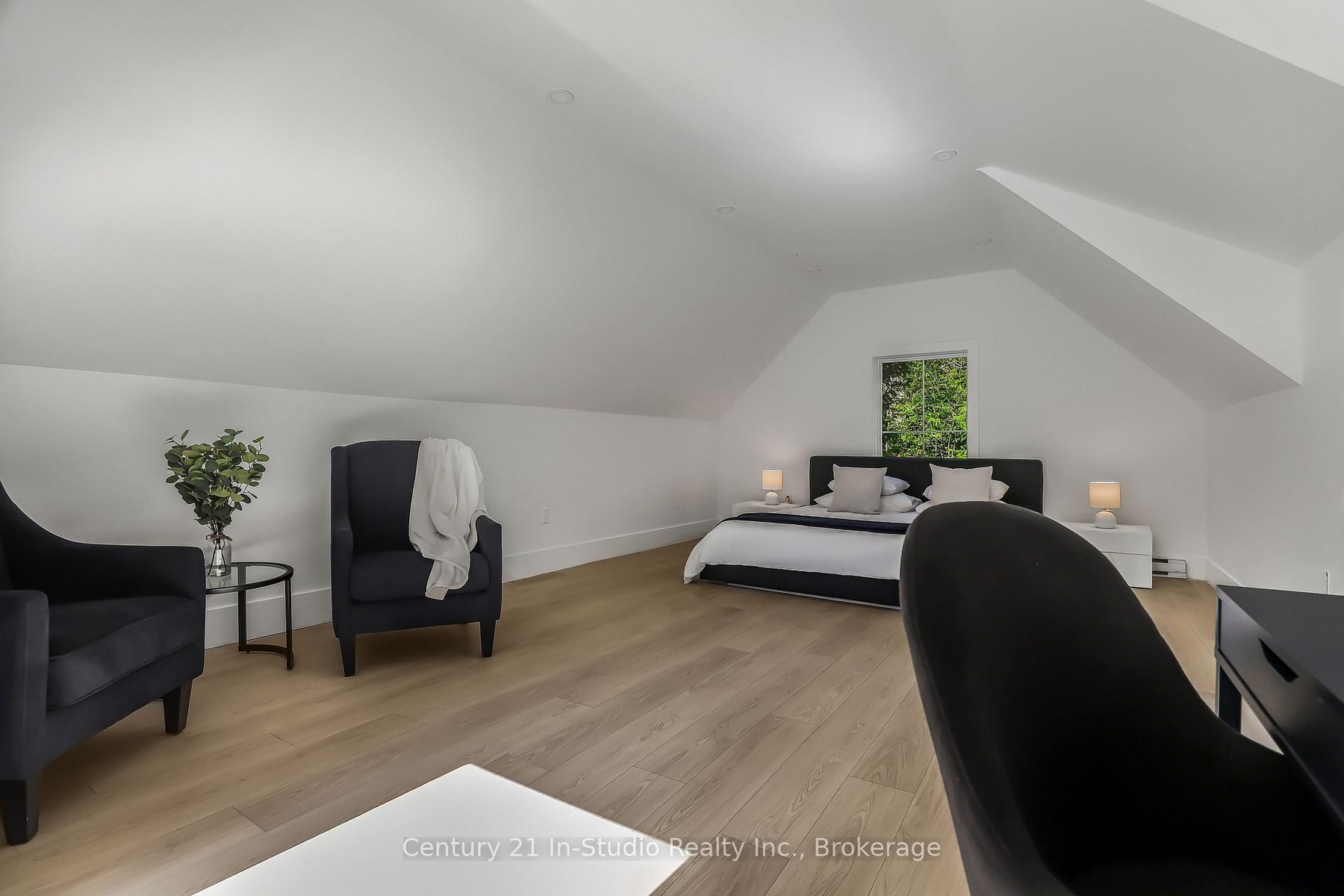 Fully updated and furnished luxury retreat on the shores of Stokes Bay. Set on 1.3 acres with 200 feet of private, deeded waterfront, this property offers two docks, two insulated and heated garages with lofts, and the option to sever into two 100 ft shoreline lots. All studies and assessments for severance are complete. The property was extensively renovated in 2024, including new insulation, electrical, plumbing, roof, windows, and doors. The interior features white oak hardwood flooring, an open-concept kitchen and living area with panoramic lake views, and walkout access to a covered deck ideal for entertaining.The primary suite includes deck access, a double steam shower ensuite, and a custom walk-in closet with Carrara marble finishes. Additional bedrooms and bathroom are well designed for family and guests, all updated with modern fixtures and finishes. Thoughtfully preserved original details stone accents and whitewashed wood beams add stunning charm. Two detached heated garages (24' x 14' and 27' x 13') feature epoxy marble floors and lofts for extra living or storage space - ideal for guest accommodation, office use, or hobby areas. Outdoors, enjoy an expansive private yard, new hot tub, and beautiful Lake Huron views. The double-lot configuration offers future investment potential for development, resale, or a multi-family retreat. This property combines modern construction, privacy, and waterfront lifestyle - ready for year-round living or as a high-end seasonal escape!