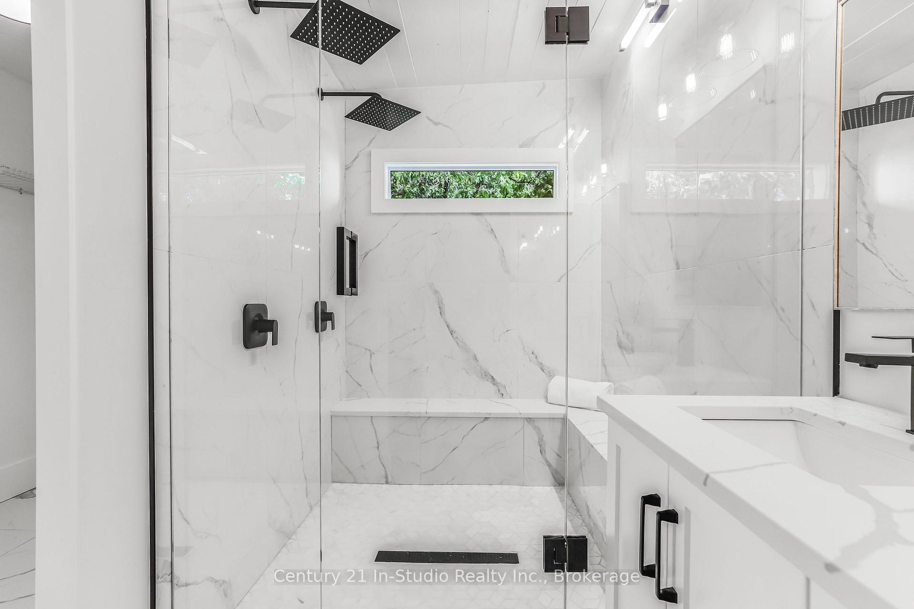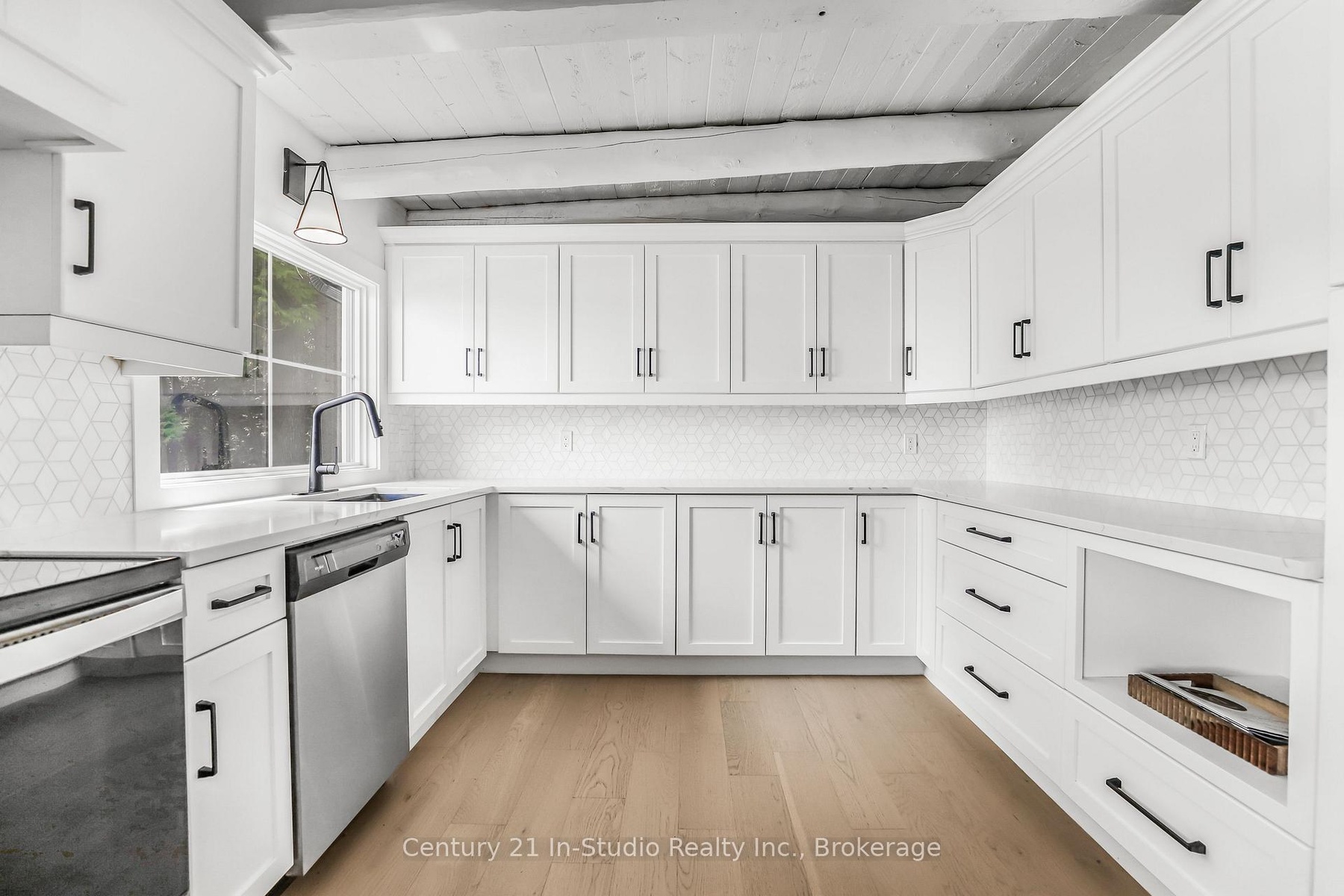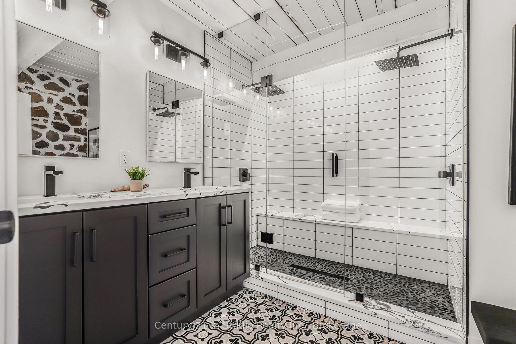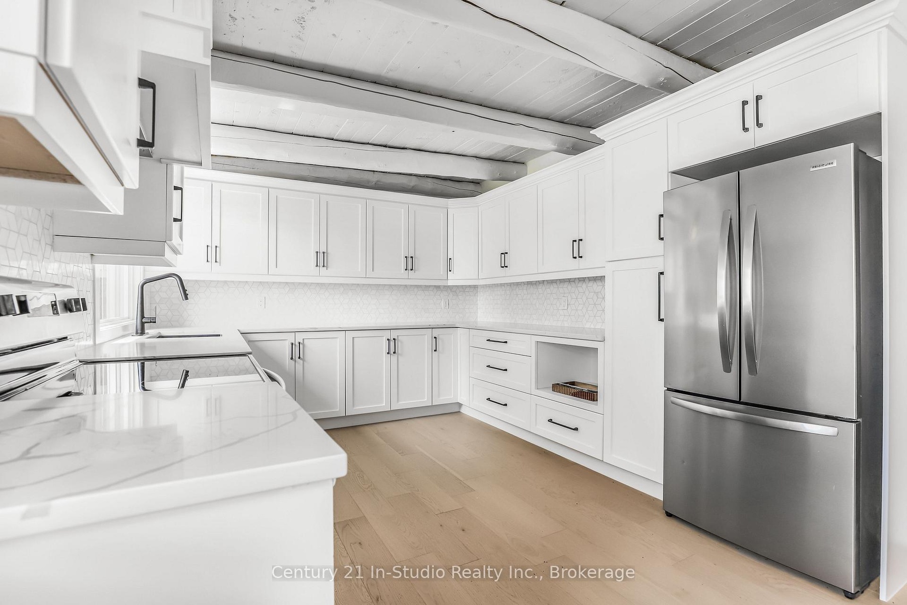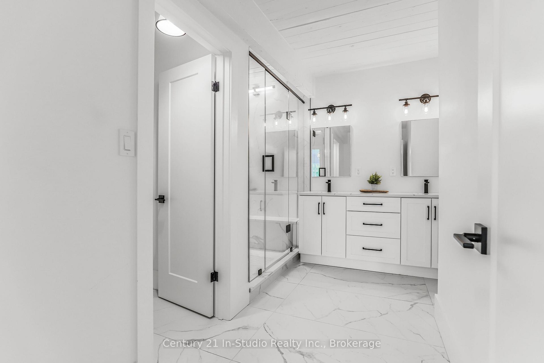 Fully updated and furnished luxury retreat on the shores of Stokes Bay. Set on 1.3 acres with 200 feet of private, deeded waterfront, this property offers two docks, two insulated and heated garages with lofts, and the option to sever into two 100 ft shoreline lots. All studies and assessments for severance are complete. The property was extensively renovated in 2024, including new insulation, electrical, plumbing, roof, windows, and doors. The interior features white oak hardwood flooring, an open-concept kitchen and living area with panoramic lake views, and walkout access to a covered deck ideal for entertaining.The primary suite includes deck access, a double steam shower ensuite, and a custom walk-in closet with Carrara marble finishes. Additional bedrooms and bathroom are well designed for family and guests, all updated with modern fixtures and finishes. Thoughtfully preserved original details stone accents and whitewashed wood beams add stunning charm. Two detached heated garages (24' x 14' and 27' x 13') feature epoxy marble floors and lofts for extra living or storage space - ideal for guest accommodation, office use, or hobby areas. Outdoors, enjoy an expansive private yard, new hot tub, and beautiful Lake Huron views. The double-lot configuration offers future investment potential for development, resale, or a multi-family retreat. This property combines modern construction, privacy, and waterfront lifestyle - ready for year-round living or as a high-end seasonal escape!