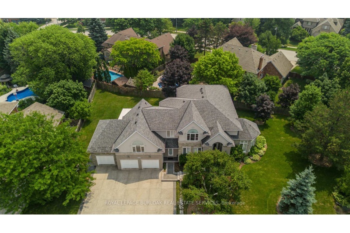 Welcome to this exceptional residence on a quiet court in the prestigious Tyandaga Highlands community. Set on a rare corner lot, this fully renovated home offers 6039sf of living space, ideal for large or multigenerational families seeking luxury, privacy, and functionality. Upon arrival, the curb appeal is striking - an elegant brick and stone façade, landscaped grounds with stone retaining walls, and a 9-car concrete driveway, plus a rare triple car garage. A grand archway entrance and spiral staircase set the tone for the upscale finishes found throughout. Step inside to a bright, open-concept layout designed for everyday luxury. Hardwood floors and California shutters run throughout, complemented by refined details including tray ceilings, wainscotting, and crown moulding. The formal living room is flooded with light from 4 large windows and features a gas fireplace. The spacious dining room is ideal for hosting, while the show-stopping kitchen offers quartz countertops, island with seating for 5, built-in appliances, dual wall ovens, and a sun-lit breakfast nook with access to the back deck. A family room with gas fireplace and a home office complete the main level. Upstairs, the primary suite feels like a retreat, complete with a large walk-in closet, a spa-inspired ensuite with a freestanding tub, oversized glass shower w/ bench, and dual sink vanity. 2 additional bedrooms share a modern 4pc bathroom. A separate upper-level wing, accessible through a 2nd staircase, offers a private bedroom with 2 walk-in closets, sitting room, and ensuite bath perfect for in-laws, teens, or a live-in nanny. The fully finished basement with separate entrance includes a rec room w/ fireplace, full kitchen w/ heated floors, bedroom, and 2 3pc bathrooms (one with heated floors)an ideal secondary living space. Outside, enjoy a pool-sized yard with elevated deck, large patio with pergola, and ample green space for kids and pets. This home is truly one-of-a-kind, don't miss out!