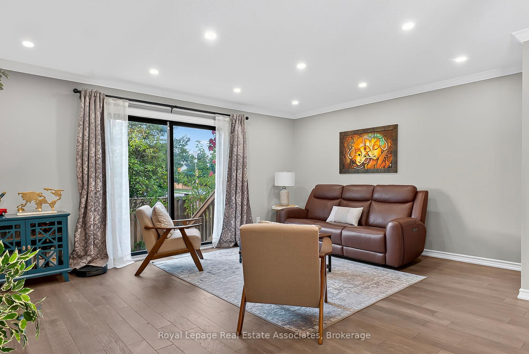 Experience refined living in this elegant 3-bedroom, 2-bathroom end-unit townhouse in Oakville's highly sought-after College Park community. The heart of the home boasts a gourmet kitchen with stainless steel appliances and a stylish stone backsplash, seamlessly flowing into bright and spacious living and dining areas enhanced by rich hardwood floors and abundant natural light. Each bedroom offers generous proportions, large windows framing serene greenery, and a tranquil atmosphere ideal for rest or work-from-home flexibility. Take comfort in your daily routines with two full bathrooms featuring contemporary fixtures and finishes. Step outside to a private backyard with the added benefit of end-unit privacy, perfect for entertaining, gardening, or simply enjoying your morning coffee. Located just minutes from top-rated schools such as Sunningdale and White Oaks, parks, premier shopping, and multiple transit options, this townhome offers unmatched convenience for commuting and lifestyle needs. This residence is a rare opportunity for families seeking a home that balances style, comfort, and an enviable location.