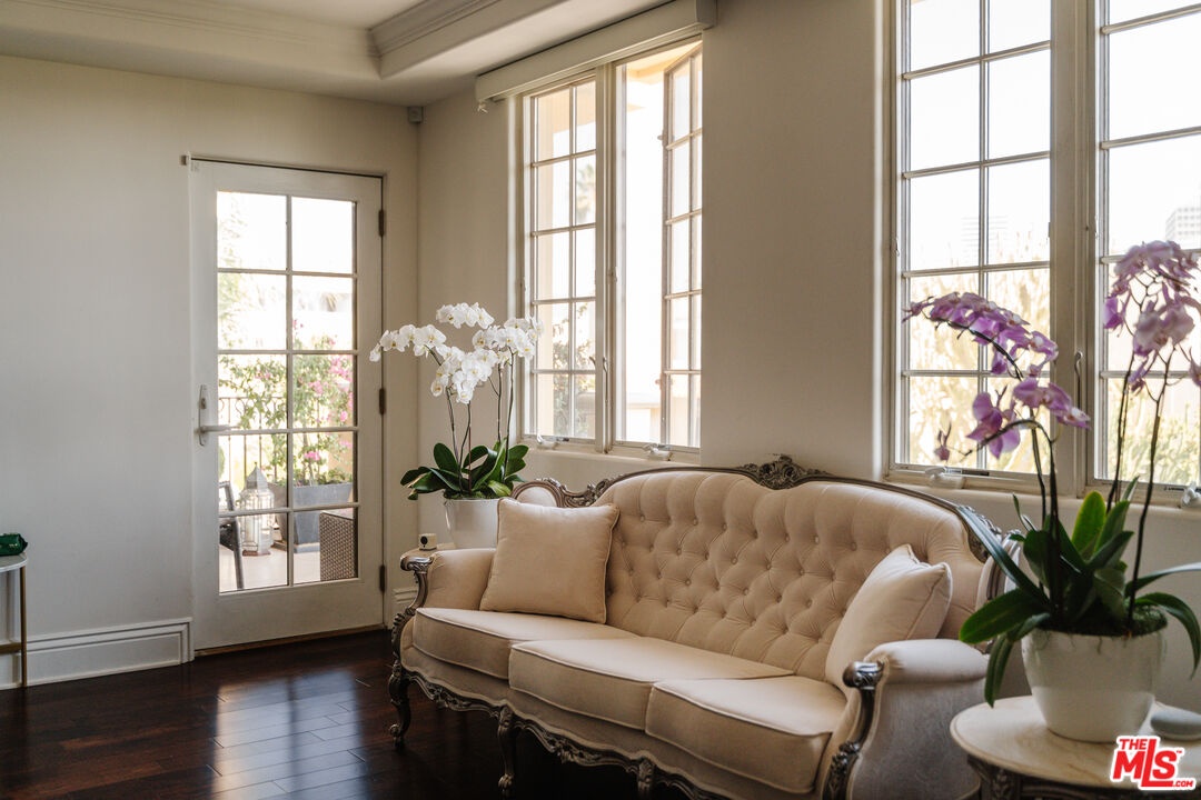 Prime Westwood Century City | Glamorous Front-Facing Condo | Over 3,100 Sq.Ft. of Refined Living. Experience single-level luxury in this elegant 3-bedroom, 3.5-bath residence built in 2005 and ideally located on a quiet, tree-lined street in the heart of Westwood, Century City. Flooded with natural light throughout, this rare front-facing corner unit combines grand proportions with sophisticated design and privacy. A dramatic formal foyer and gallery hallway provide an ideal space to showcase art and lead to the expansive formal living room with coffered ceilings, custom moldings, and a private terrace with city views. The adjacent formal dining room connects seamlessly to the chef's kitchen, fully equipped with Viking Professional oven/range, Sub-Zero refrigerator, and KitchenAid dishwasher. Off the kitchen, a versatile family room or den and currently used as a beautiful large dining room with a bar, fireplace and multiple French windows that can open for fresh air and natural light, perfect for entertaining or relaxing. The thoughtful floor plan provides ideal separation, with two ensuite bedrooms on one wing and a third ensuite bedroom on the opposite side that's perfect for guests, multigenerational living, or a home office. The oversized primary suite is a serene retreat with dual French windows, a spa-style bath featuring separate tub and shower, bidet, dual vanities, and a large walk-in closet. Additional highlights include a powder room, a laundry room with LG washer/dryer and sink, LED lighting, a second walk-in closet with built-ins, and abundant storage throughout. Building amenities include guest parking, a private storage room, a small fitness center and low HOA dues. Enjoy the best of Westside living just moments from Century City's Westfield Mall, UCLA, Beverly Hills, and Santa Monica. Combining scale, privacy, and elegance, this residence offers the feel of a single-family home with the convenience and security of a modern luxury building.