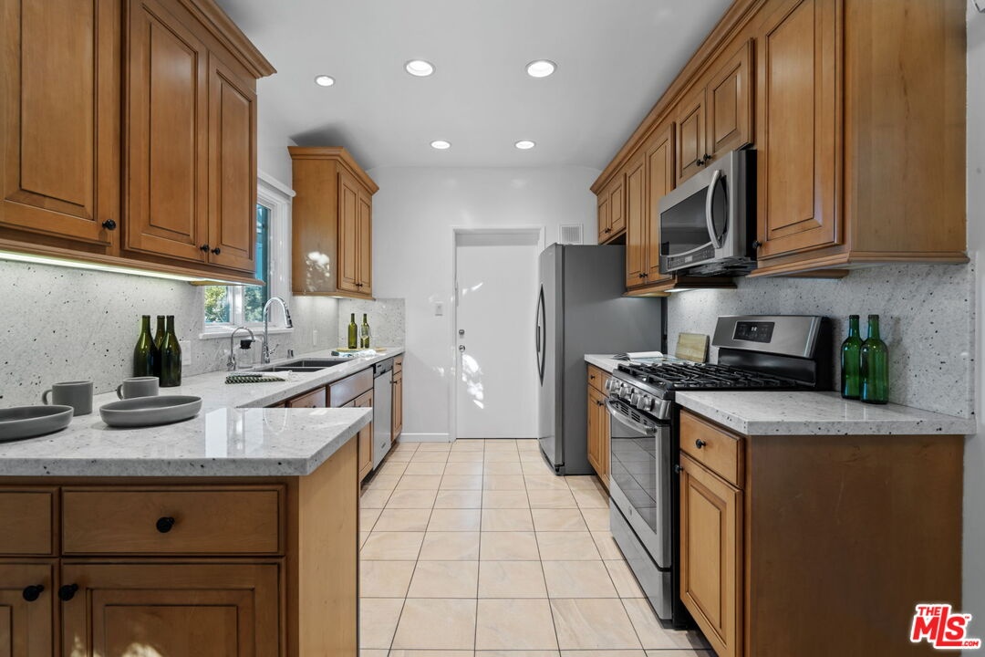 Set within the coveted Beverlywood HOA, this beautifully updated 3-bedroom, 3-bathroom home blends timeless charm with modern comfort in one of Los Angeles' most sought-after neighborhoods. Perfectly positioned on prestigious Beverly Drive, just steps from Circle Park, this home captures the very best of Westside living. Moments from places of worship, boutique retail, top-rated dining, and minutes from Beverly Hills, Century City, and Culver City. Step inside to discover approximately 2,340 square feet of light-filled living space with an effortless open-concept flow. Rich hardwood floors extend through much of the home, adding warmth and sophistication throughout. The spacious living and dining areas are designed for both comfort and entertaining, featuring expansive sliding glass doors that open to a covered patio and a large, beautifully landscaped backyard, the perfect backdrop for indoor-outdoor dining, play, and relaxation. Situated on a rarely available ~7,700 square foot lot - exceptionally large for the Beverlywood HOA, this property offers a sense of space and privacy that's hard to find in the neighborhood. The stylish kitchen is equipped with stainless steel appliances, custom cabinetry, elegant countertops and backsplash, and a sunny breakfast area overlooking the backyard. The primary suite is a serene retreat - bright, airy, and overlooking the lush yard, bathed in natural light throughout the day. It features a spa-inspired bathroom with dual vanity sinks and a private hallway lined with closets offering abundant storage. Two additional spacious bedrooms and well-appointed bathrooms complete the thoughtful layout. The converted attached garage adds flexible space perfect for a gym, studio, or recreation area. Additional highlights include a versatile bonus room - ideal for a home office, recessed lighting, and tasteful designer updates. Move right in and enjoy today's comfort or take advantage of the incredible potential to expand, add on, or customize to your vision. Prime location. Exceptional lot. Move-in ready home. This is Beverlywood living at its finest.
