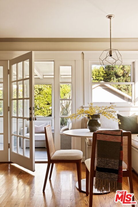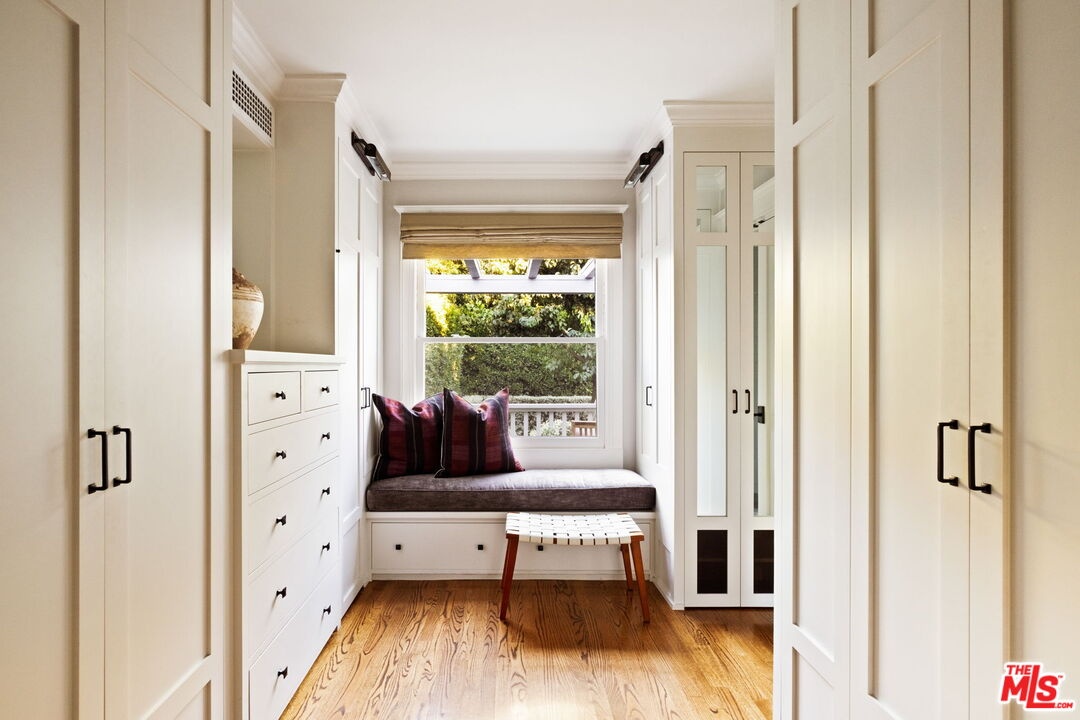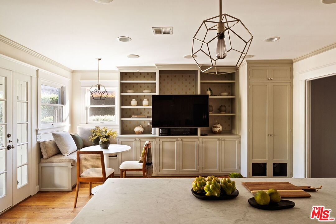 Nestled in the heart of Sunset StripHollywood Hills West, 1438 North Orange Grove is a beautifully preserved Craftsman bungalow that seamlessly blends timeless architecture with modern luxury in Historic Spaulding Square (HPOZ). A gated hedged entry opens to a lush garden oasis framed by manicured boxwoods, mature trees, and white roses creating a tranquil escape from city life. Inside, natural light fills the formal living room, which opens to a versatile office and guest bedroom ideal for hosting visitors or working from home. The elegant dining room flows effortlessly into a bright sitting area, perfect for morning coffee or quiet reading. The home offers 3 bedrooms and 2 bathrooms, including a serene primary suite with marble finishes, a walk-in shower, and generous closet space. The chef's kitchen impresses with a premium Wolf range, marble countertops, stainless steel appliances, and built-in banquette seating. A charming sunroom leads to the private backyard retreat, featuring a grassy lawn, patio, and a detached studio with its own bath ideal for guests, a creative workspace, or an in-law suite. With refined design, lush landscaping, and an unbeatable location, this Spaulding Square gem captures the perfect balance of historic character and contemporary living.