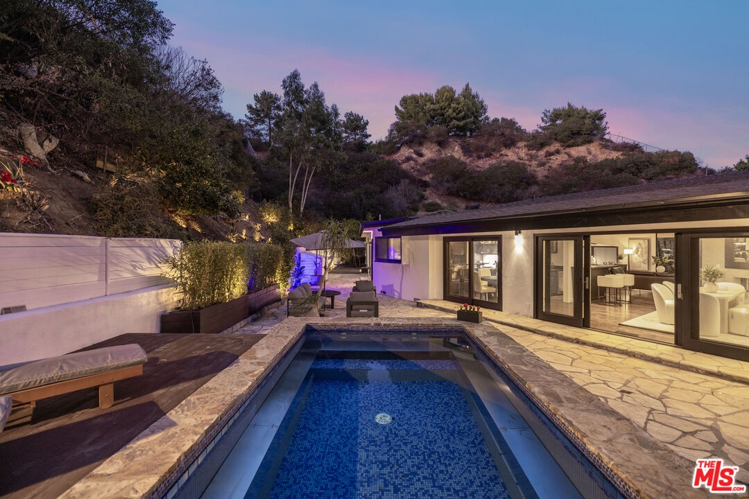 This property is available for short-term and long-term rentals, each with its respective pricing options. It is fully furnished, decorated, and equipped with hotel-like essentials and amenities. With our concierge team available to assist 24/7, this home rental offers a five-star hospitality experience, whether you are staying for a few days, a month, or a year. Tucked away on a peaceful cul-de-sac off Coldwater Canyon, this stunning 3-bedroom, 3-bathroom residence effortlessly blends sophisticated style with unparalleled comfort. From the moment you step inside, you'll be captivated by the elegant design and seamless flow of space. Gleaming hardwood floors extend throughout the home, beautifully complemented by a striking two-way fireplace that serves as a focal point, connecting the spacious living areas. Floor-to-ceiling windows flood the interiors with natural light and offer breathtaking canyon views, creating a serene and inviting atmosphere. The chef-inspired kitchen is a masterpiece, equipped with premium Viking appliances, sleek cabinetry, and abundant counter space, making it the perfect space for both culinary creativity and entertaining. Every meal becomes an experience in this stylish, fully-equipped kitchen. Step outside to your own private oasis. The expansive outdoor space is an entertainer's dream, featuring a resistance pool ideal for relaxing or swimming laps. The outdoor lounge area is perfect for alfresco dining or simply unwinding while enjoying the stunning canyon views. This luxurious home offers the ultimate in Mid-Century Modern elegance, where every detail has been thoughtfully designed to enhance your lifestyle. Whether you're relaxing by the pool, hosting guests, or enjoying the tranquility of your surroundings, this Beverly Hills gem promises a truly elevated living experience.