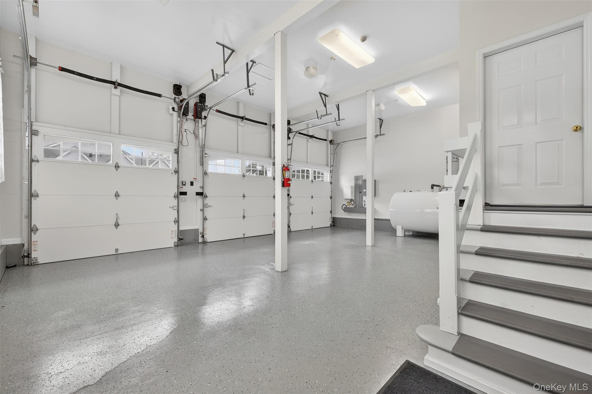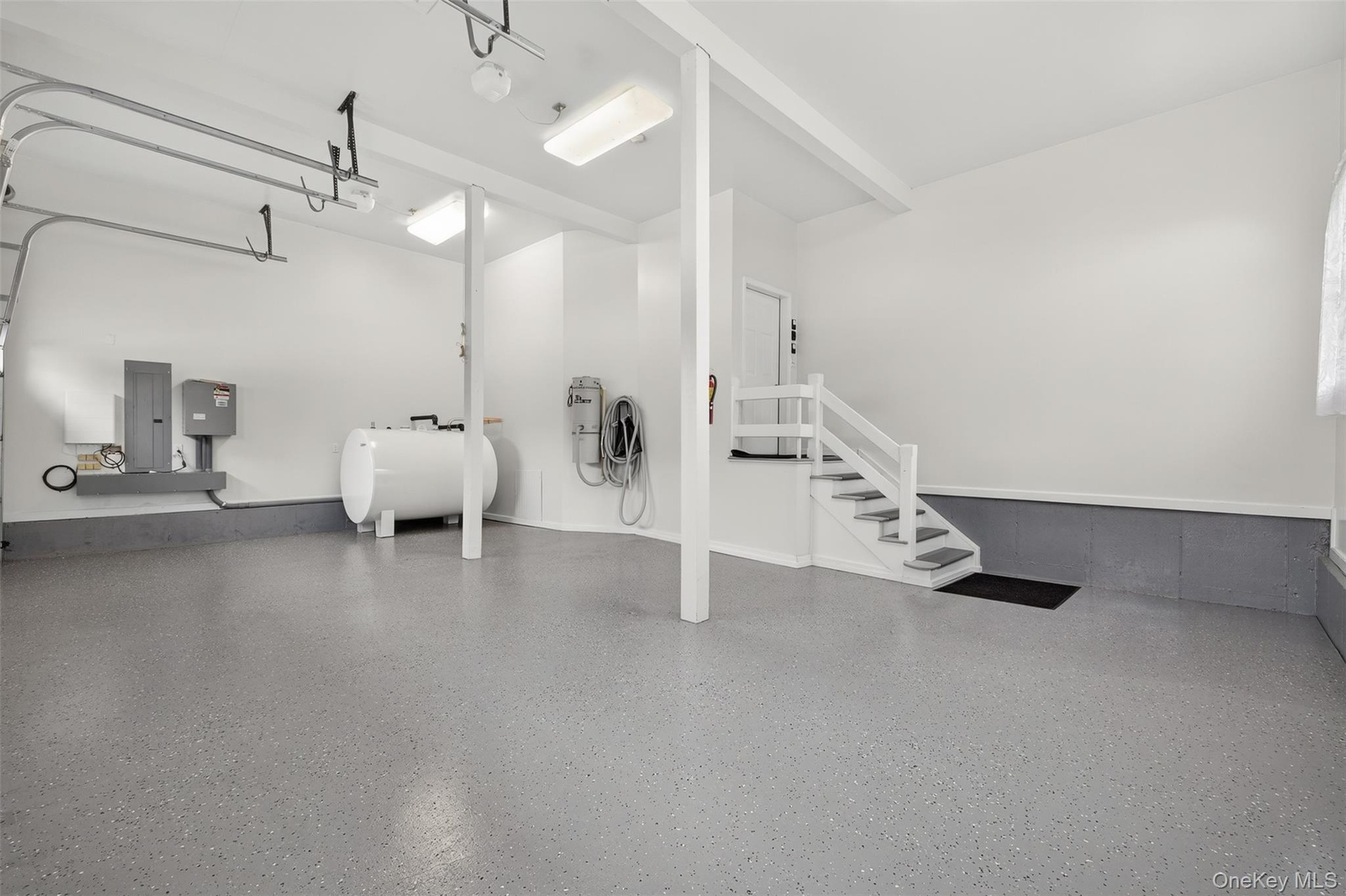 - Garage featuring electric panel and heating fuel