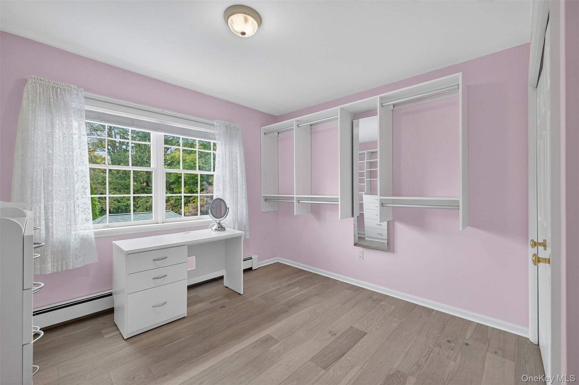 - Unfurnished office featuring light wood-style flooring and baseboard heating