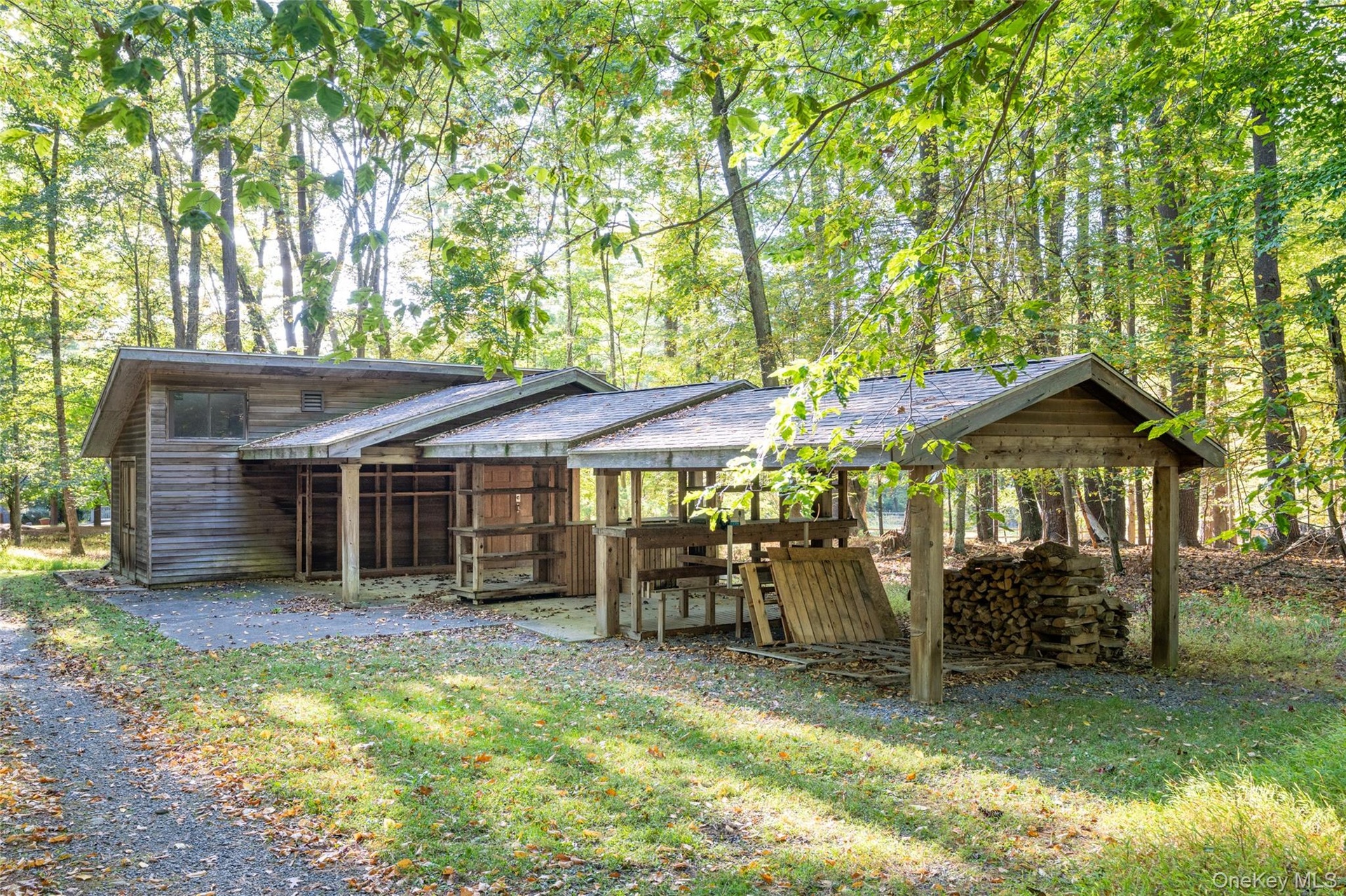 Discover the perfect blend of Upstate tranquility and convenient living with this exceptional property. Nestled on 6+ acres of private, lush land with half acre pond and large heated pool, this home offers an intimate connection to nature without sacrificing modern amenities. Large windows and high ceilings throughout the house flood the open-concept living spaces with natural light and provide postcard-perfect views of the scenic surroundings. Enjoy your morning coffee or entertain guests on the expansive deck, surrounded by dense woodlands and experience all four seasons in your own oasis, from vibrant fall foliage to peaceful winter snowfalls. Use your imagination  to turn the numerous outbuildings into various ideas, art or yoga studio, mediation sanctuary or work space. Despite its secluded feel, this home is just a short drive from charming village centers of Kingston, Woodstock and Stoneridge - all with gourmet restaurants and boutique shops. This property is designed for those who value absolute privacy but desire effortless access to the Hudson Valley or Catskills' finest cultural and culinary offerings and incredible hiking trails. It’s more than a home; it's a private haven that brings the best of country living to your doorstep.