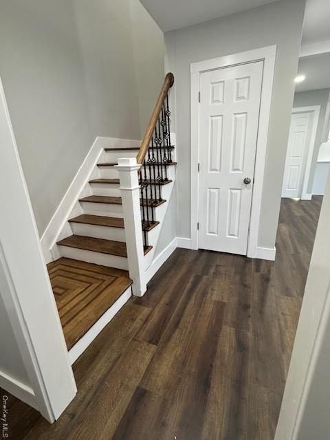 - Spare room featuring dark wood-style flooring and recessed lighting