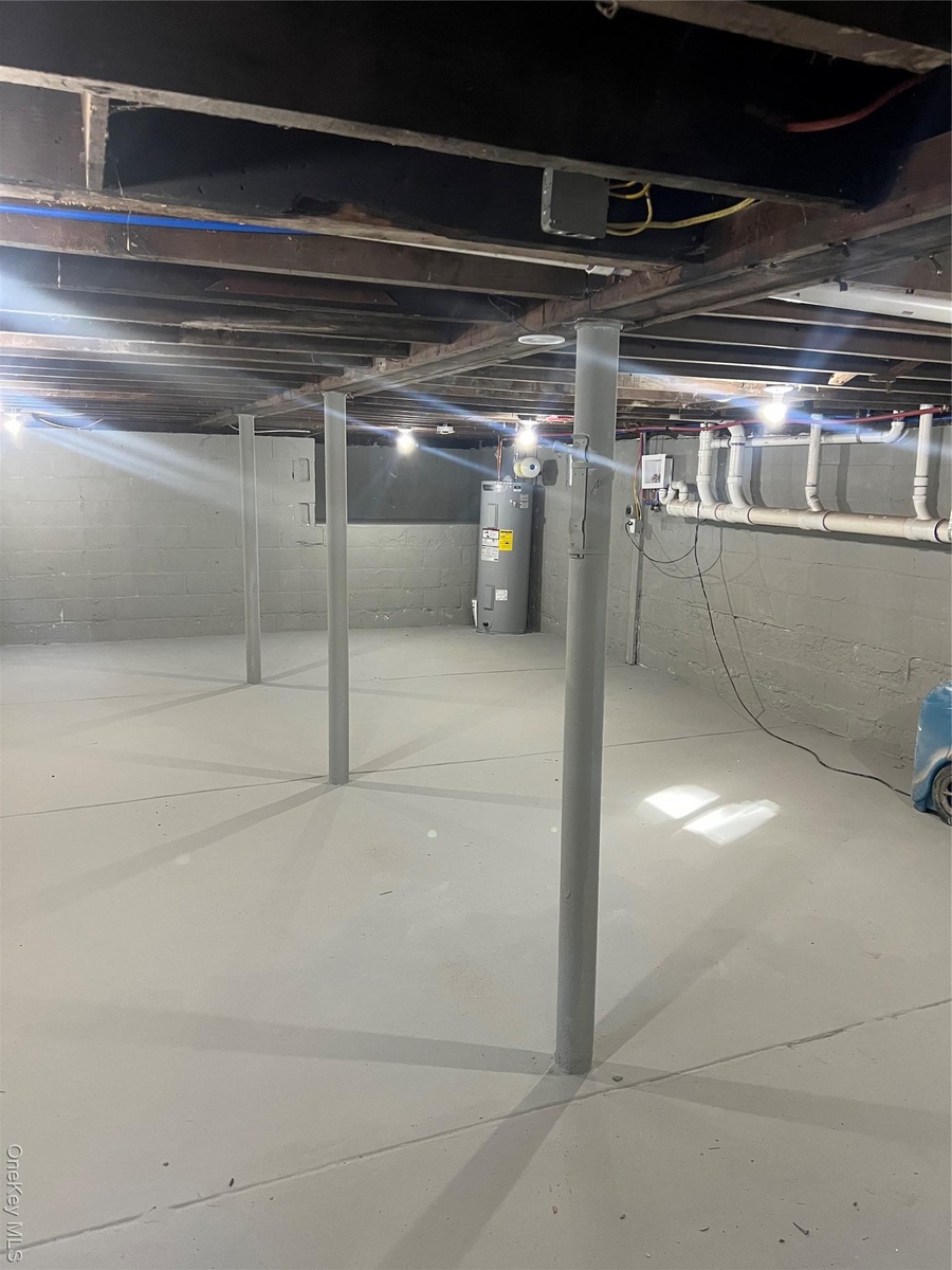 - Unfinished basement with water heater