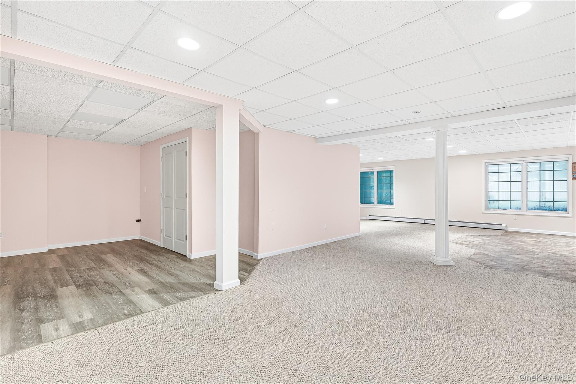 - Carpeted empty room with recessed lighting and a baseboard heating unit