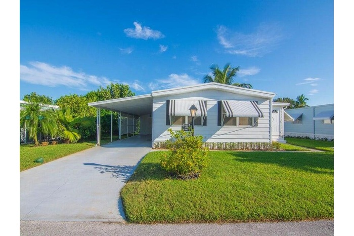 WELCOME HOME to the beautiful 55+ community of Pinelake Village! This home features new floors, an inviting and open layout, 2 bedrooms, 2 bathrooms! Newer AC, appliances, and vanities! Enjoy your own fruit trees - guava, banana, figs, and coconuts! Schedule your private showing today!