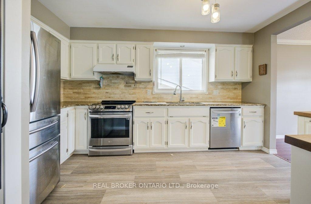 A beautifully maintained 4-bedroom home is situated in a quiet, family-friendly neighborhood in Kitchener West. The solid brick construction offers a perfect blend of comfort, functionality, and modern style. Upon entering, you'll appreciate the carpet-free design and the bright, contemporary décor that flows throughout the home. Large windows allow natural light to fill the living spaces, creating a warm and inviting atmosphere. The main floor showcases an open and flexible layout, perfect for relaxing or entertaining. Recent updates and modern finishes add an elegant touch to every room. The kitchen is designed for practicality, featuring ample cabinetry, sleek finishes, and easy access to the backyard, making it great for outdoor dining and summer gatherings. The spacious lower level provides excellent potential for an in-law suite or duplex, giving future owners the flexibility to accommodate extended family or generate rental income, maximizing your investment. Outside, the fully fenced backyard acts as a private retreat, complete with a 12-foot deck, gazebo, and storage shed-ideal for barbecues, gardening, or simply relaxing in the fresh air. The double driveway and oversized garage offer plenty of parking and storage options for vehicles, tools, and recreational gear. This home has been thoughtfully updated for modern living and efficiency, featuring LED lighting throughout, eavestrough leaf guards, and durable materials that reduce maintenance while enhancing energy savings. Located in a peaceful residential area but close to all conveniences-including parks, schools, shopping, and transit-7 Folkstone Crescent offers an exceptional combination of tranquility and accessibility. Whether you're looking for a move-in-ready family home or a property with multi-generational or income potential, this bright and stylish residence is one you'll want to call home.