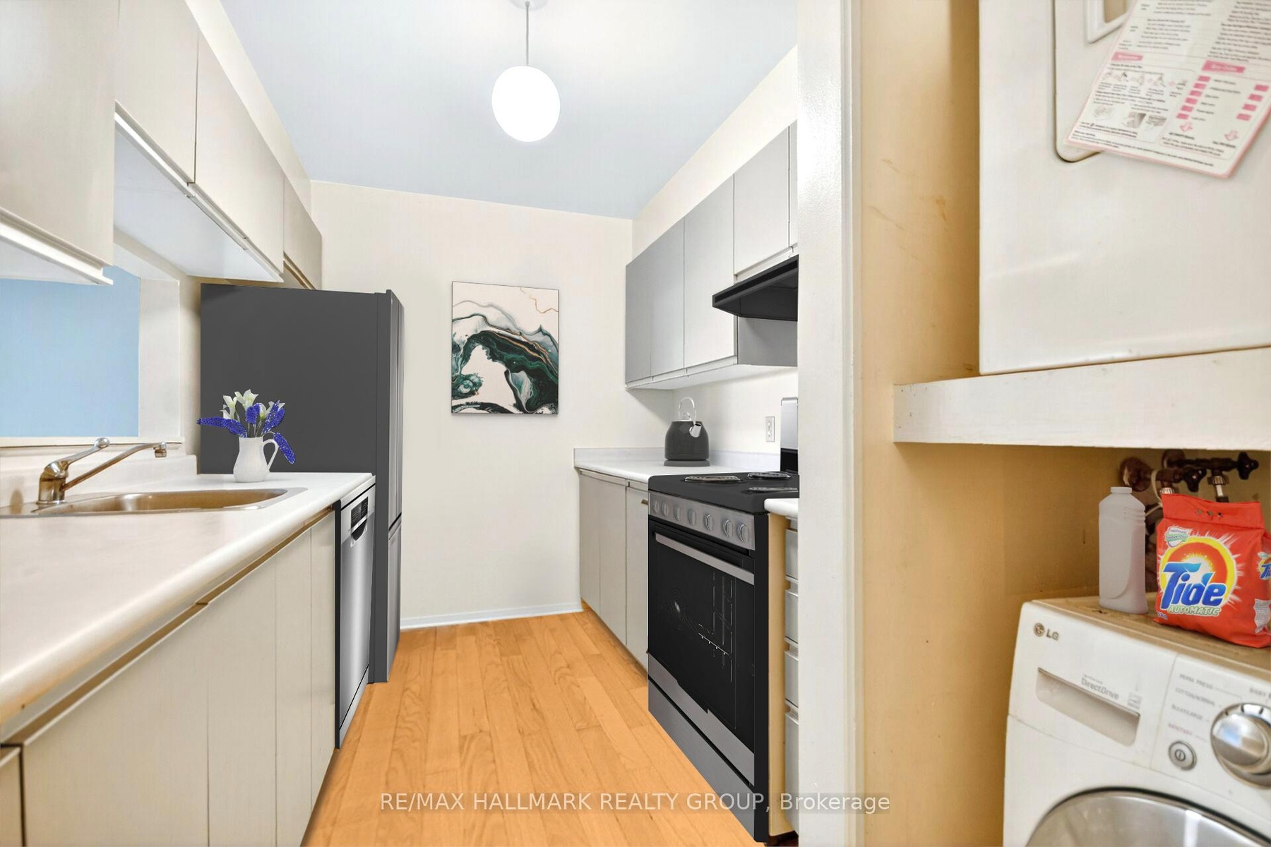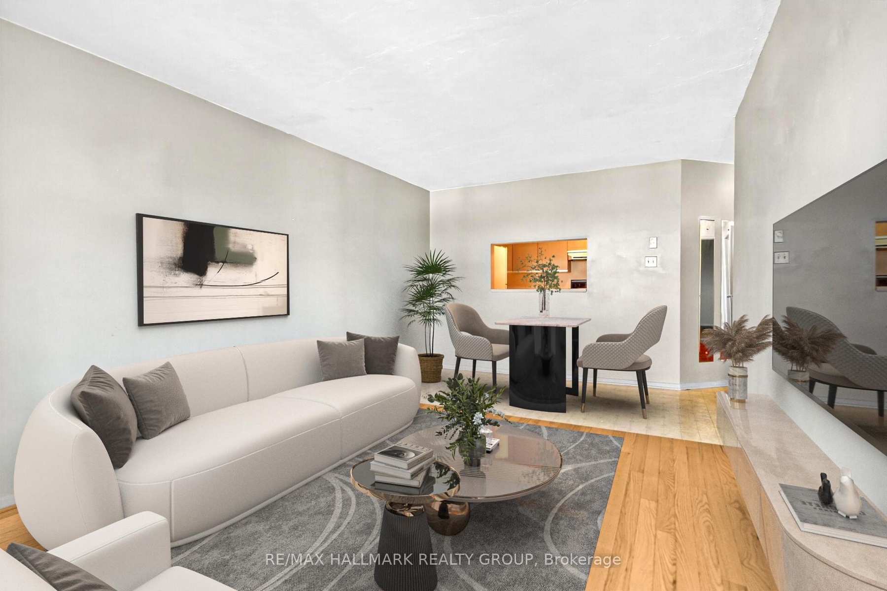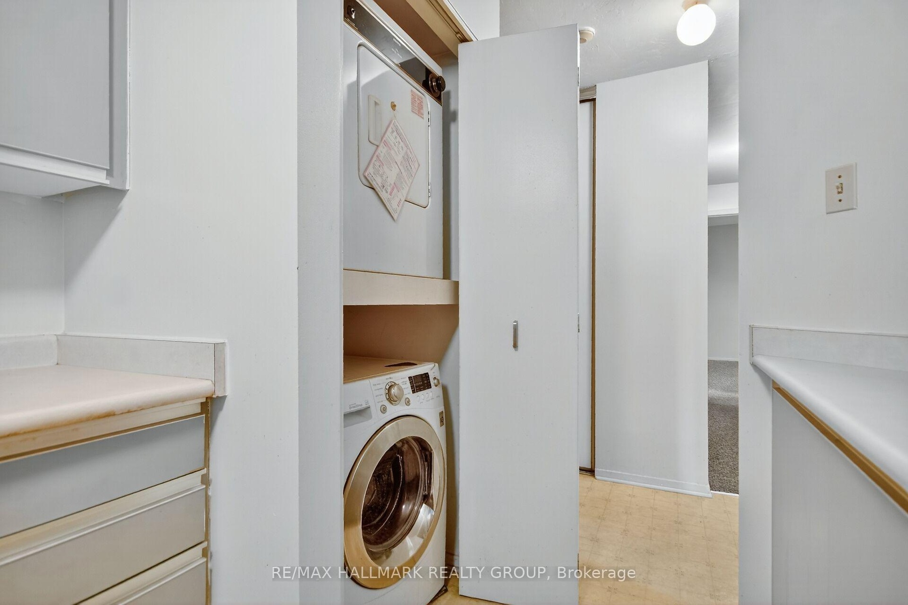 A two bedroom unit priced below some one bedroom units available! Spend a few dollars and create the space YOU desire. Do some improving yourself and build some instant equity. And think of what you can do with the extra space. Guest bedroom for family and friends, office at home, den. This incredible location is minutes to downtown via two major bus routes, and one of those is right outside the back door. For those choosing to bike there are bike lanes and the NCC walking and bike trails are close by as well. (Condo also has a bike room for storage). You will love being close to Beechwood Village shops and amenities, Montfort hospital, CMHC, LaCite Collegial and other great shopping and restaurant areas. When at home enjoy all the amenities the condo has to offer. Tennis/pickle ball courts, Outdoor pool, Rec centre with an indoor pool, squash and raquet court, saunas and gym or take a relaxing stroll in the beautiful park area. All included in the low condo fees. The unit also features convenient in unit laundry and storage! Some photos virtually staged.