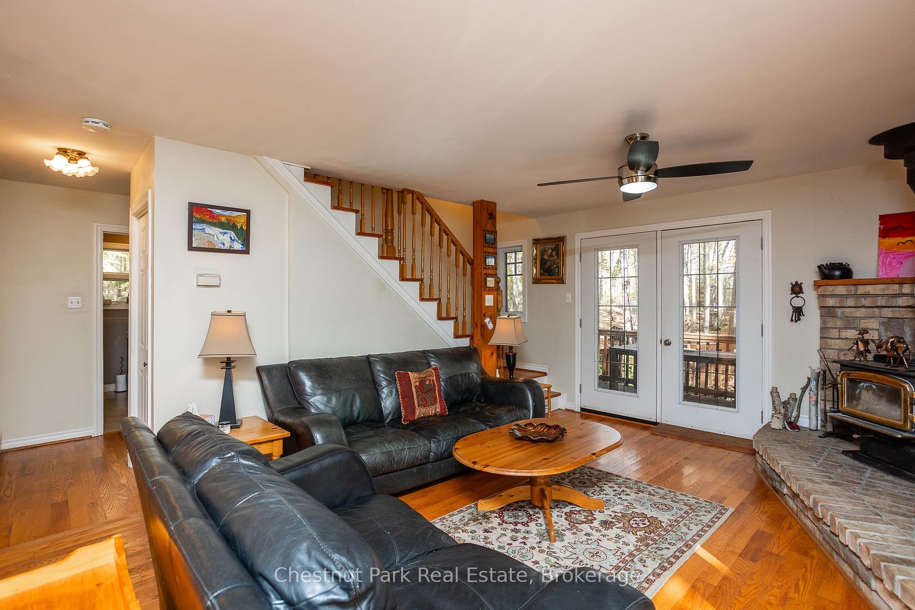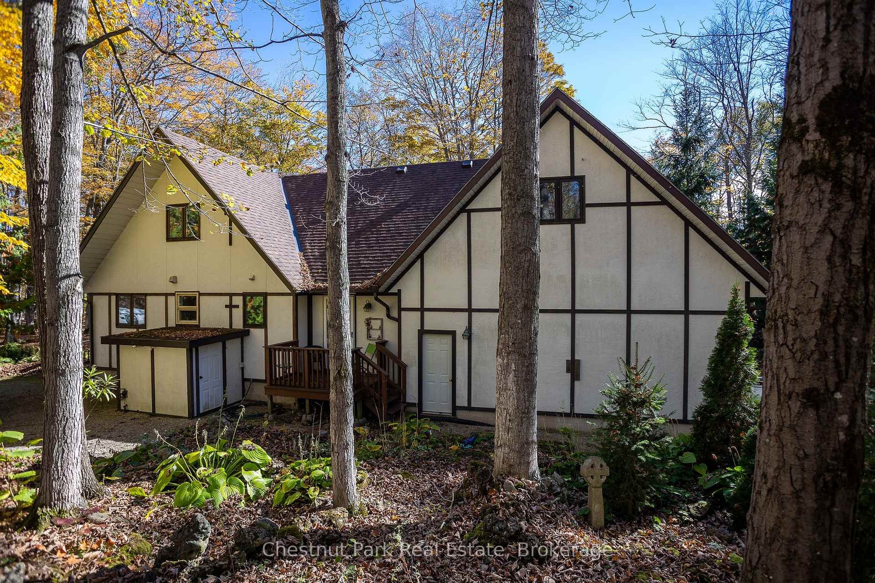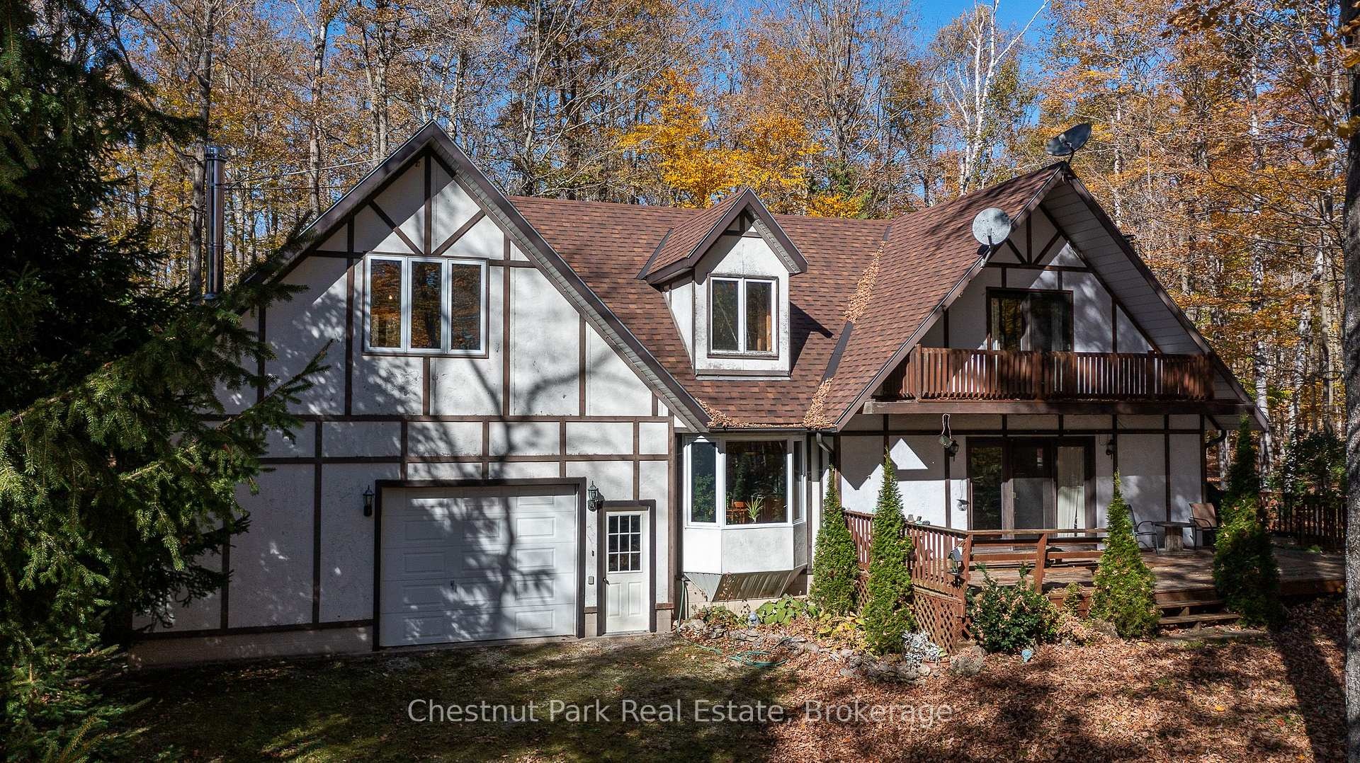 This charming Tudor-style, four-season home or cottage sits on a serene 2.3-acre hardwood lot, just minutes from a public boat launch on Miller Lake. Perfect Haven on the Bruce Peninsula for those seeking peace and privacy surrounded by nature with a seasonal lake view. Bright and welcoming, the home offers open living areas with large windows, hardwood floors, and a cozy wood stove. Enjoy main-level living plus 2 additional large bedrooms & 3 pc bath on the upper level. The 25' x 27' attached garage provides ample storage for water and land toys with large bonus space above for recreation or studio. Separate driveway with RV parking and hydro hook-up along with large storage shed with separate wood storage. Relax on the wrap-around deck with ramp access, wander your own woodland trails, or unwind by the fire pit under the stars. With perennial rock gardens and nearby access to beautiful Miller Lake for swimming, boating, and fishing-this tranquil property is ideal as a year-round home or relaxing getaway!
