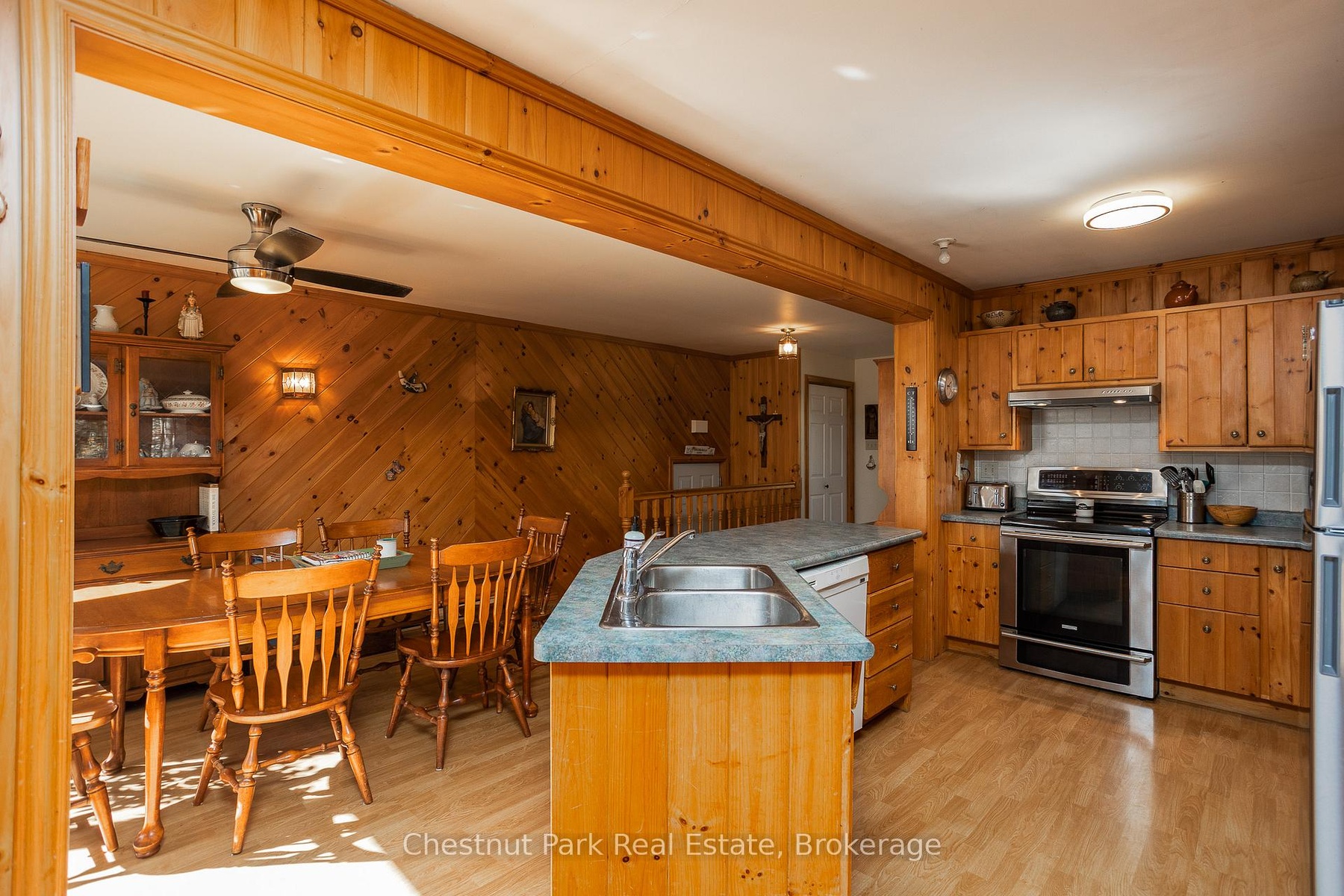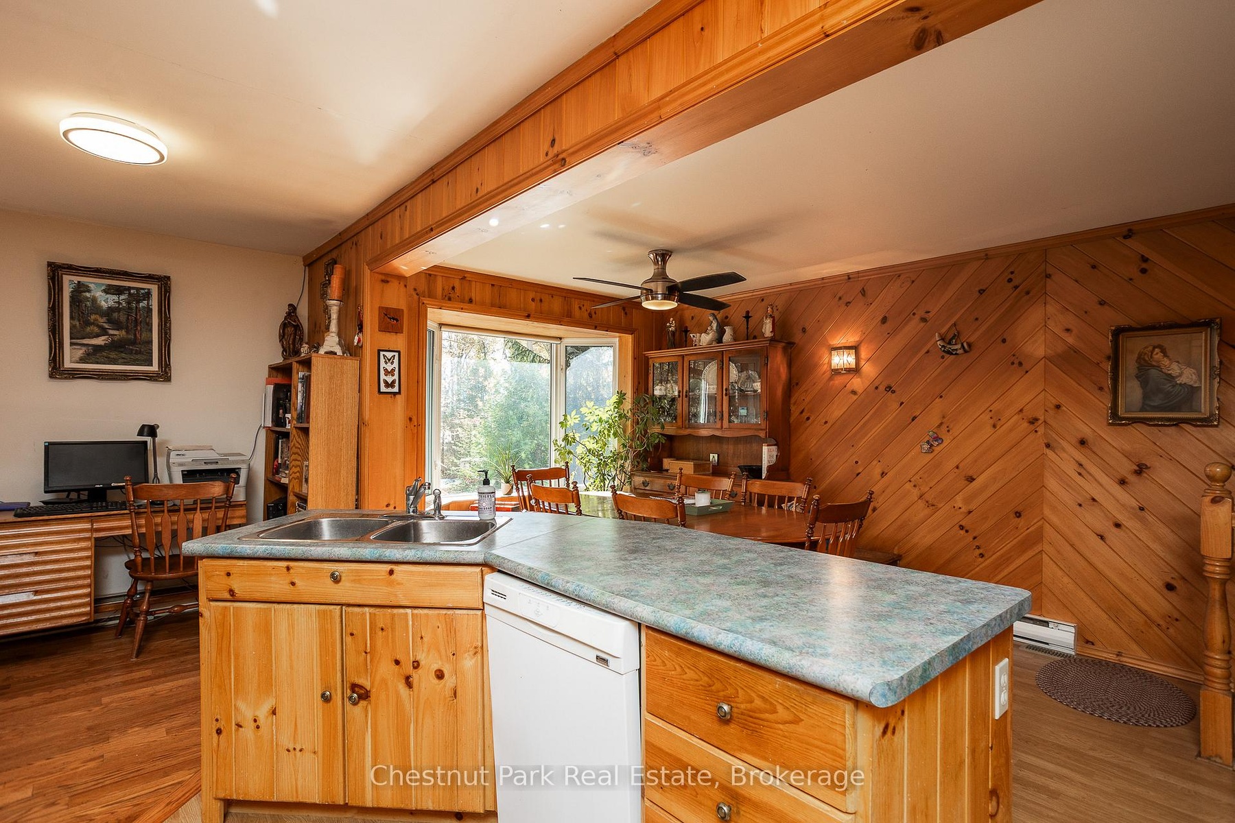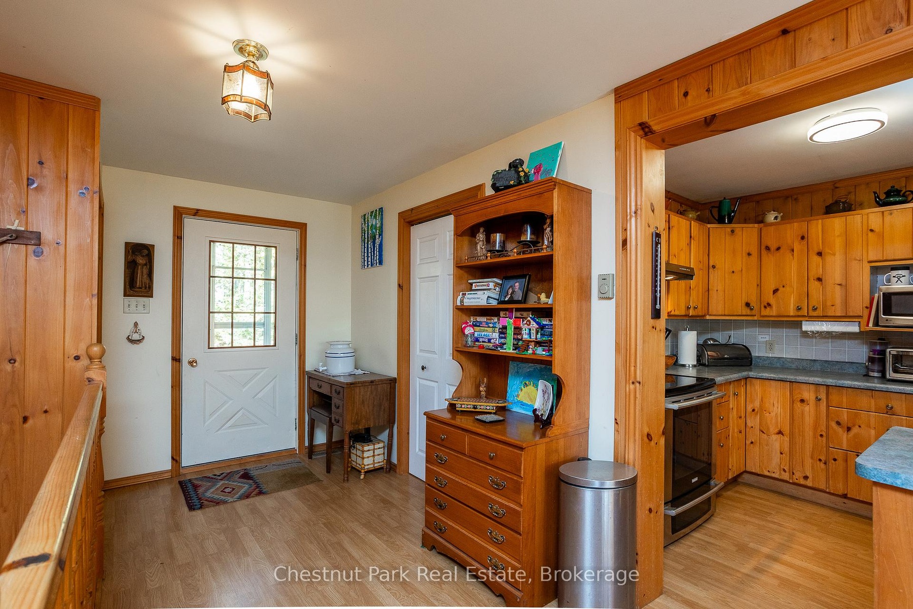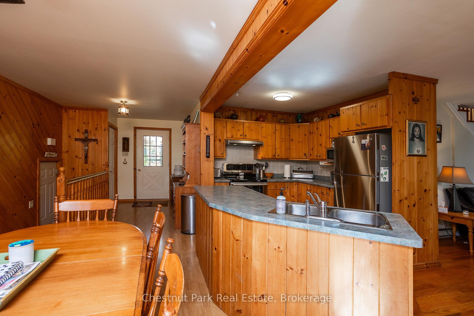 This charming Tudor-style, four-season home or cottage sits on a serene 2.3-acre hardwood lot, just minutes from a public boat launch on Miller Lake. Perfect Haven on the Bruce Peninsula for those seeking peace and privacy surrounded by nature with a seasonal lake view. Bright and welcoming, the home offers open living areas with large windows, hardwood floors, and a cozy wood stove. Enjoy main-level living plus 2 additional large bedrooms & 3 pc bath on the upper level. The 25' x 27' attached garage provides ample storage for water and land toys with large bonus space above for recreation or studio. Separate driveway with RV parking and hydro hook-up along with large storage shed with separate wood storage. Relax on the wrap-around deck with ramp access, wander your own woodland trails, or unwind by the fire pit under the stars. With perennial rock gardens and nearby access to beautiful Miller Lake for swimming, boating, and fishing-this tranquil property is ideal as a year-round home or relaxing getaway!