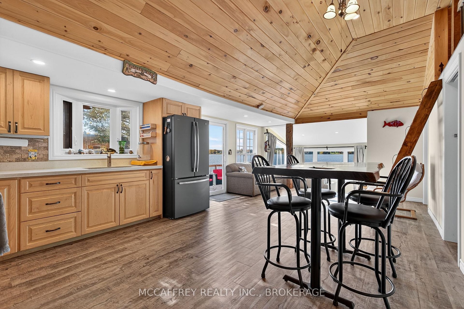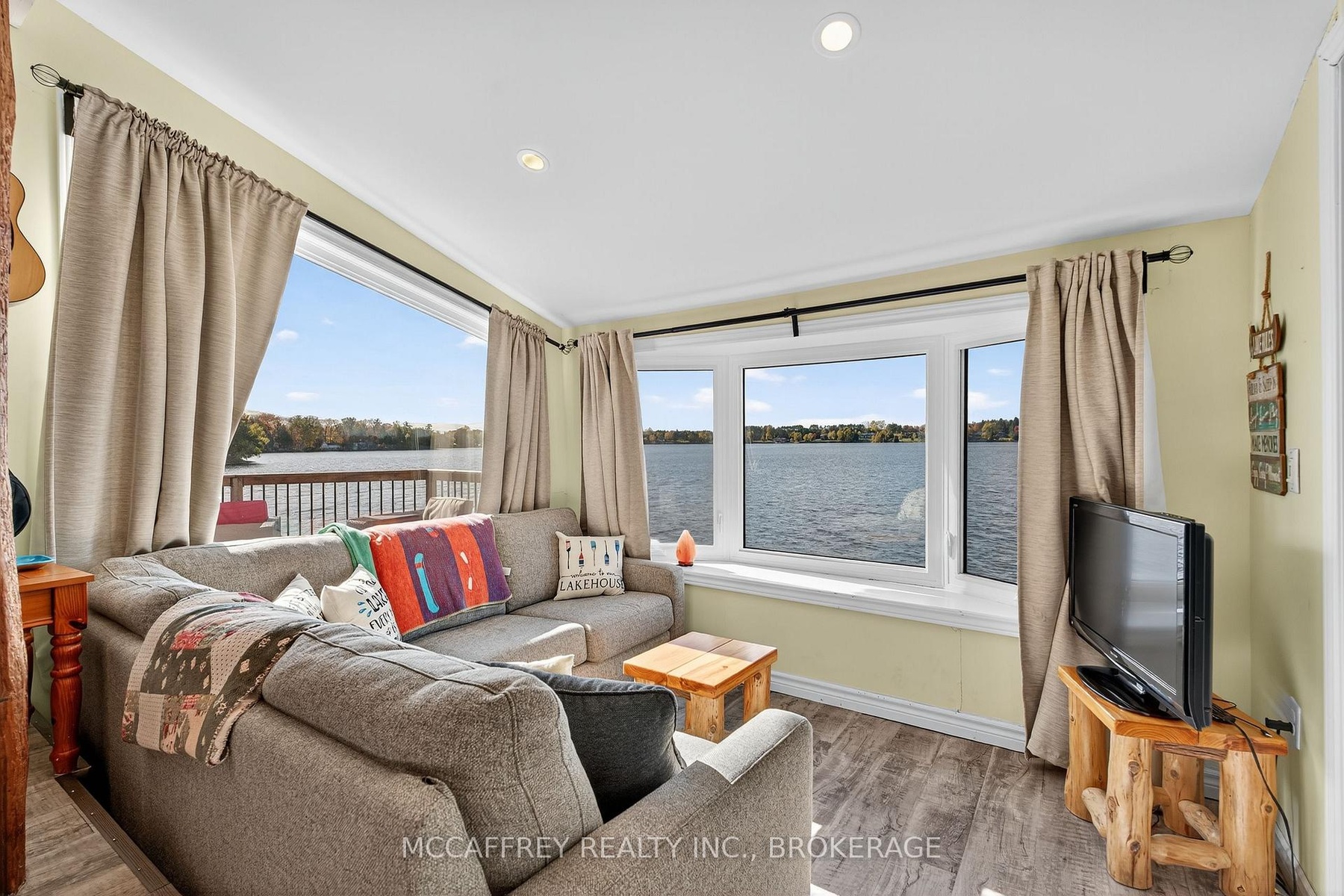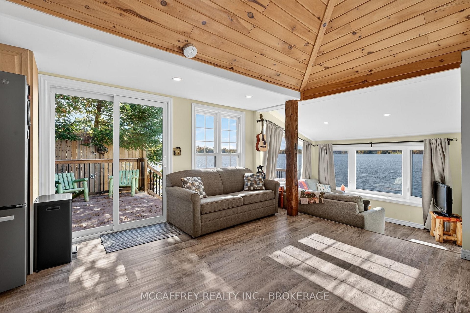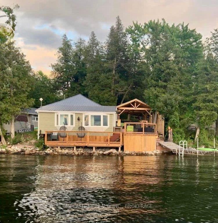 Welcome to 19 Cherry Lane, a beautifully appointed, three-bedroom, two-bath cottage that fuses rustic charm with refined comforts - all set on a coveted waterfront lot on Beaver Lake. This property is an opportunity to own a private lake escape that, is steps from the water's edge. From the moment you arrive, this cottage expresses thoughtful design and a soothing lakeside palette. The open-concept main living area is anchored by vaulted wood-plank ceilings, warm natural light, and panoramic water views. The kitchen, with its stylish finishes, and efficient layout, flows seamlessly into the dining/living space-perfect for entertaining or quiet evenings by the lake. You'll find three comfortable bedrooms offering restful privacy, and two baths designed with clean lines and tasteful detailing. Though the property does not include a basement, storage and functionality are cleverly integrated to maximize your space. An insulated bunkie with heating and A/C is perfect for extra guests. Step outside onto the multi-level deck system, where decks, patios, and a pavilion beckon you to unwind while soaking in breathtaking water views. Whether you're sipping morning coffee as ripples form on the lake, reading under the summer sun, or hosting sunset cocktails on the waterside deck, this home elevates every moment outdoors. A private, accessible shoreline gives you direct entry to your lake - swim, paddle, or fish mere steps from your door. A lovely beach is nearby, perfect for leisurely strolls. You're also a short drive from quality dining options, grocery store, LCBO, boutique shops and local charm. The cottage has been recently sided with Maibec CanExel Engineered Siding. Outdoors lovers will appreciate the surrounding natural trails, and the refreshing serenity that only waterfront landscapes can provide. Located 30 min north of the 401 and Napanee. Bunkie was added 2025. Cottage was fully updated in 2018. In floor heating is plumbed in but not hooked up