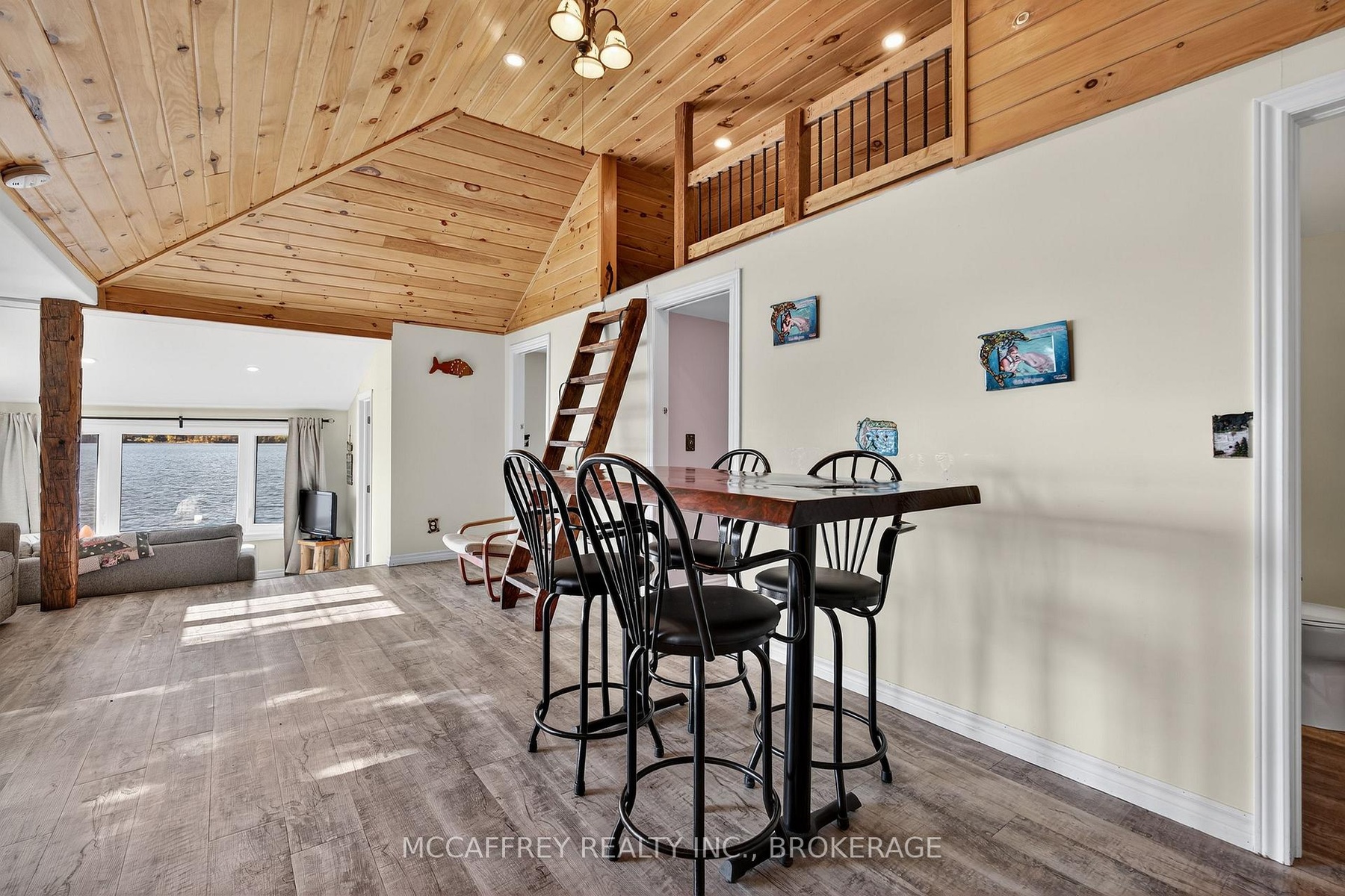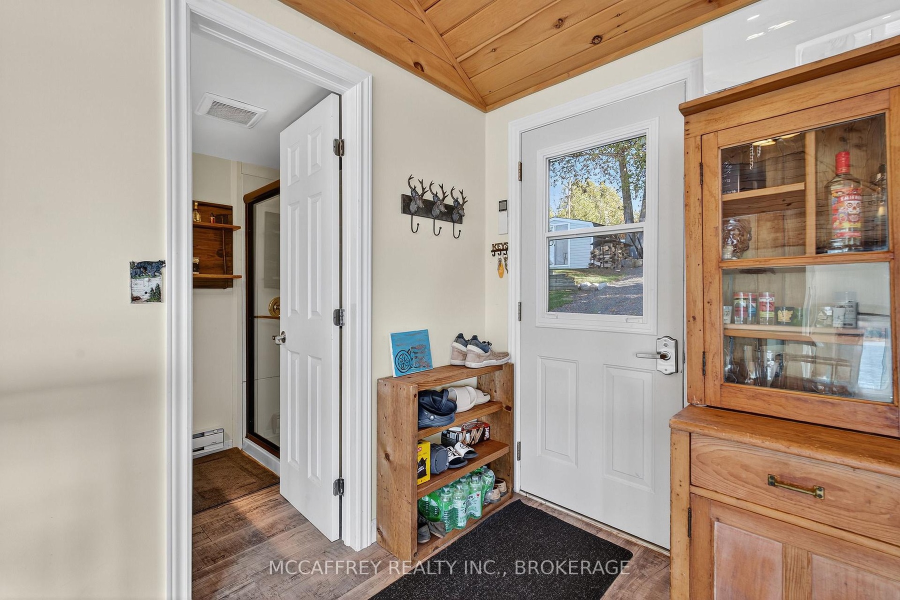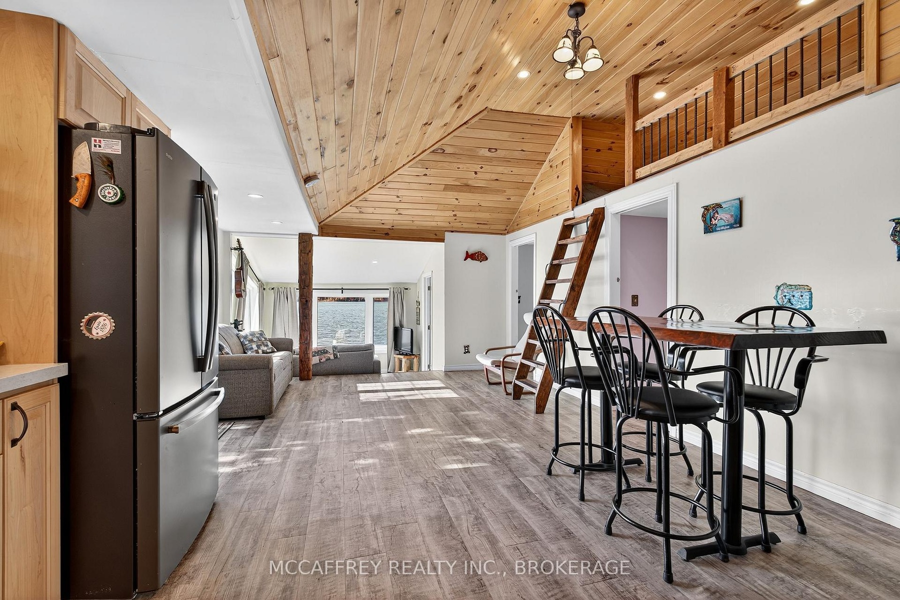 Welcome to 19 Cherry Lane, a beautifully appointed, three-bedroom, two-bath cottage that fuses rustic charm with refined comforts - all set on a coveted waterfront lot on Beaver Lake. This property is an opportunity to own a private lake escape that, is steps from the water's edge. From the moment you arrive, this cottage expresses thoughtful design and a soothing lakeside palette. The open-concept main living area is anchored by vaulted wood-plank ceilings, warm natural light, and panoramic water views. The kitchen, with its stylish finishes, and efficient layout, flows seamlessly into the dining/living space-perfect for entertaining or quiet evenings by the lake. You'll find three comfortable bedrooms offering restful privacy, and two baths designed with clean lines and tasteful detailing. Though the property does not include a basement, storage and functionality are cleverly integrated to maximize your space. An insulated bunkie with heating and A/C is perfect for extra guests. Step outside onto the multi-level deck system, where decks, patios, and a pavilion beckon you to unwind while soaking in breathtaking water views. Whether you're sipping morning coffee as ripples form on the lake, reading under the summer sun, or hosting sunset cocktails on the waterside deck, this home elevates every moment outdoors. A private, accessible shoreline gives you direct entry to your lake - swim, paddle, or fish mere steps from your door. A lovely beach is nearby, perfect for leisurely strolls. You're also a short drive from quality dining options, grocery store, LCBO, boutique shops and local charm. The cottage has been recently sided with Maibec CanExel Engineered Siding. Outdoors lovers will appreciate the surrounding natural trails, and the refreshing serenity that only waterfront landscapes can provide. Located 30 min north of the 401 and Napanee. Bunkie was added 2025. Cottage was fully updated in 2018. In floor heating is plumbed in but not hooked up