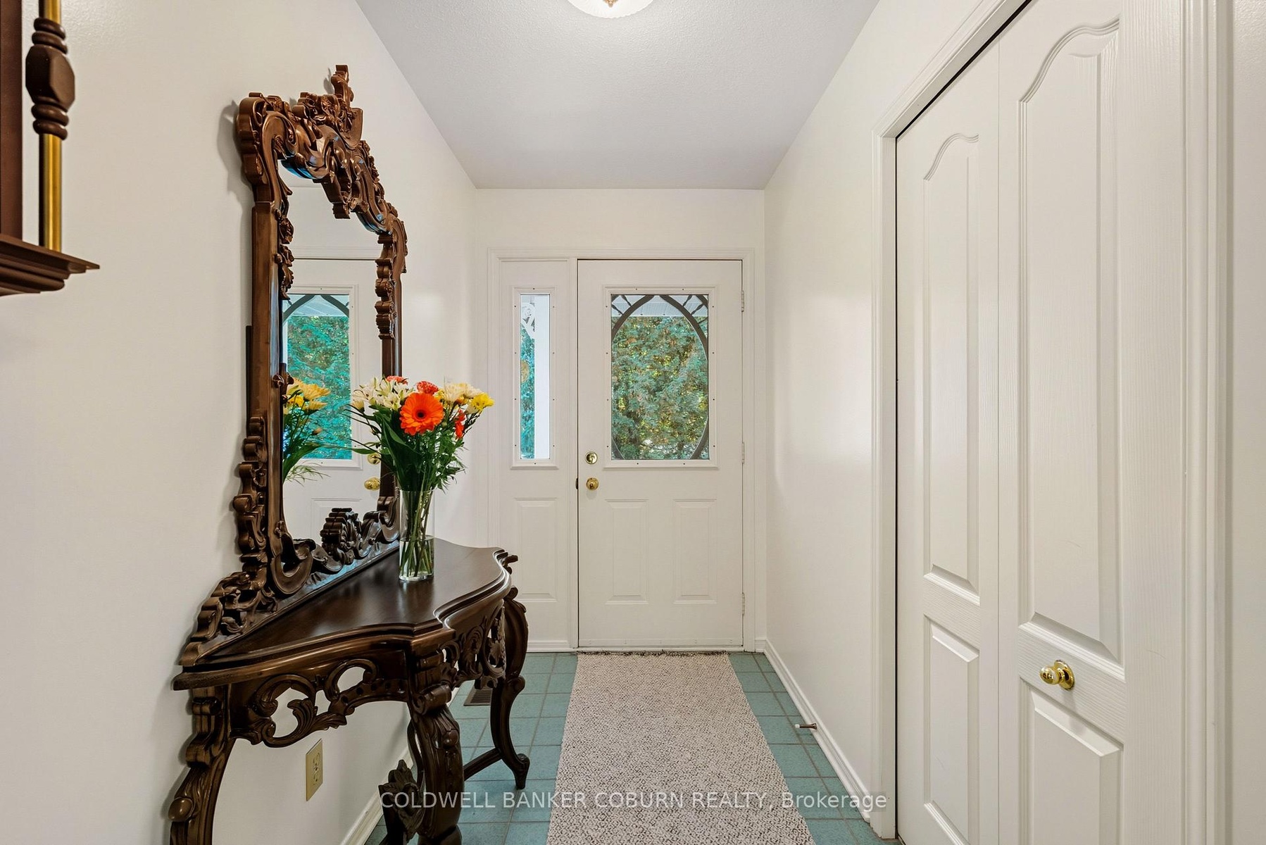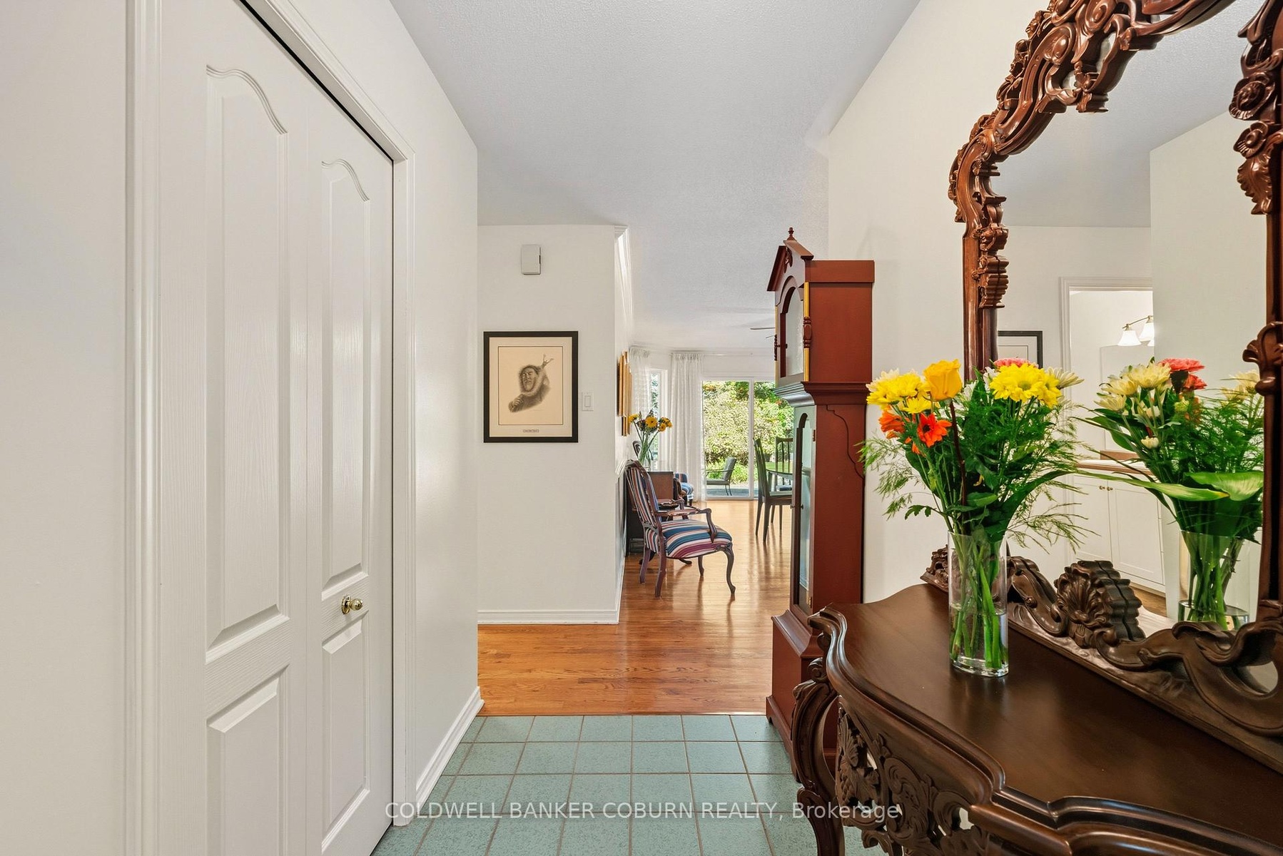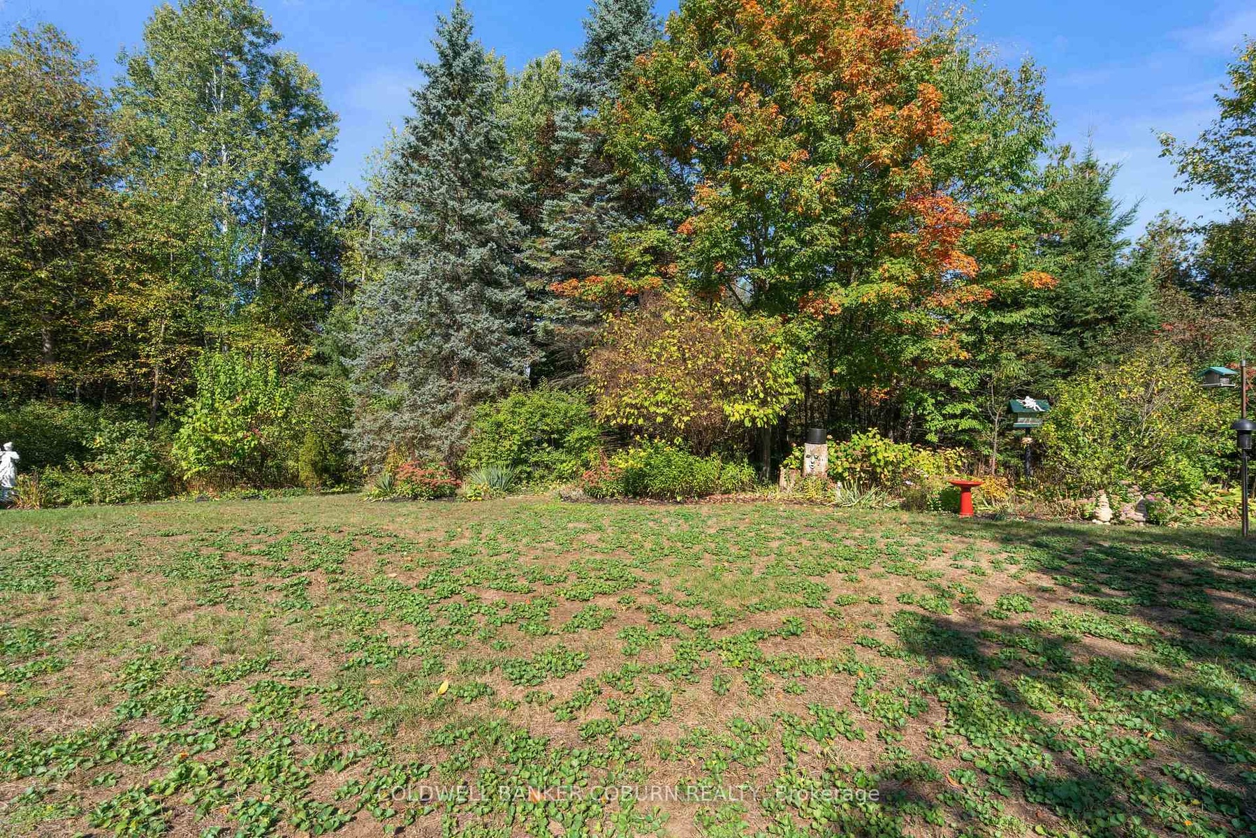 Welcome to the Forests of South Gower with nature at your door. Just 5 minutes to Kemptville and Hwy 416, this bungalow sits on a tranquil corner lot. The property offers appealing greenspace, and the backyard is an enchanting retreat with total privacy from neighbouring homes. A delightful walking trail is cut through the woods. The property has established gardens and a backyard storage shed and is almost 1 acre in size. The layout of the home will easily accommodate a growing family with 3 bedrooms on the main level and 2 in the basement. There are 3 1/2 bathrooms in the home. The kitchen features solid cabinetry including a full wall of cupboards for pantry and general storage. Counterspace is ample and the dishwasher is new in 2024. Adjacent to the kitchen is a full dining room with space for a larger table and buffet. Easy access is from the patio door to the large back deck for BBQing or summer dining overlooking the private backyard. The living room is a generous size with a wood burning fireplace, cove molding and windows looking out to the front yard. The primary bedroom will fit a king size suite and has a 3-piece ensuite with walk in shower. Stunning hardwood floors are throughout the main level with tile in the baths and foyers. Downstairs is fully finished and offers another level of living space. A huge family room, a spacious additional bedroom with a cheater ensuite bath and another bedroom or alternately a home office, craft area or home gym. High speed fibre optic has been brought into the house so working from home is problem free. Water softener 2023, roof and vents 2023- fiberglass shingles with a transferrable warranty. Central AC. A natural gas automatic generator eases any worry about power outages and will run the furnace, sump pump; fridge. 2 car attached garage with inside entry to the side foyer. Double paved driveway with room to park an RV or camper. North Grenville is a vibrant community with a hospital, shopping and restaurants.